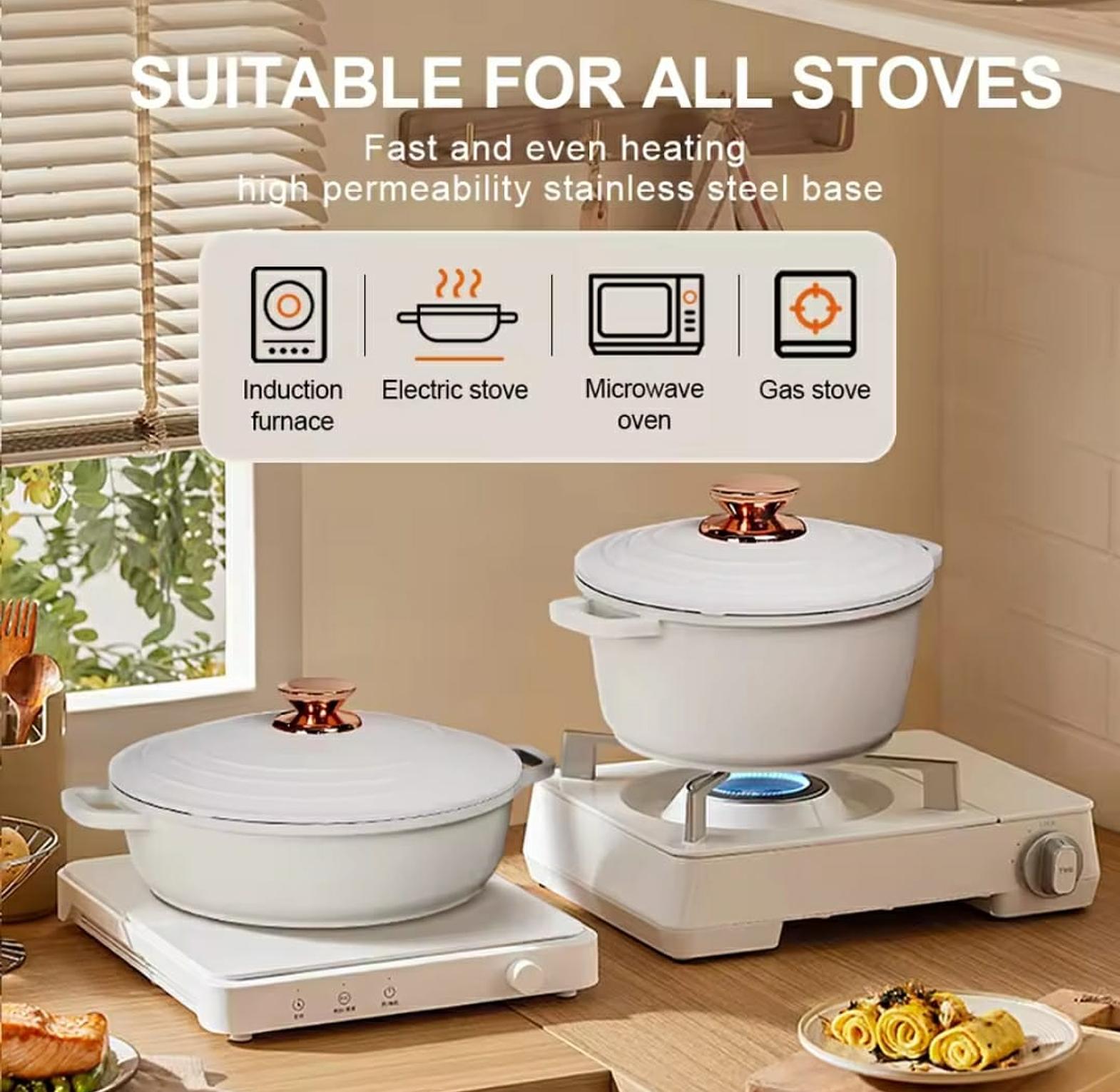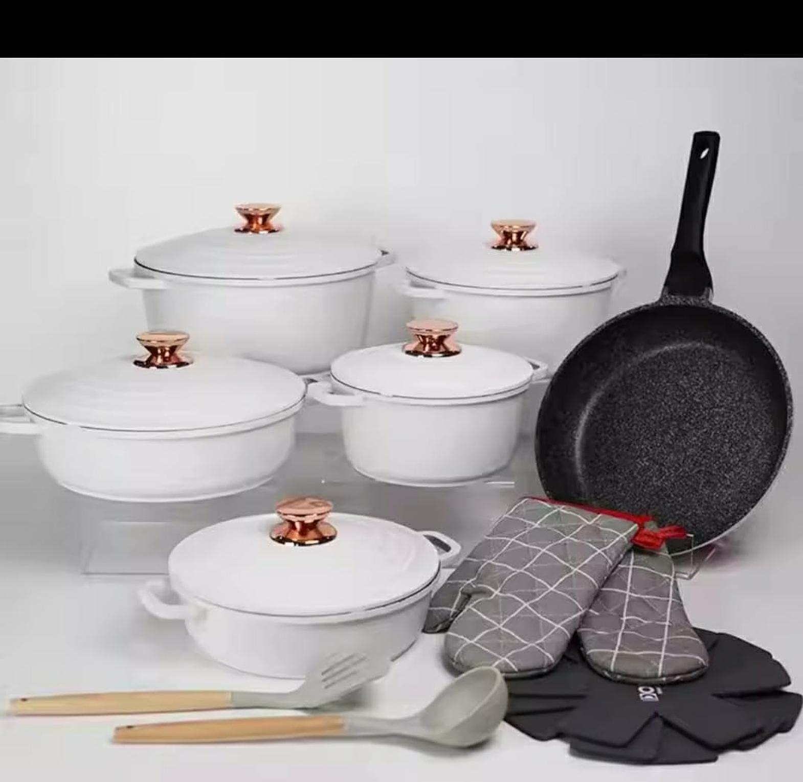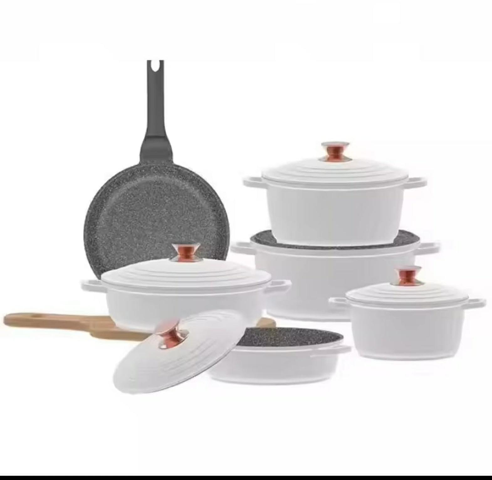 11PCS non-stick ucc life. HEAVY DUTY Consist size of....; 20cm casserole 24cm casserole 28cm casserole 28cm shallow casserole 28cm frying pan 2pcs cooking spoon ❇️Colour: WHITE