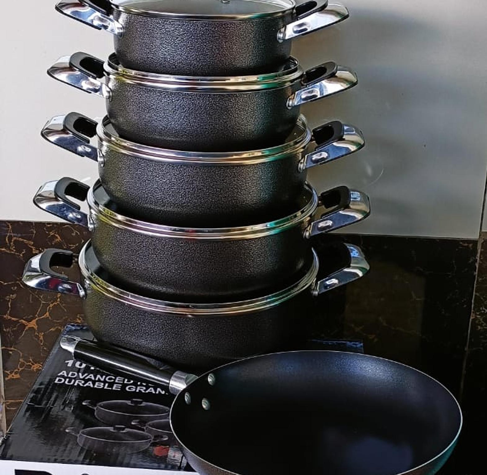 11pcs Nonstick Cookware set ✅Light duty and good quality ✅Cook and serve ✅Comes with 5 cooking pots with lids and a frying pan