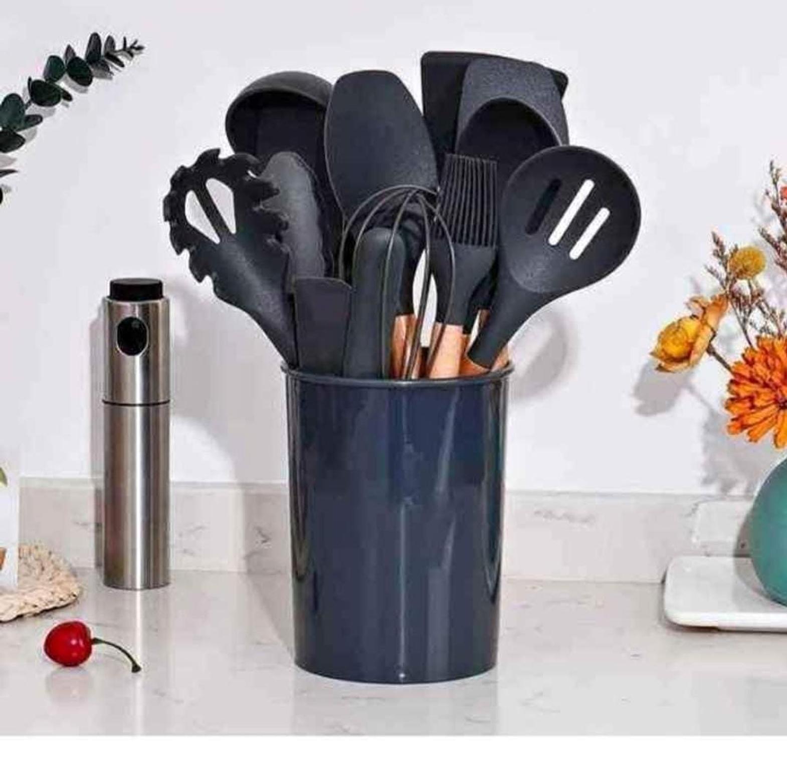 *12pcs nonstick heat restitant silicone spoon set Available in 3 colours black,gray and pink