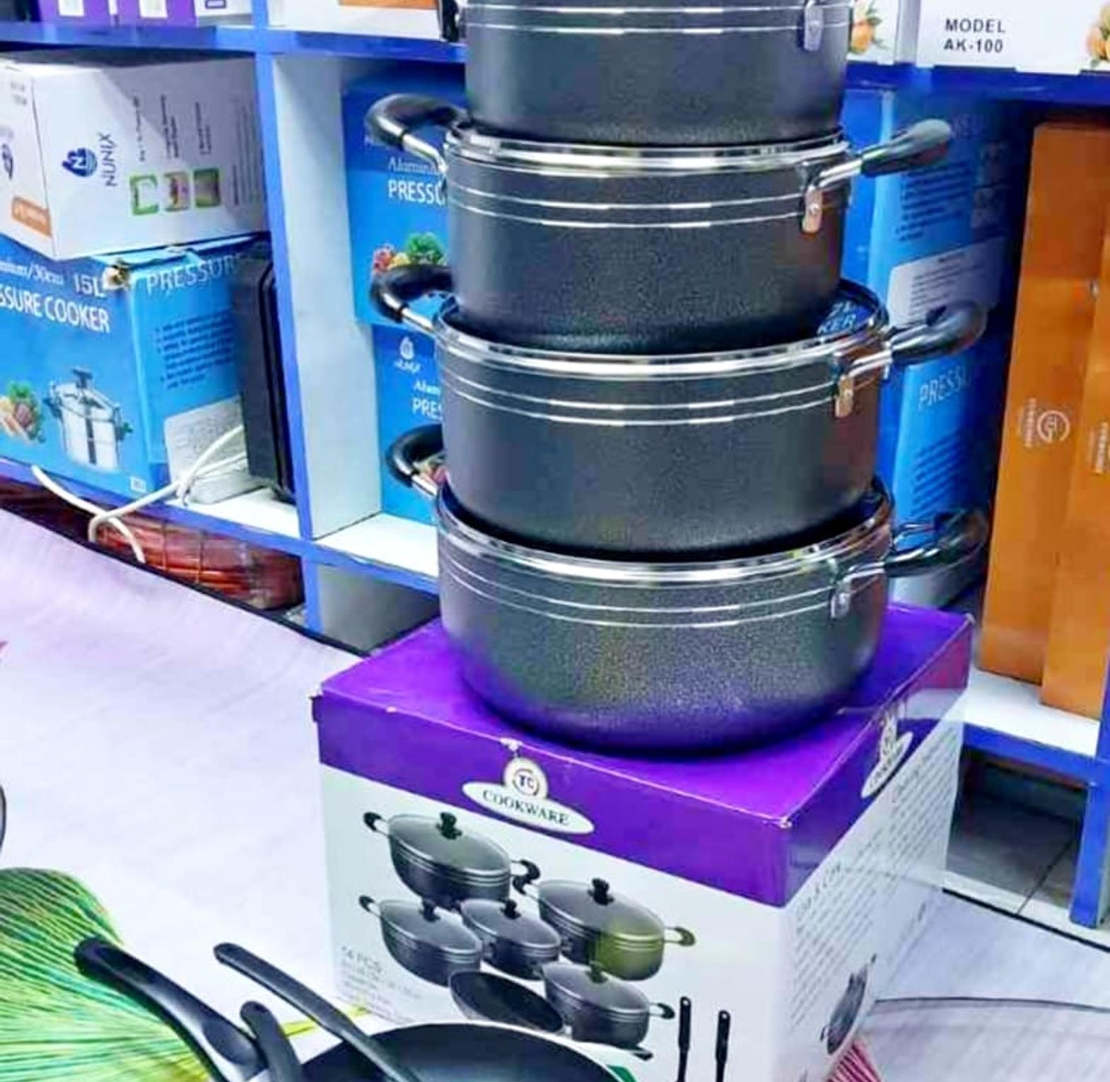 14 Piece Original TC NonStick sufurias. ♦️Nonstick. ♦️ Cost friendly. ♦️ Luxurious. ♦️ Durable. ♦️ Tc 14pcs nonstick cookware consists of; ▪️5 cooking pots(20/22/24/28/30cm Casserole). ▪️5 glass lids(20/22/24/28/30cm) ▪️26cm Frying Pan ▪️1Piece Scotch Brite ▪️2pc Nonstick Spoons.