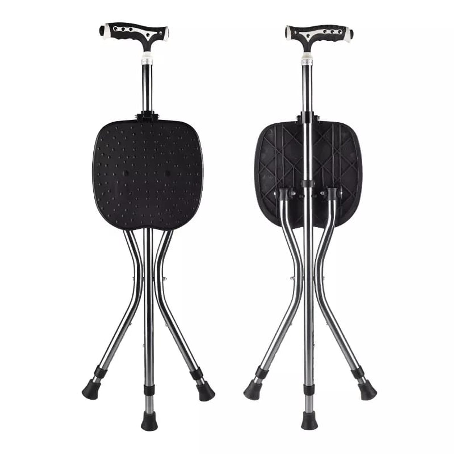 walking stick with an integrated folding seat, often referred to as a "walking stick with seat" or "cane stool". It serves as both a mobility aid for support while walking and a portable seat for resting when needed. It's designed to be lightweight and portable, often featuring a foldable design for easy carrying and storage.