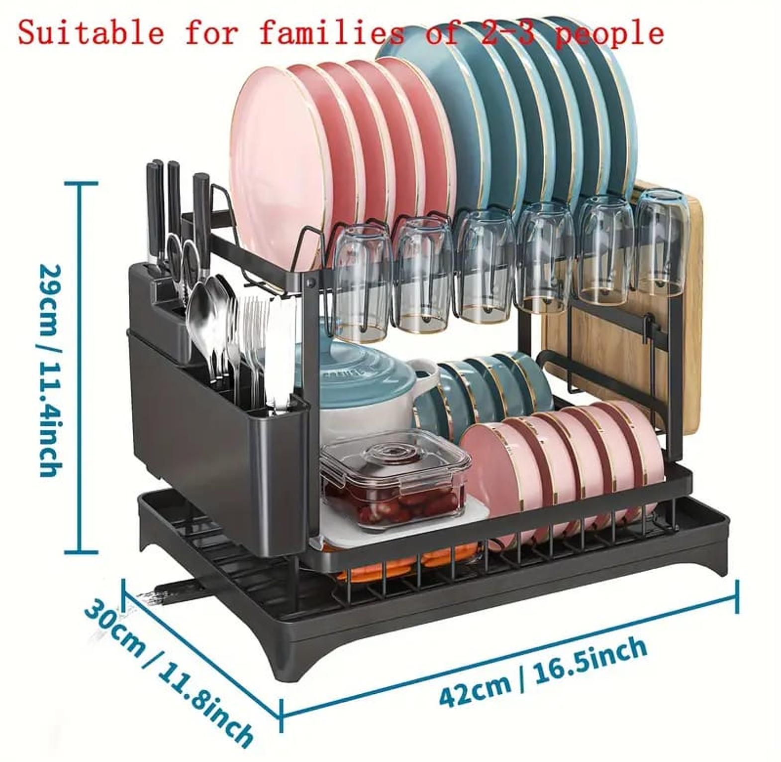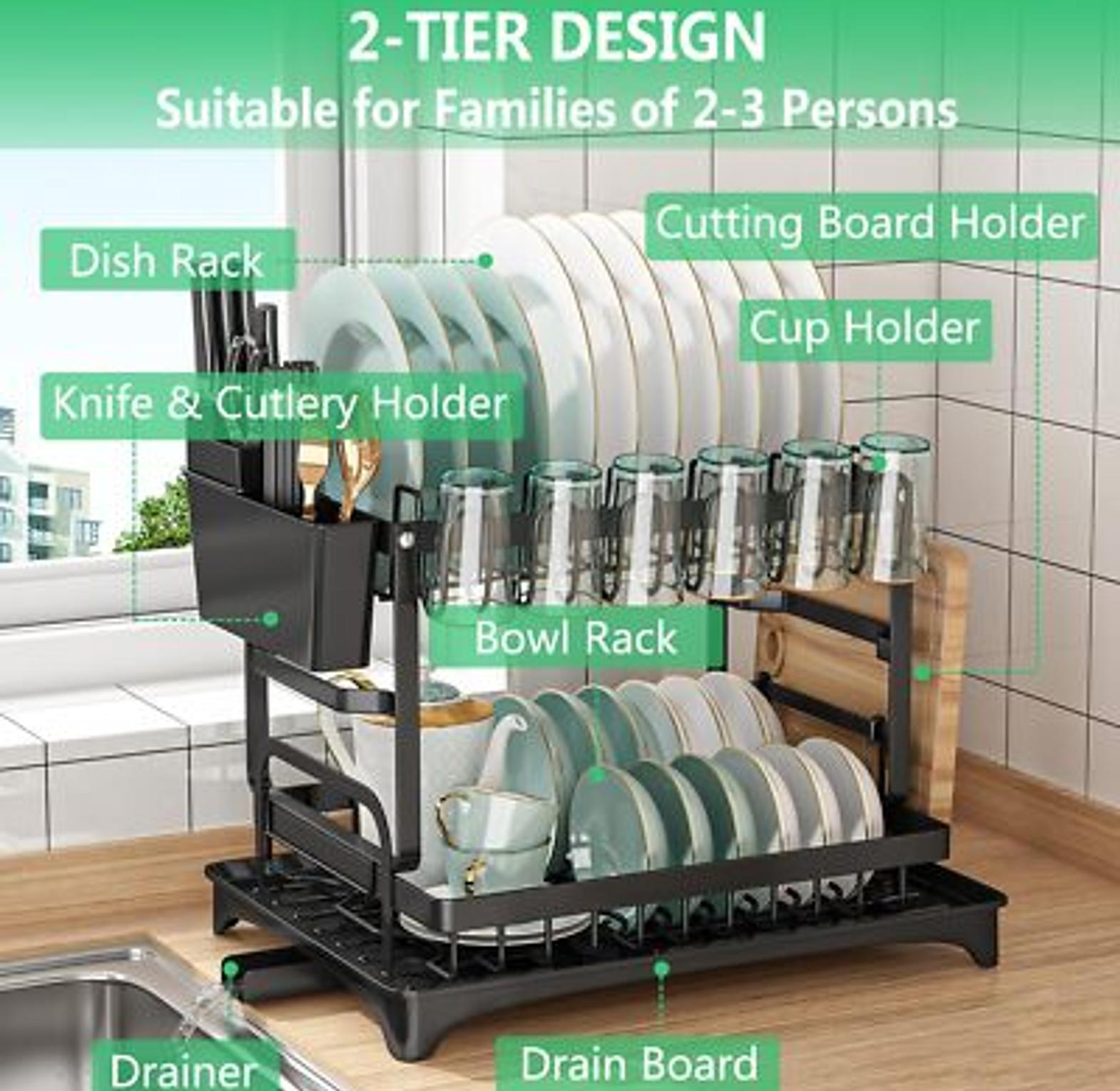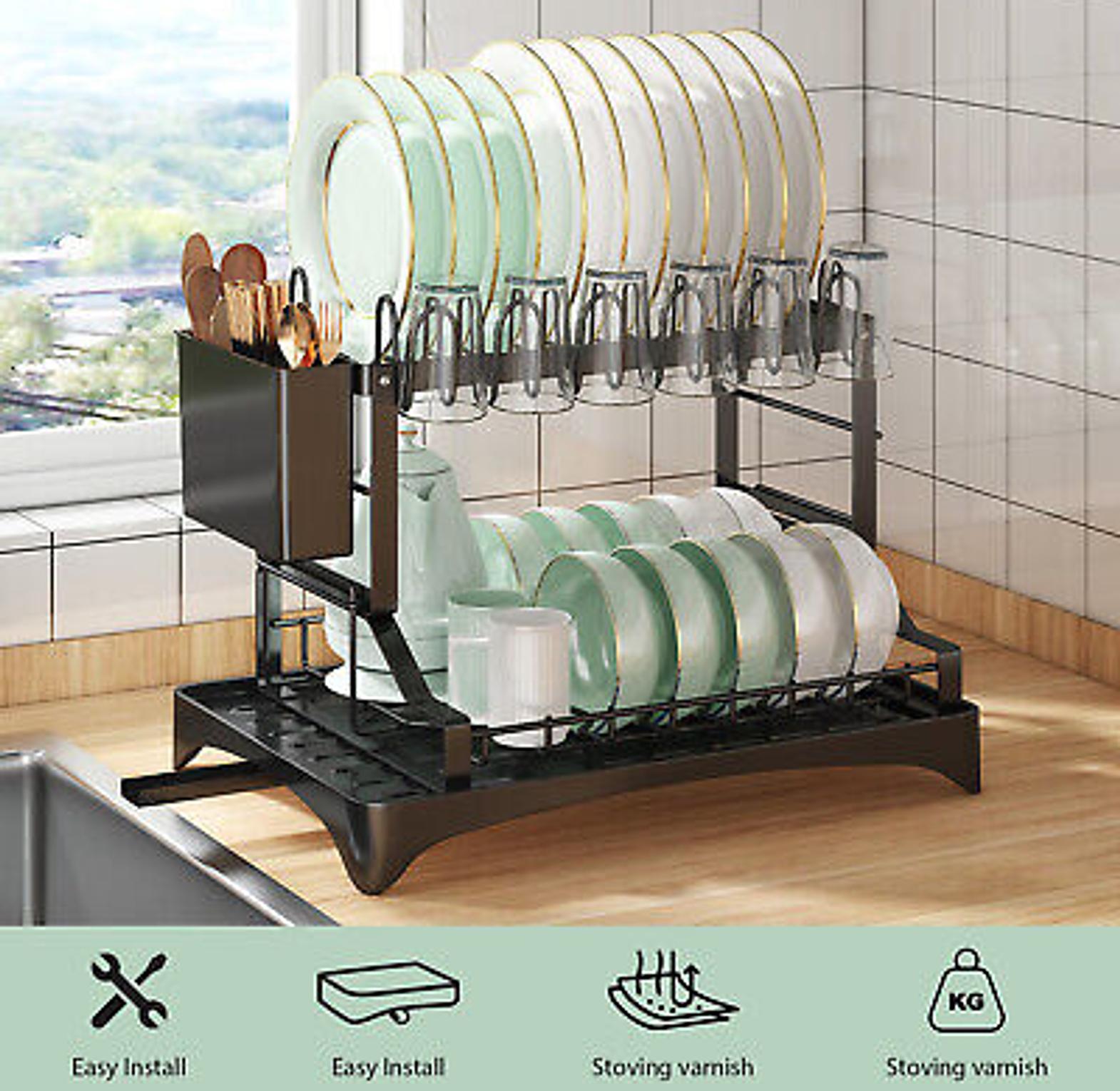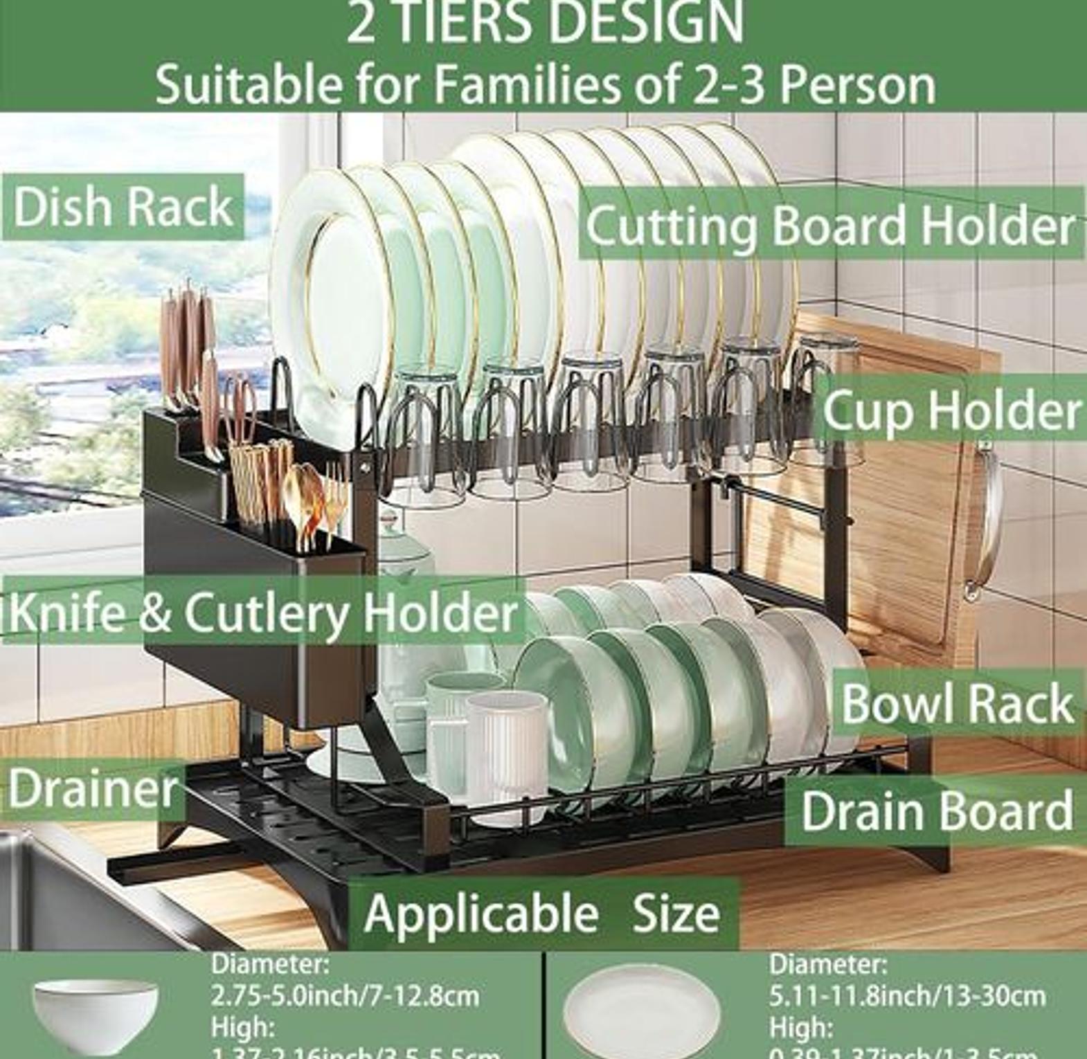 2 layer multifunctional bowl rack dish drainer now available in black colour