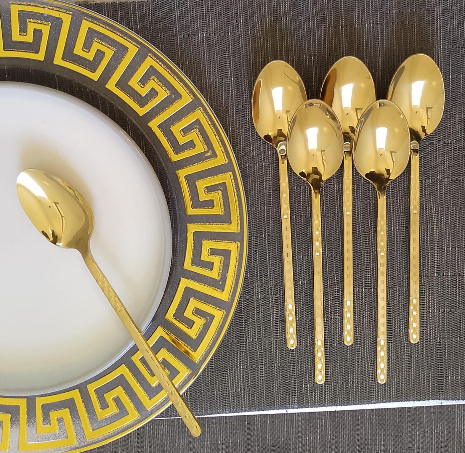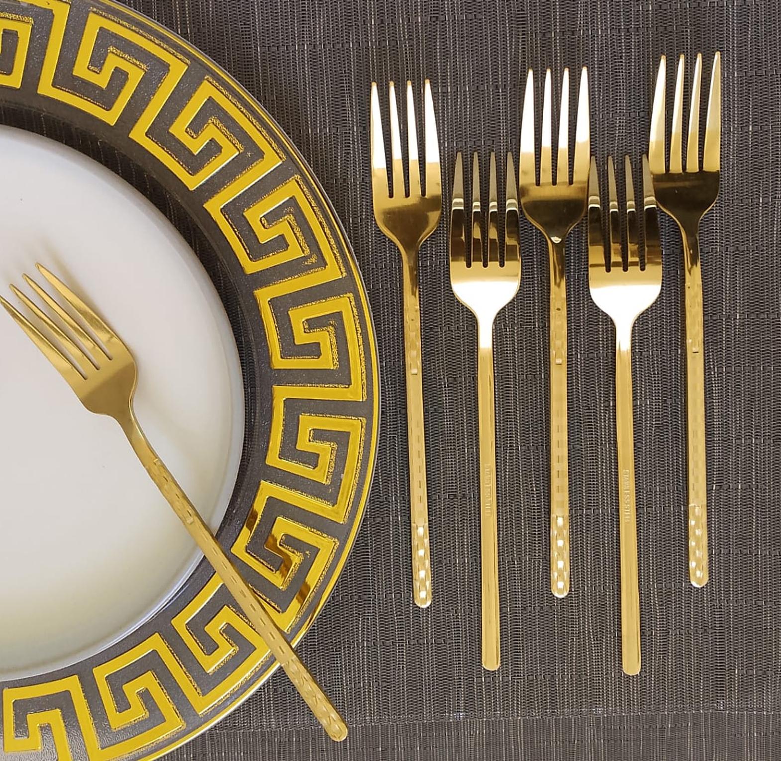 24 Piece Gold Flatware Set: Our gold cutlery contains 6 dinner forks, 6 dinner spoons, 6 tea spoons and 6 dinner knives, service for 6! Essential for families or restaurants, ideal for home and kitchen use. Packaged in a elegant gift box, perfect gift for Christmas.