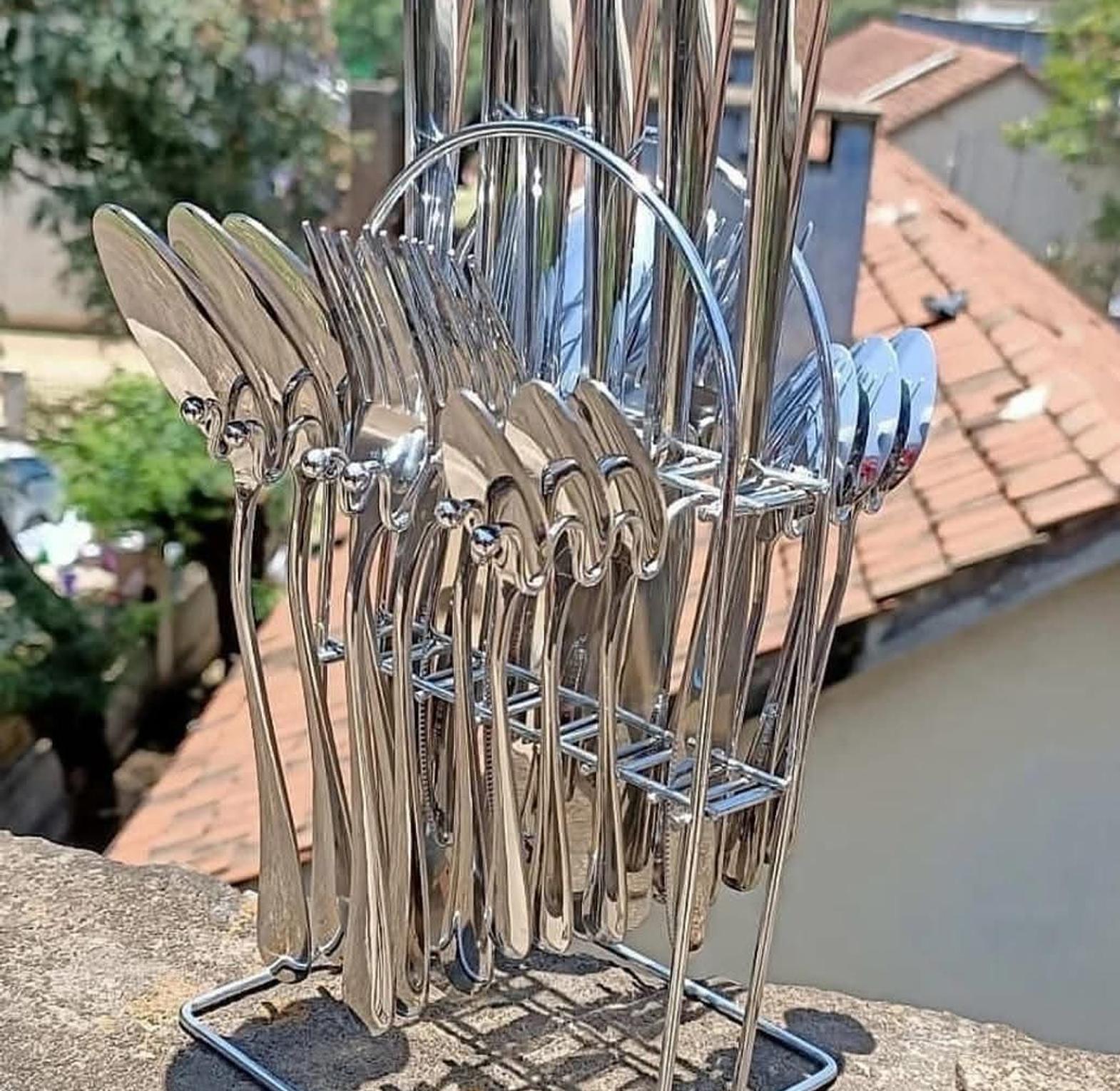stainless Steel Durable & Affordable 6x Dinner Knives 6x Dinner Forks 6x Dinner Spoons 6x Tea Spoons 1x Cutlery Stand.