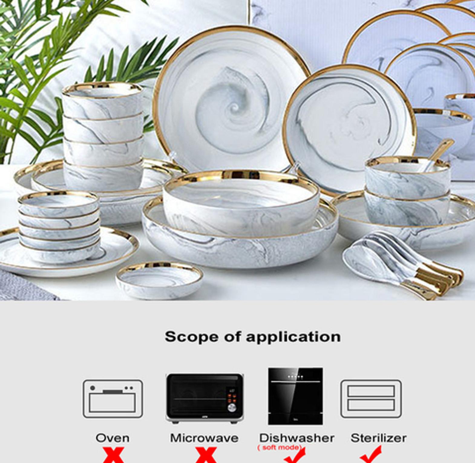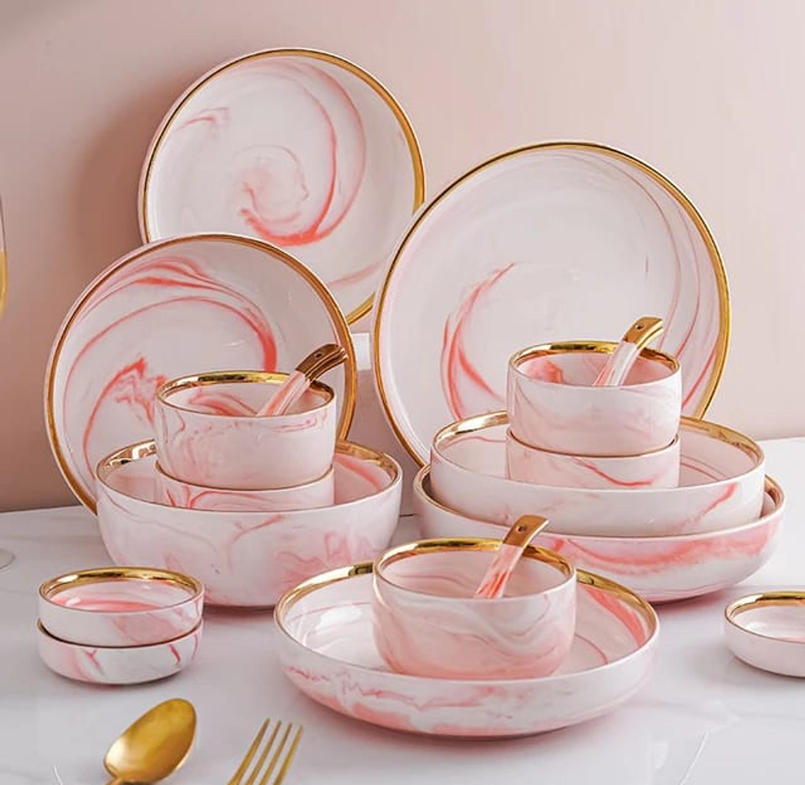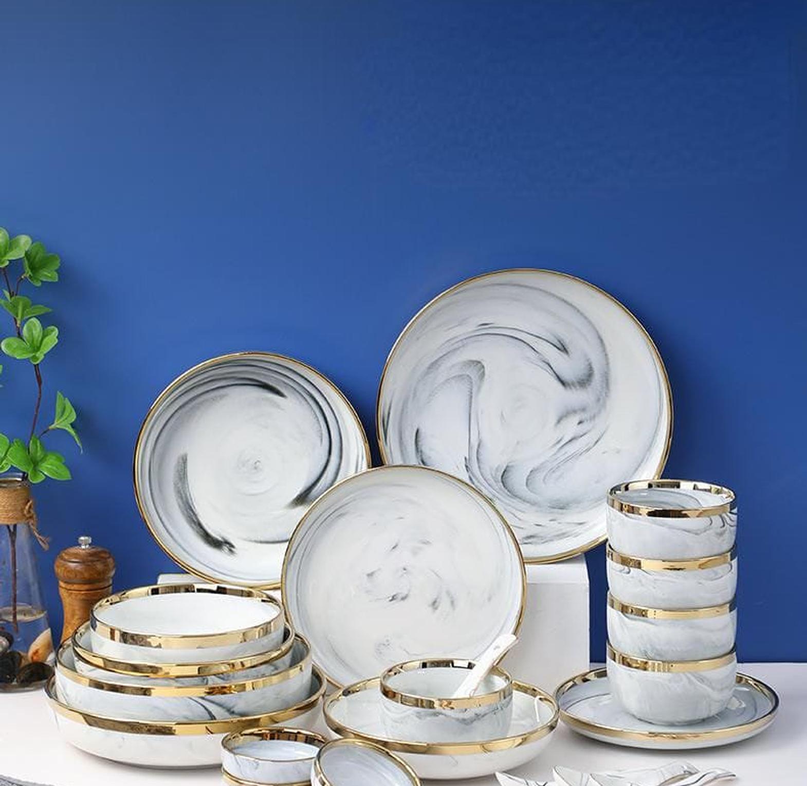 serve you dinner breakfast ,dinner or ypur visit with this magnificient round marble 26 pcs dinner set