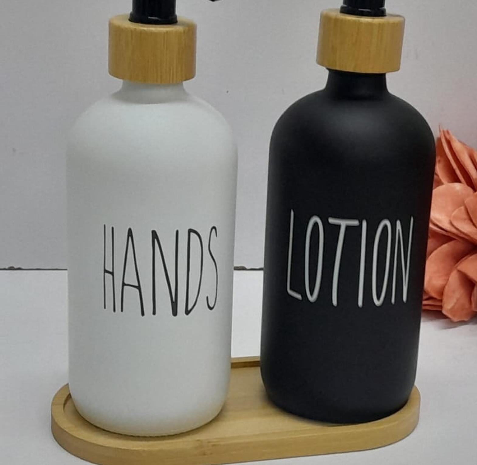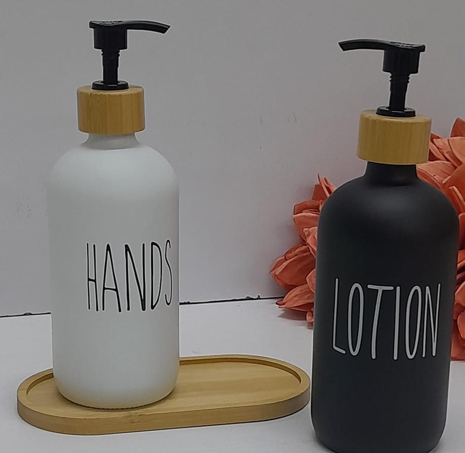 2pcs Kitchen Sink Dish SOAP//LOTION Dispenser ✅ material;; CEREMIC ✅Each500 ml , WHITE AND BLACK + wooden 💎HANDS & LOTION AVAILABLE