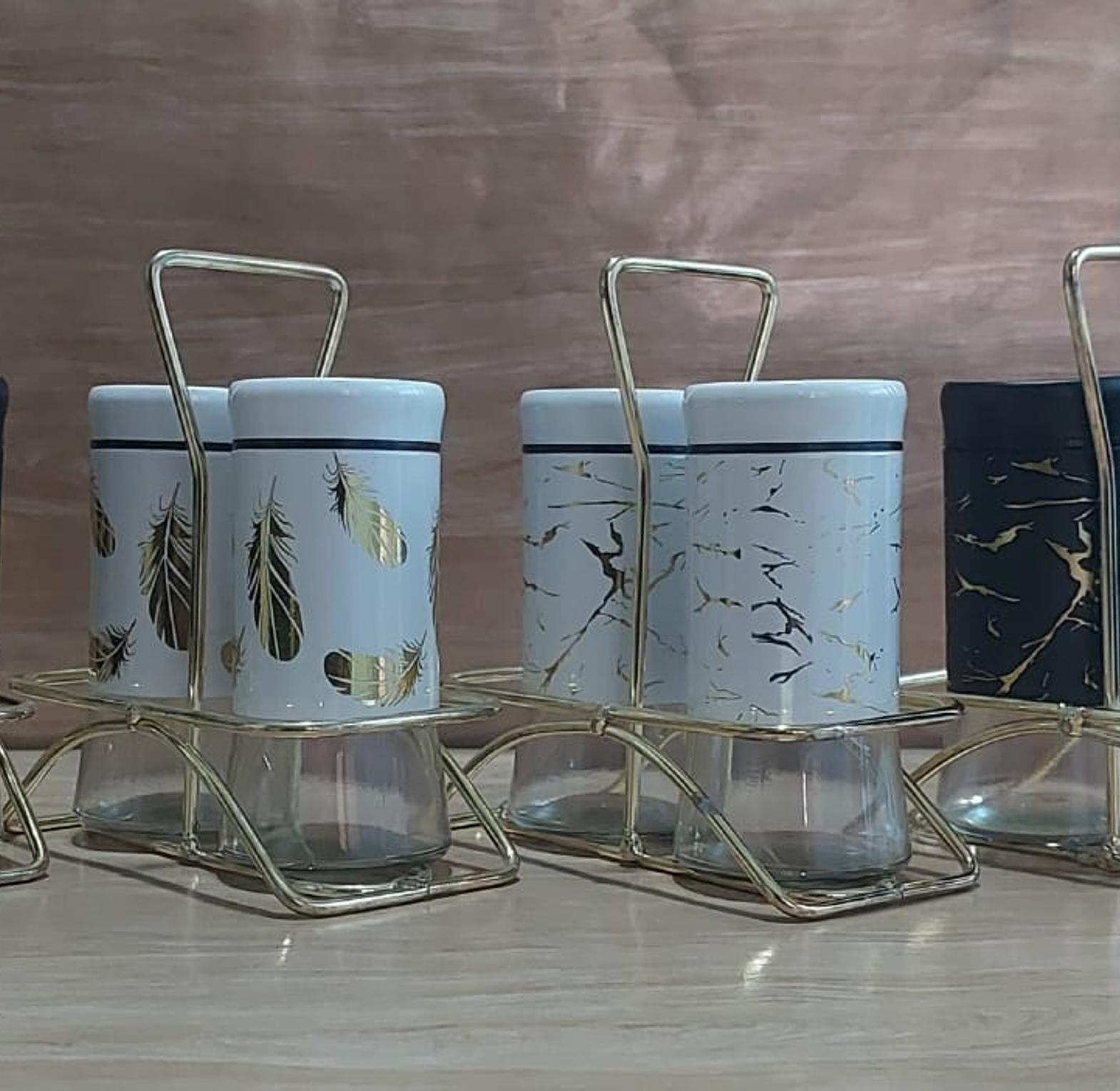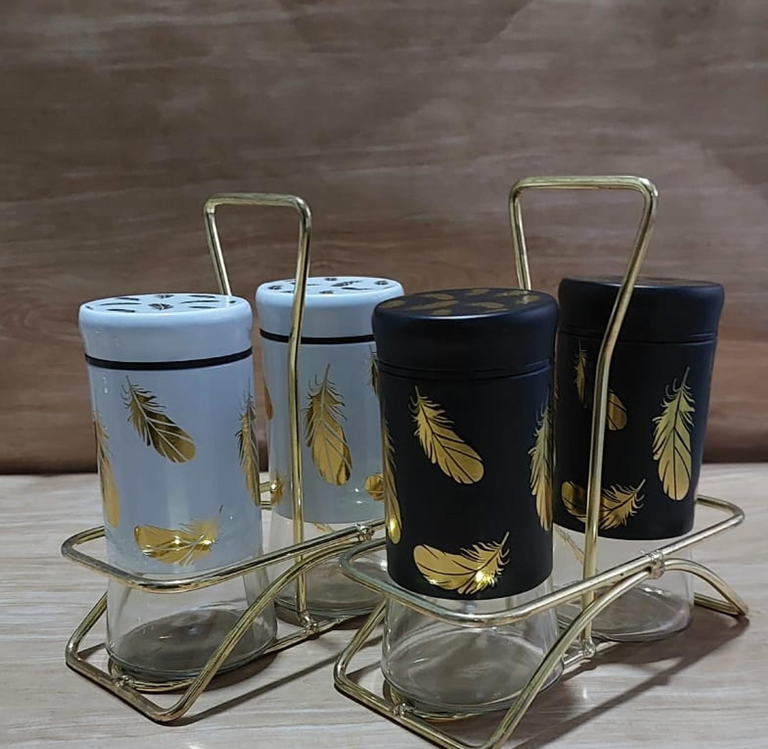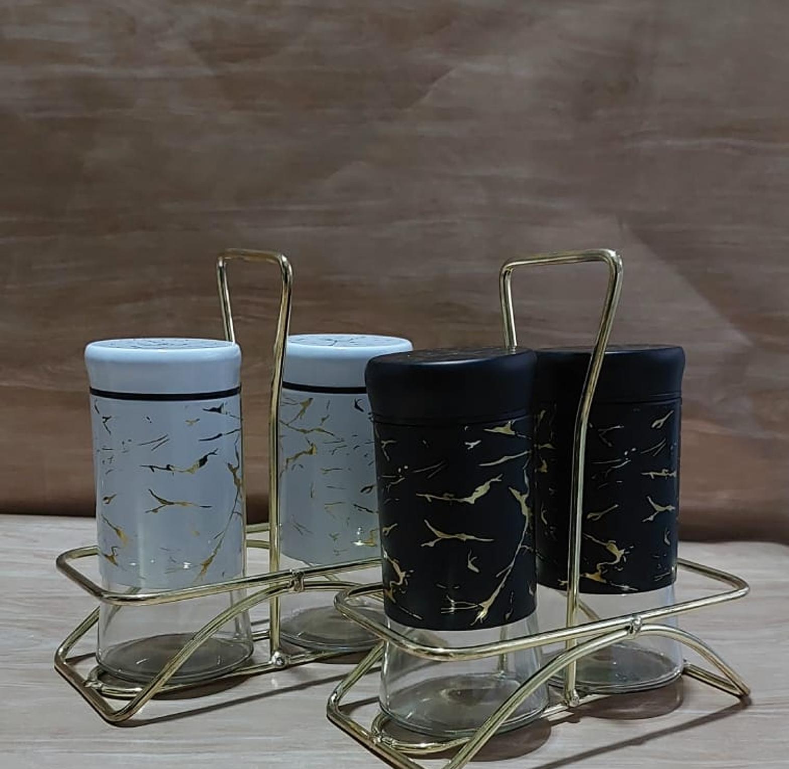 2pcs marble profile glass salt shaker +1stand now available colours black and white