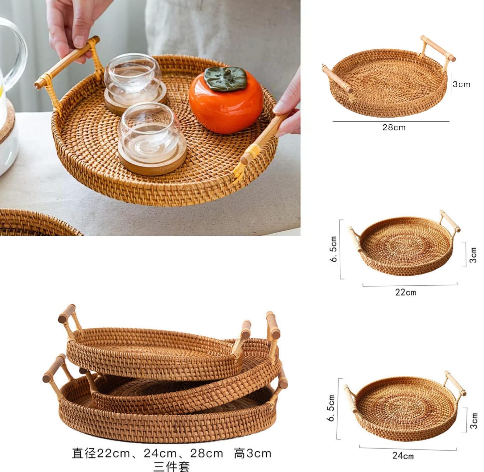 rattan multipurpose basket -Material:beech and autumn vine ✅Size: 28 cm ✅Size 24cms ✅Size 22cms -use as a decorative tray, to serve, and as a kitchen/bedroom organizer
