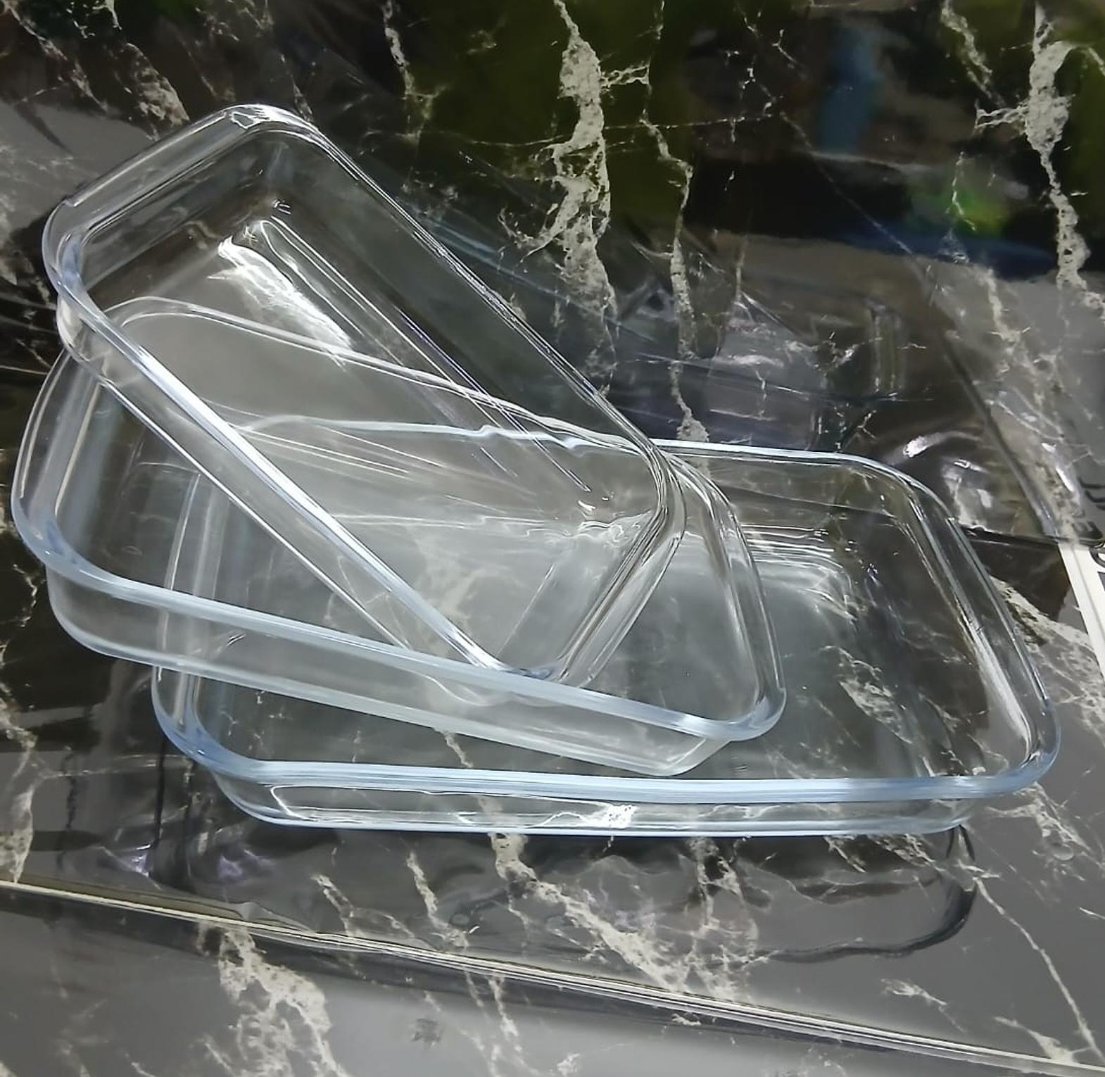 3 in 1 borosilicate Baking glass ware set now available Capacity 1 ltr 1.6 ltrs 2.2 ltrs