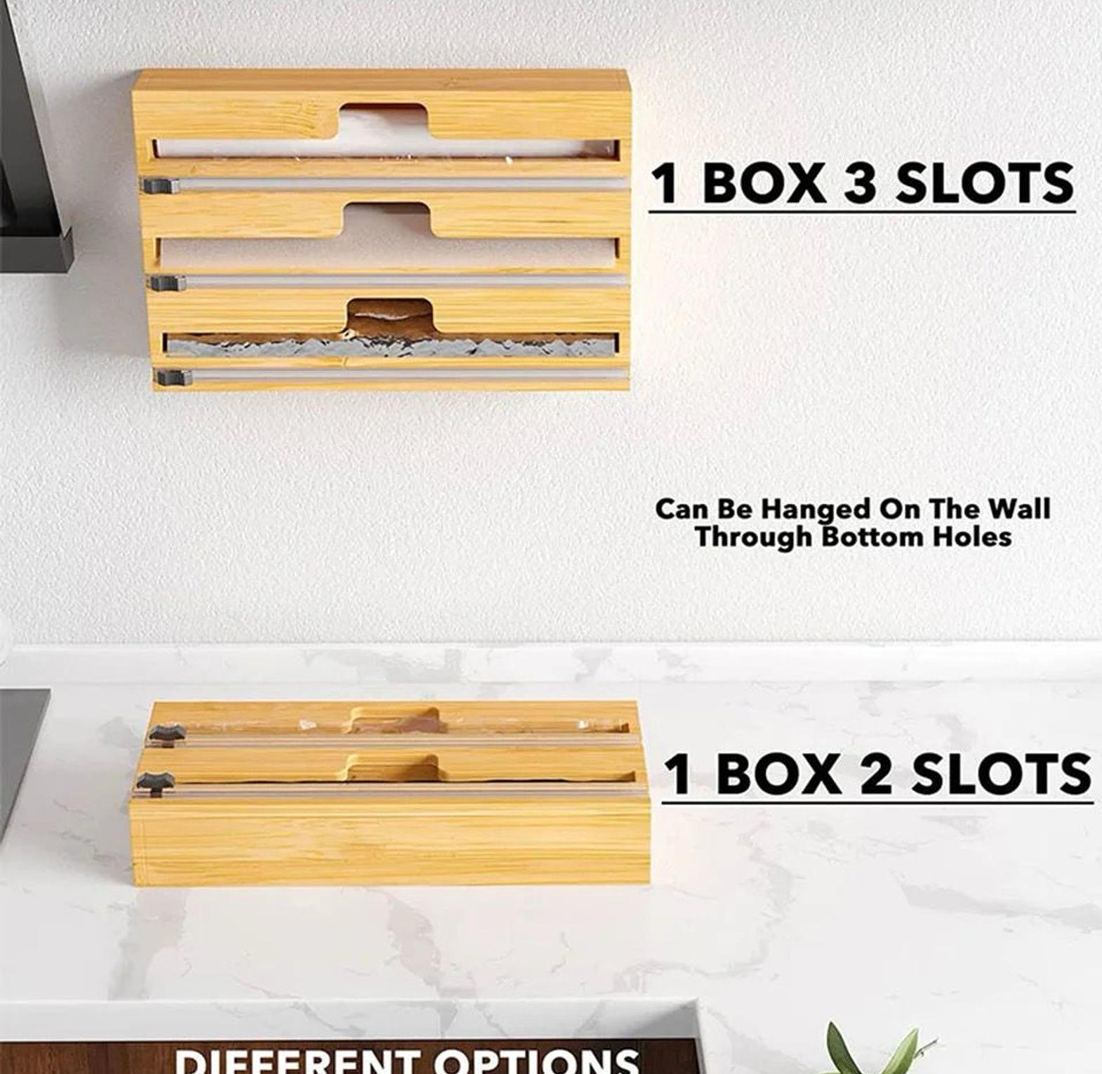 3 Layers Aluminum Foil Wrap Dispenser Wood Storage Box for Kitchen Drawer Easy to Cut Durable Wrap Dispenser Wooden