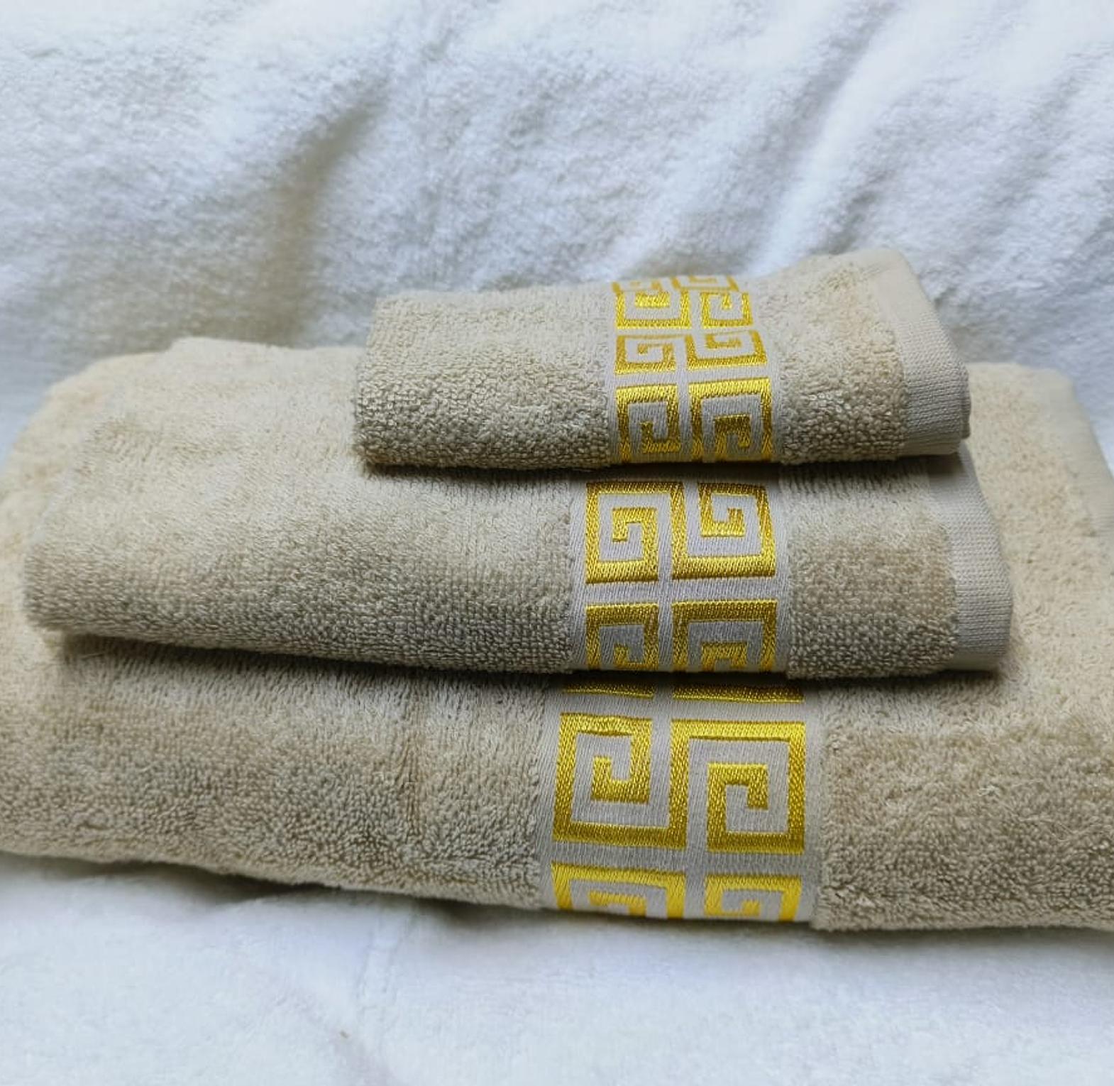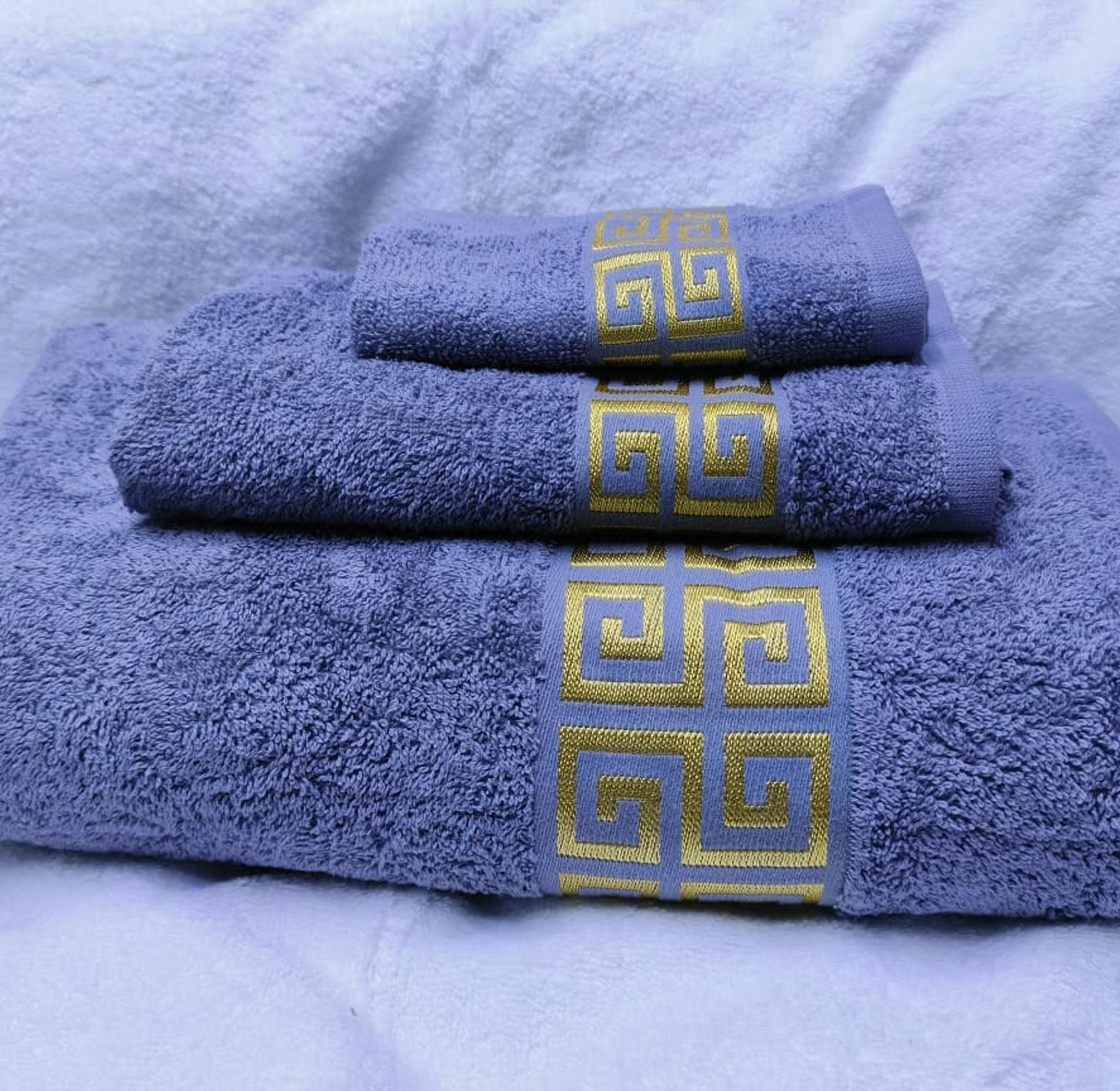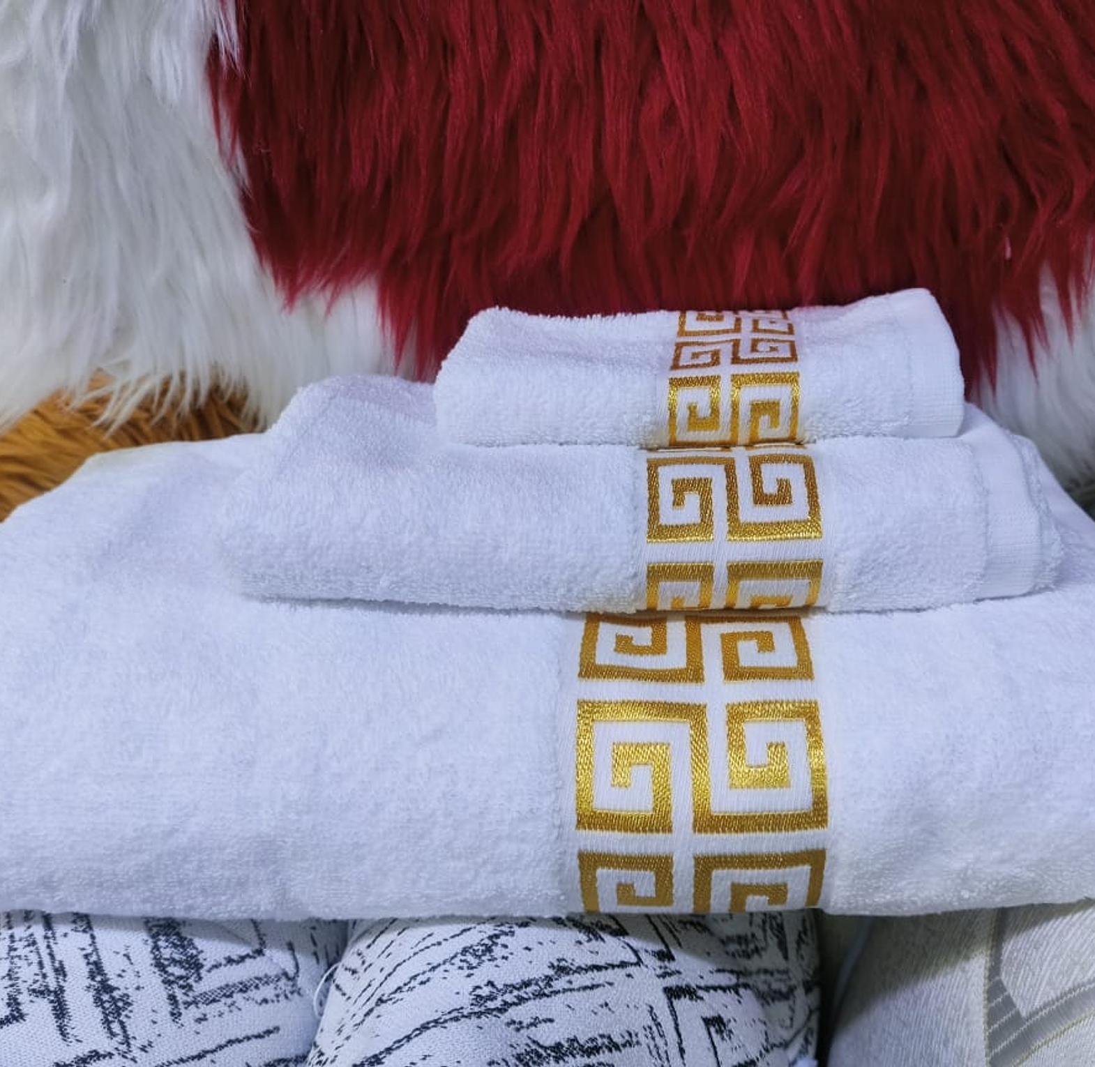 3 pieces set towels ▫️ Egyptian cotton ▫️ Lotus design 🔊 large ▪️80cm by 160cm 🔊Hand towel ▫️40cm by 70cm 🔊Face towels ▫️30cm by 30cm