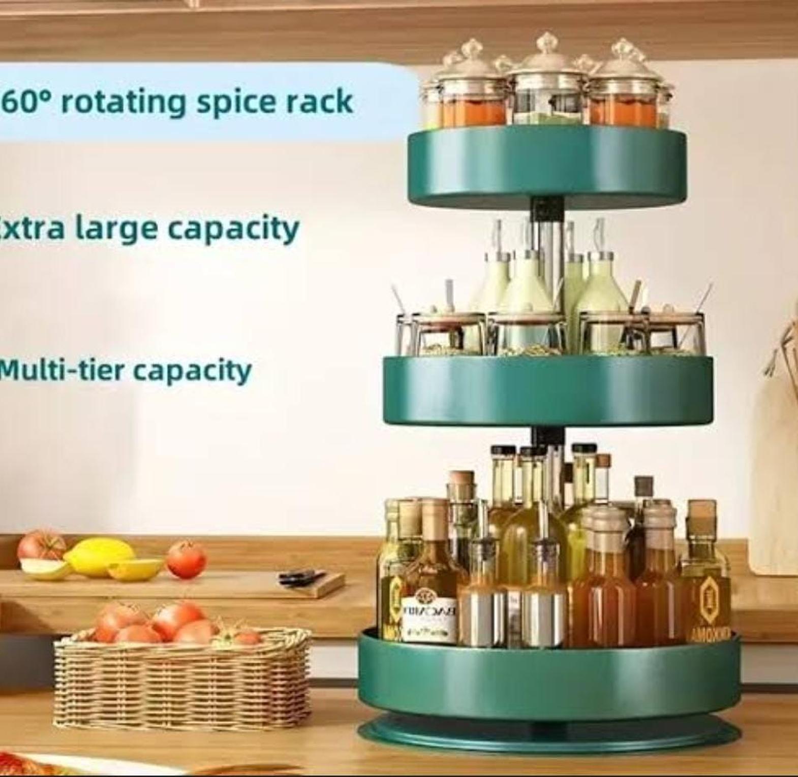 Maximizes Space: Efficiently utilizes vertical space, making it perfect for small kitchens or areas with limited storage. Convenient Access: Rotating design allows easy access to all items, eliminating the need to search through cluttered shelves. Organizational Aid: Keeps kitchen essentials neatly organized and easily accessible, enhancing kitchen efficiency and tidiness. Multi-Functional: Versatile design allows use in various settings, from kitchen to bathroom to office, providing organizational solutions throughout the home.