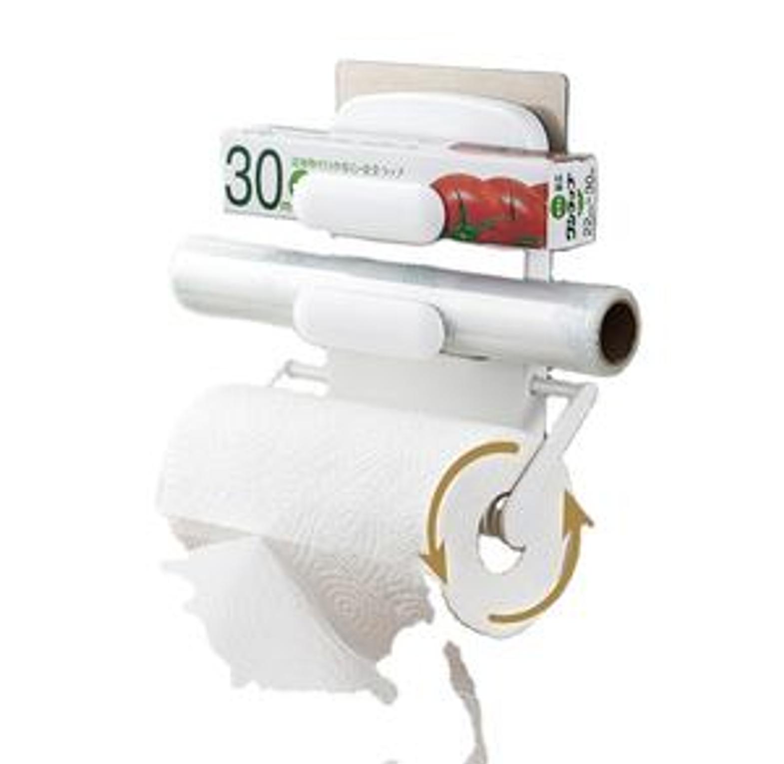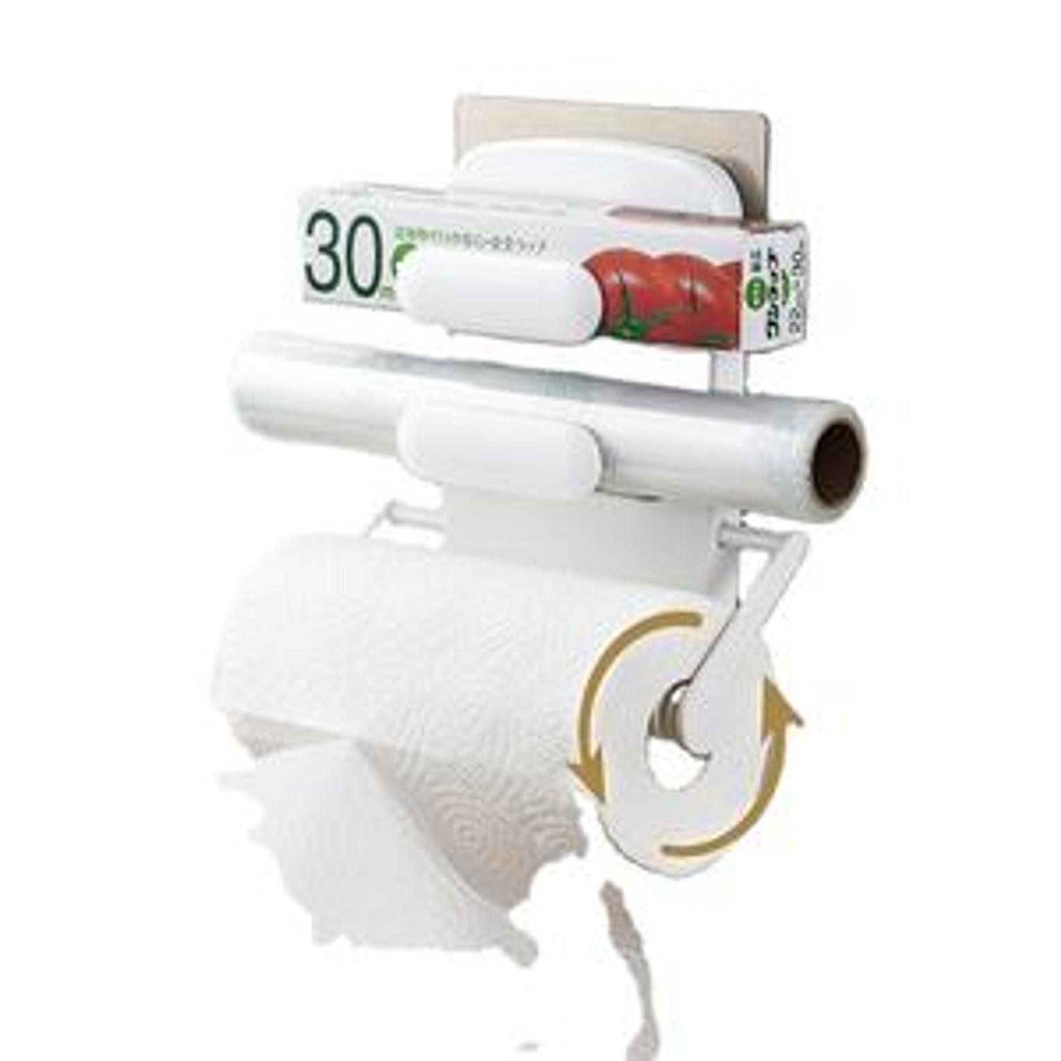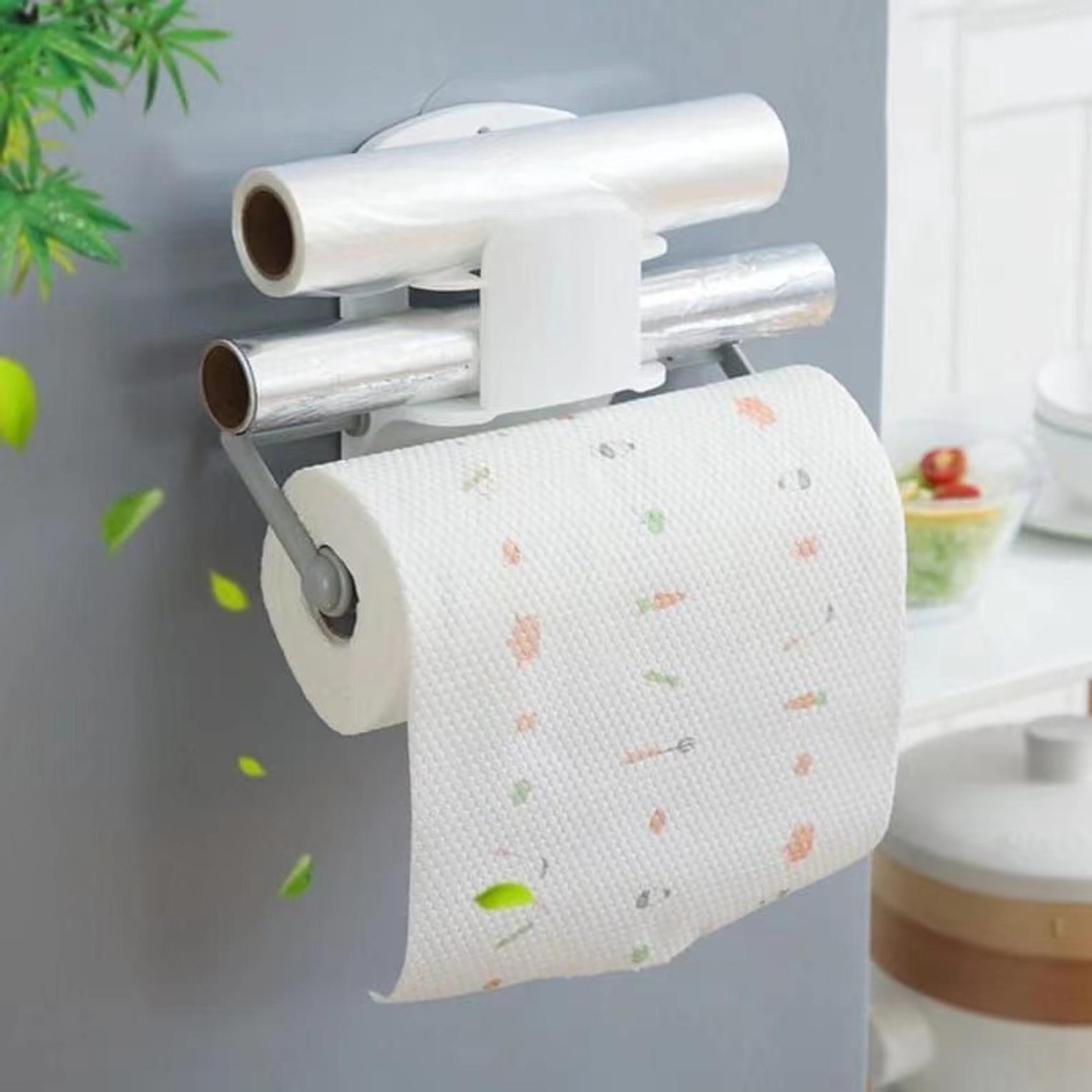 The "3 in 1 Triple Paper Dispenser Simple Open Design" is a kitchen storage solution that combines a paper towel holder, a cling film dispenser, and an aluminum foil dispenser into one unit. Its key features include a simple, open design for easy access and refilling, and a space-saving wall-mountable or countertop design. It often includes sharp cutting edges for clean dispensing of plastic wrap and foil.