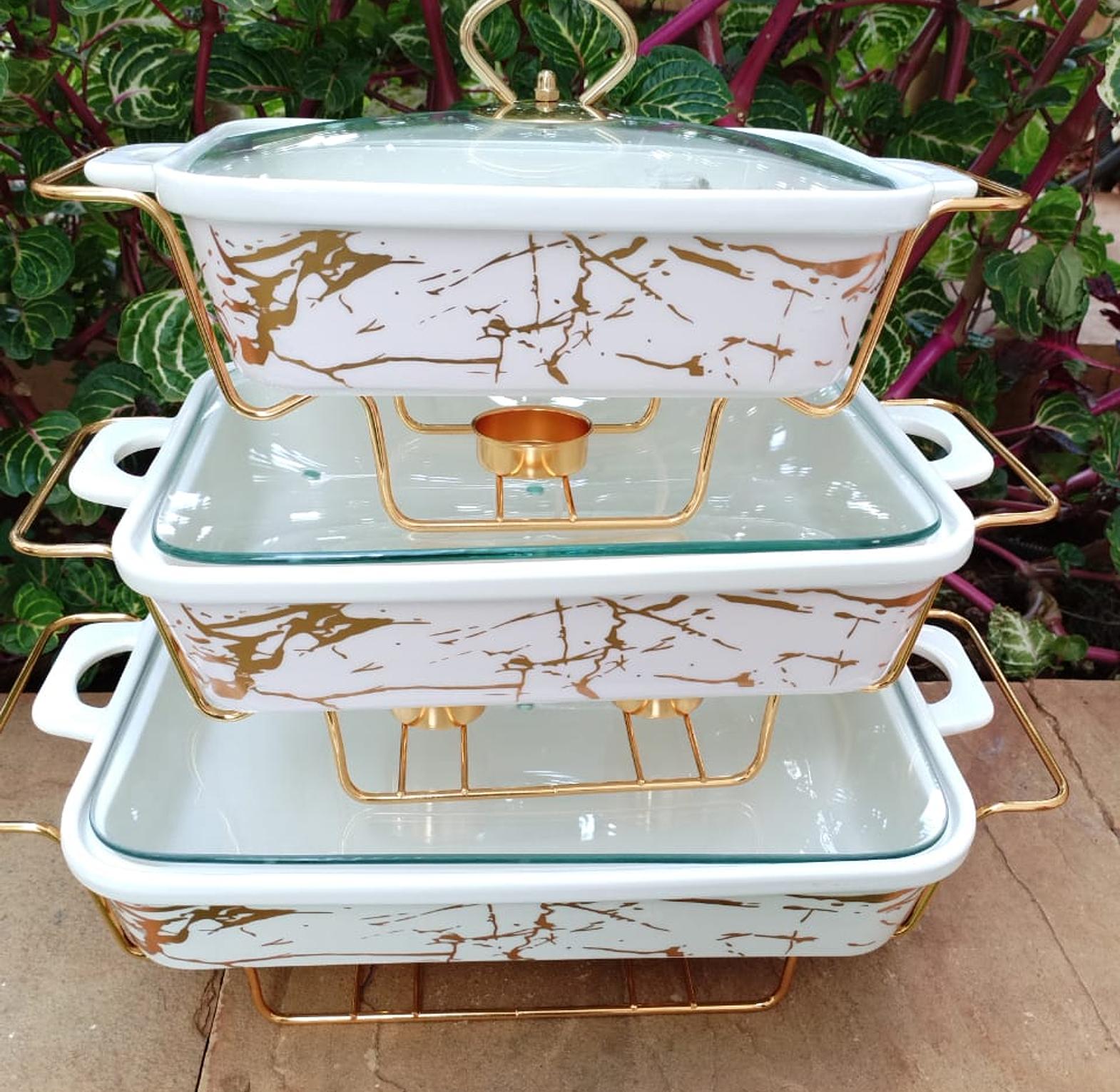 3pcs serving dishes Ceramic Food Warmer Chafing Dish For Food Service is the best when you are having events, weddings, birthday parties, or guests at your house or normal family dinners.