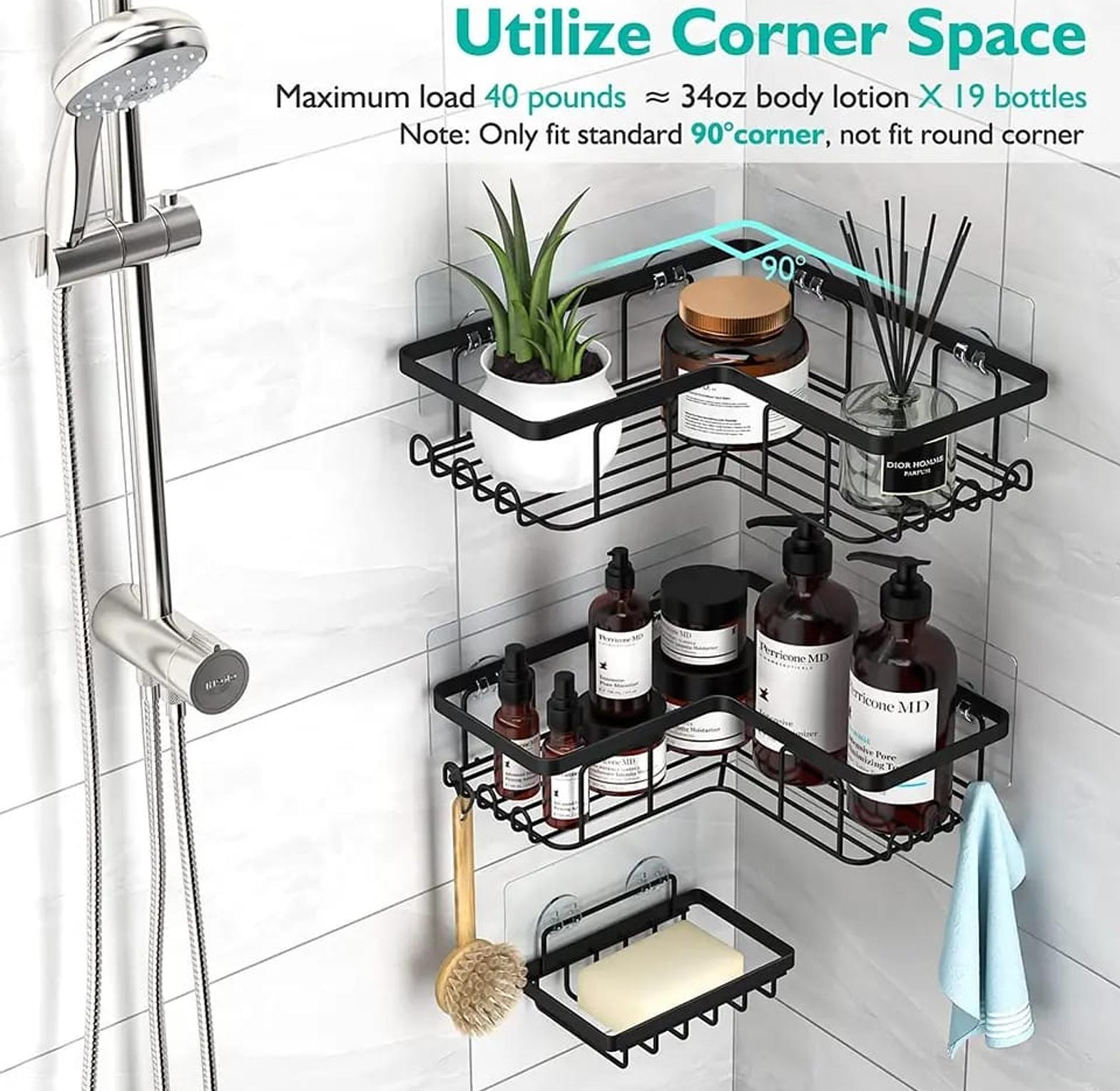 3pcs set Heavy-duty Shower caddy shelf/Bathroom organizer ☑️ Rustproof ☑️No drilling ☑️Incresed load capacity adhesives ☑️ Suitable for smooth flat walls ,eg tiles,Smooth marble,Smooth wood panels ,Smooth metal ,glass