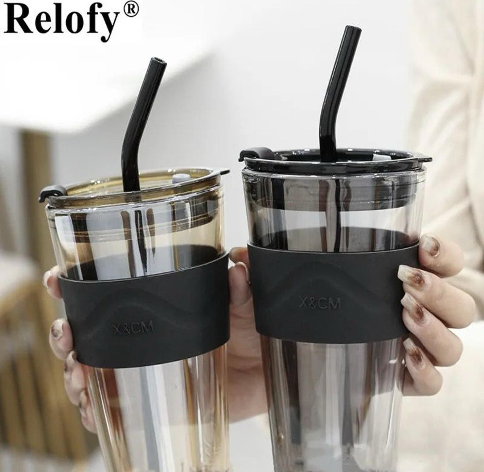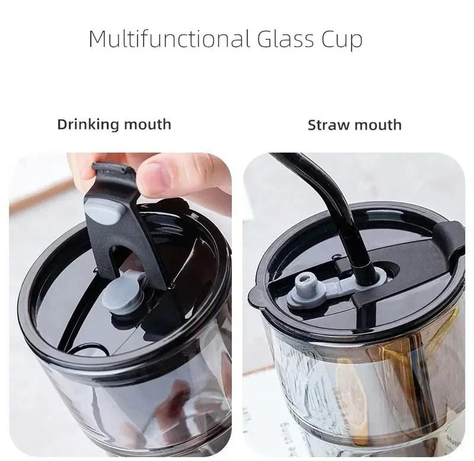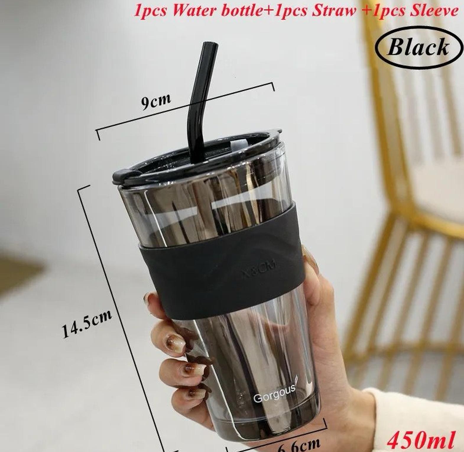 ✅450ml Coffee Cup Water Bottle ✅Thick Glass Mug Heat-Resistant Milk Juice Cup Drinkware Travel Sealed Non-slip Set Straw Mug