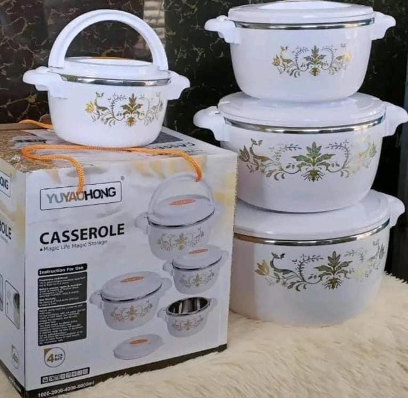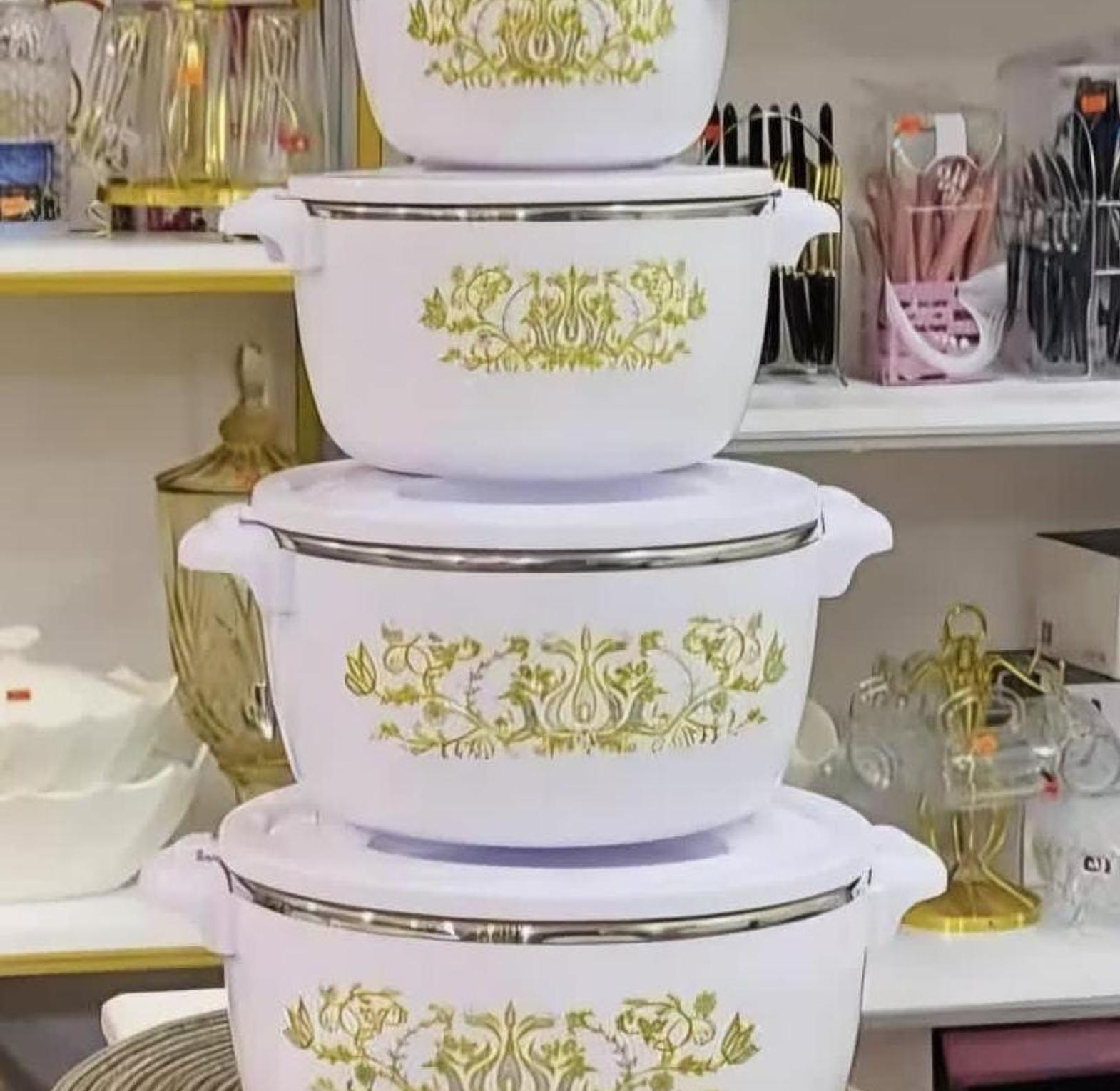 4 Pieces Insulated Hot Pots Casserole Set Comfortable carrying during travel,picnics etc Freshness Redefined - Retain aroma, taste & nutrition Intact locking system Thick polyurethane insulation keeps food hot and fresh for 4-6 hours No need to microwave your food..