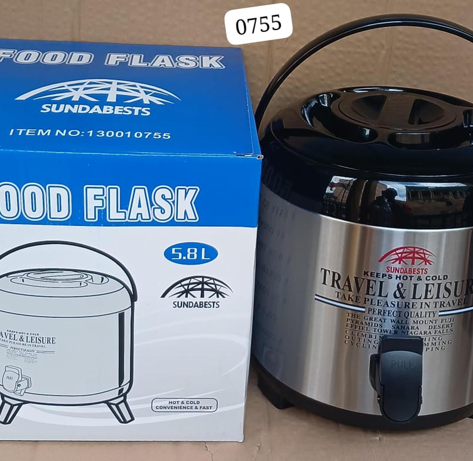 Peculiar Portable Thermo-flask for beverage & hot water holds a capacity of 5.8 litres. It is made of stainless steel and has a concealed heating element. This product features energy saving functions. It comes with a unique lid which reduces noise and prevents spillage or vapor to be lost. It's has a very friendly ease in both opening and closing the top lid. It is easy to clean. It is durable. Has a PU foam insulated to keep cold & hot for longer time. Convenient usage . Capacity is 5.8 L Easy to carry as well and perfect to use for travel pick nicks and travel leisure'