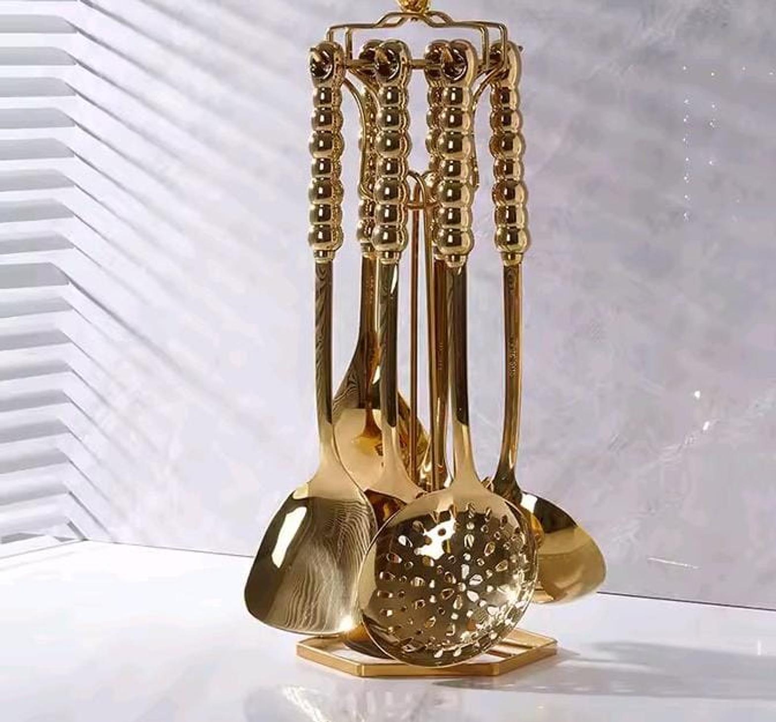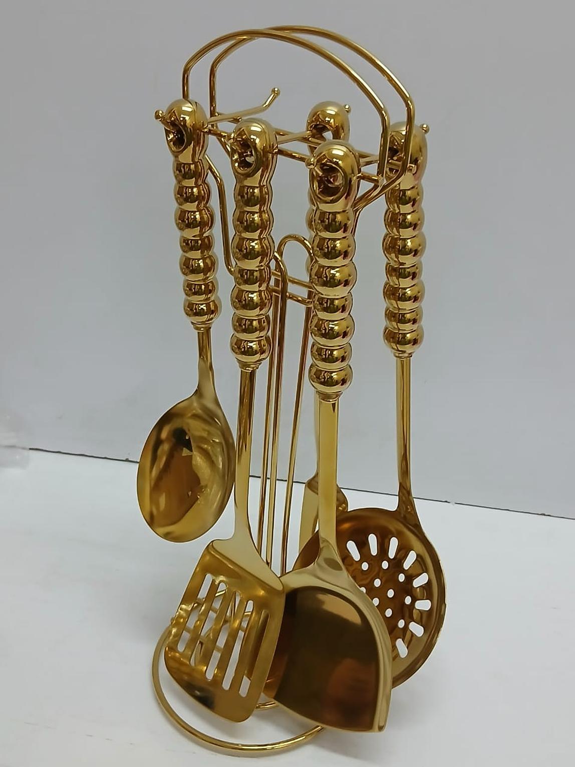 6 in 1 gold vanished serving spoon set with stand and ceramic handle now available Colours available ▪️Gold