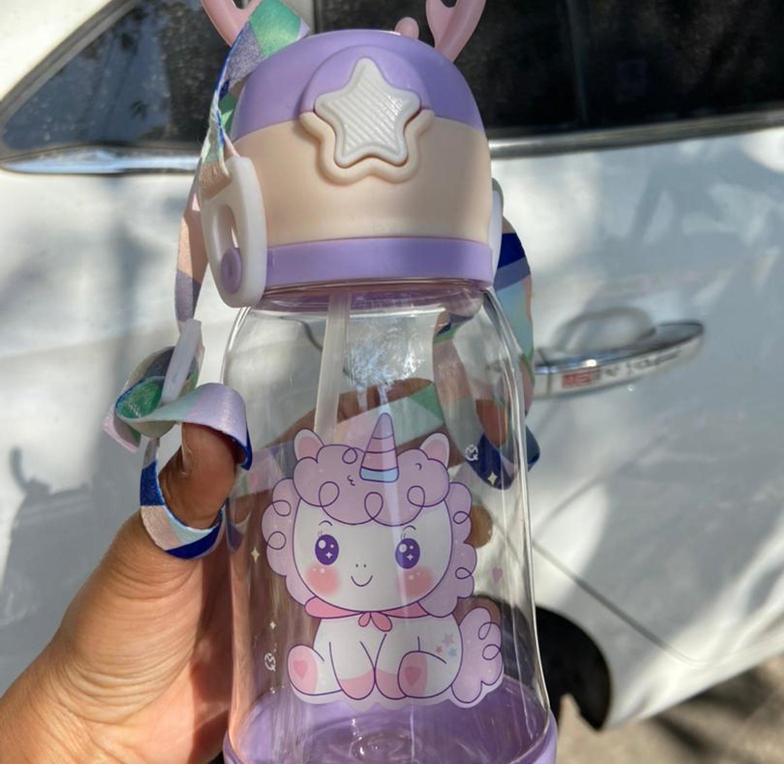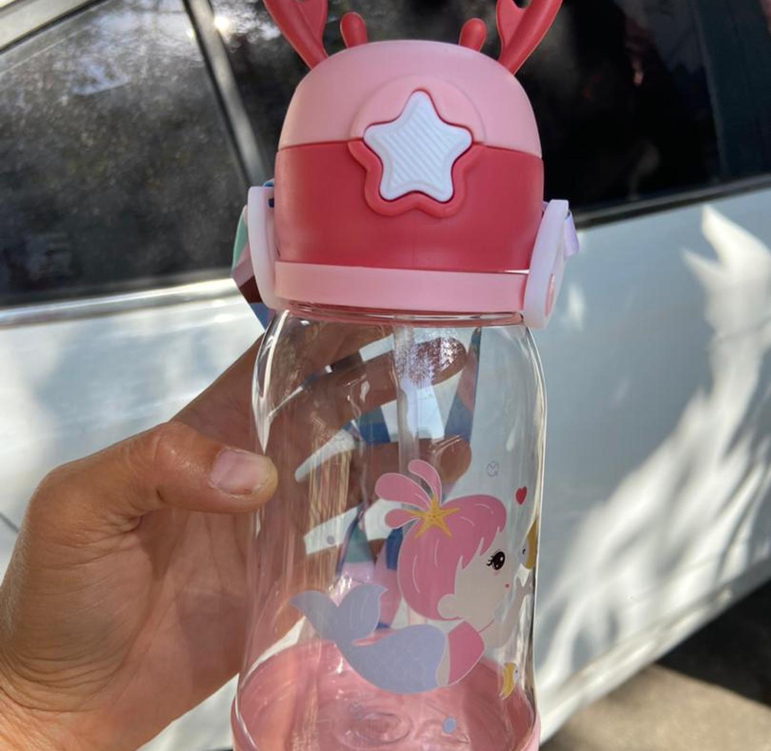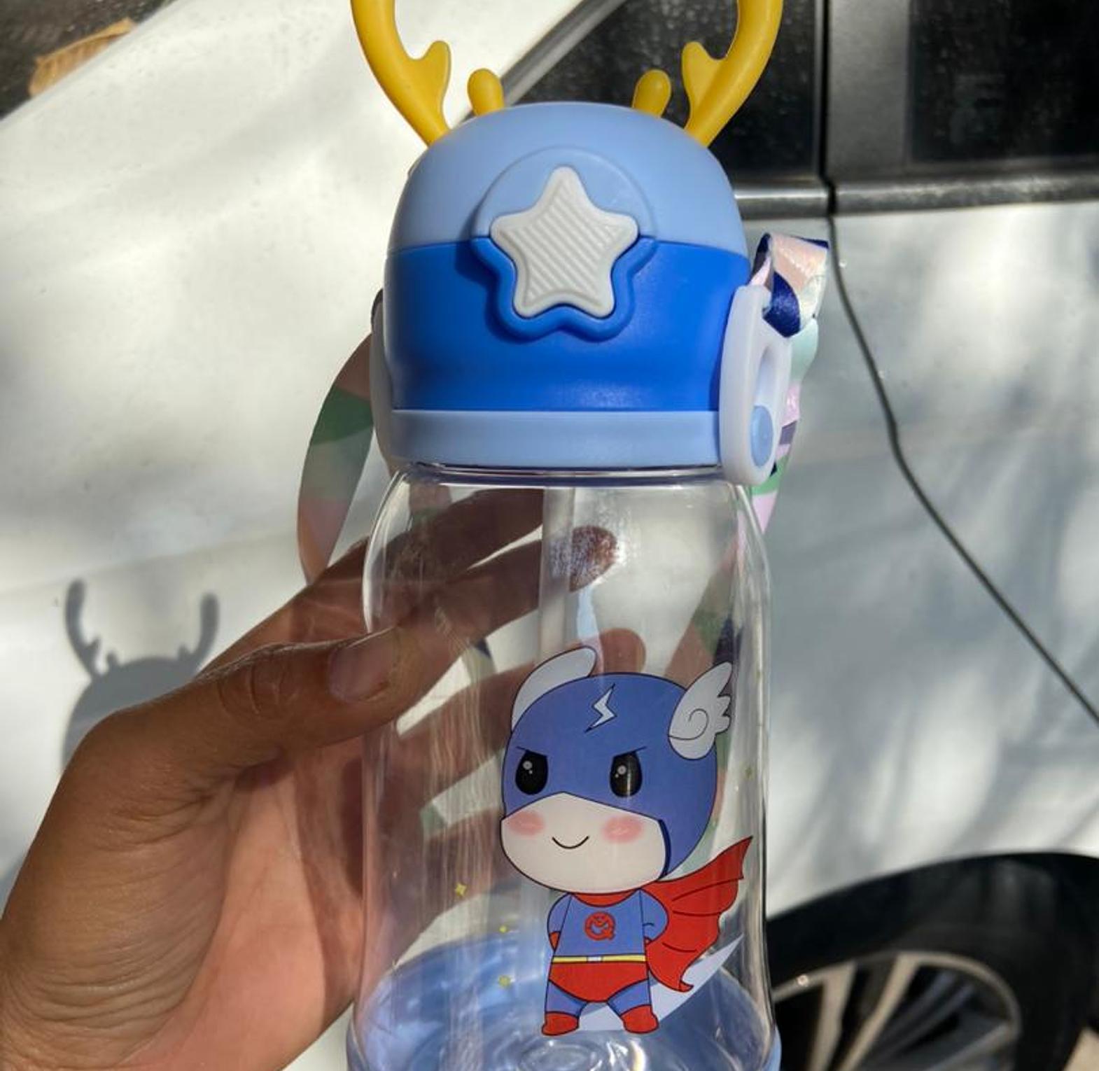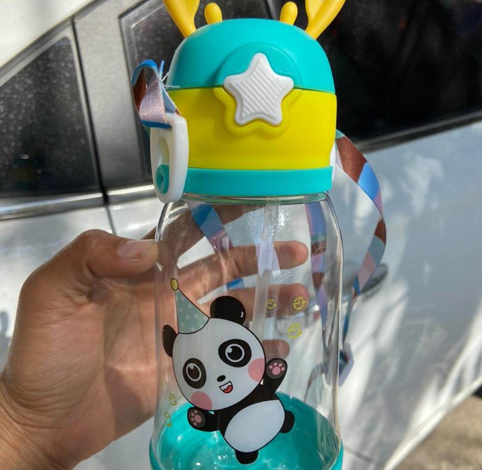 *600ml Sport Water Bottle Lovely Antlers Large Capacity Portable Clear Straw Bottle Student Water Cup for Outdoor
