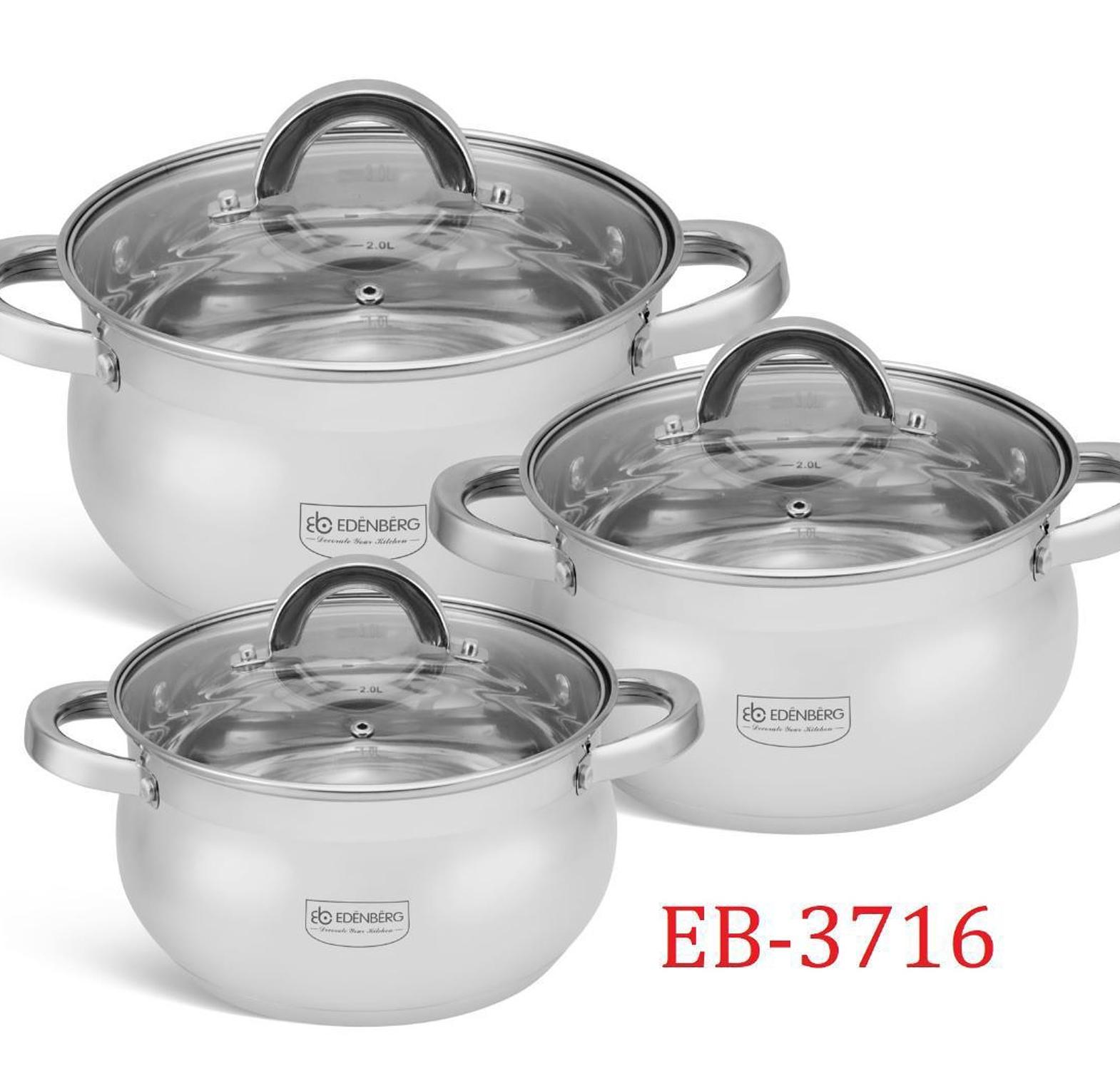 Material: stainless steel Multi-layered bottom provides excellent heat conductivity Food heats up quickly and material preserves heat long, Lids made of tempered glass with a steam hole Suitable for all types of cookers including inductive The set contains: pot with lid 16cm diameter and capacity 2.1l pot with lid 18cm diameter and capacity 2.9l pot with lid 20cm diameter and capacity 3.9l