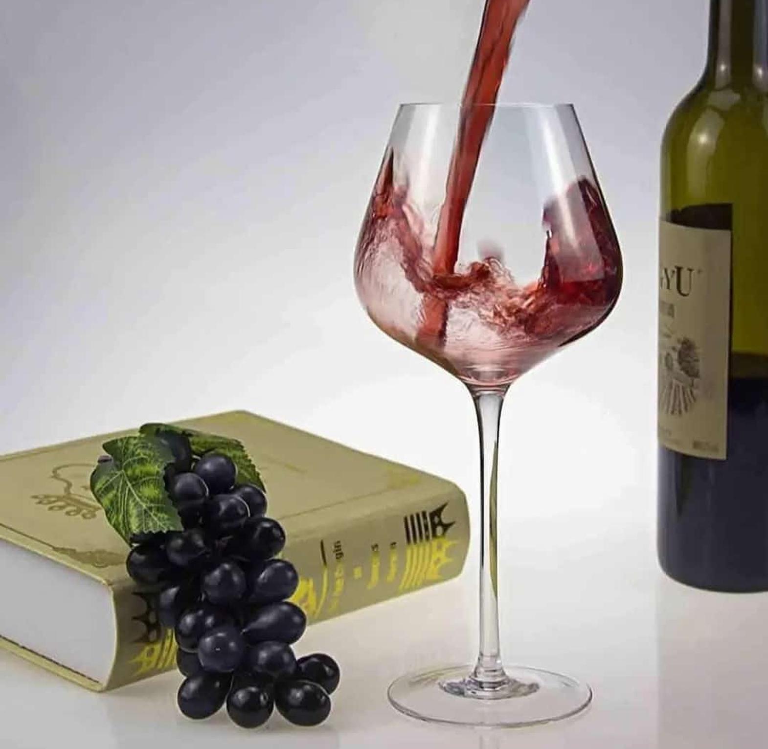 The wine glass is crystal clear , its has a capacity of 800ml has long tale its suitable for champgne has a modern style its light and transparent sold as 6 pcs
