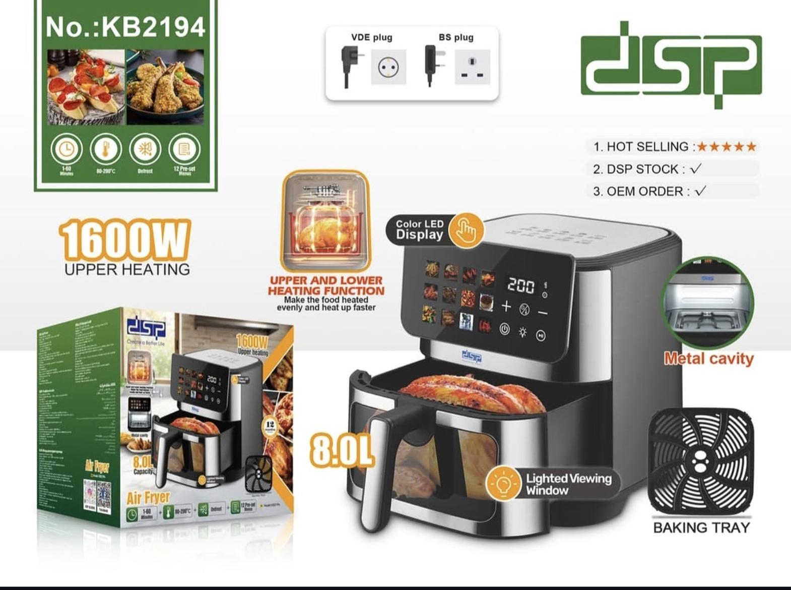 8.0 L Airfryer ✴️12 large icon preset menus with colour touch display ✴️Upper & Lower heating function ✴️LED Display & Glass colour screen ❇️Overheating protection