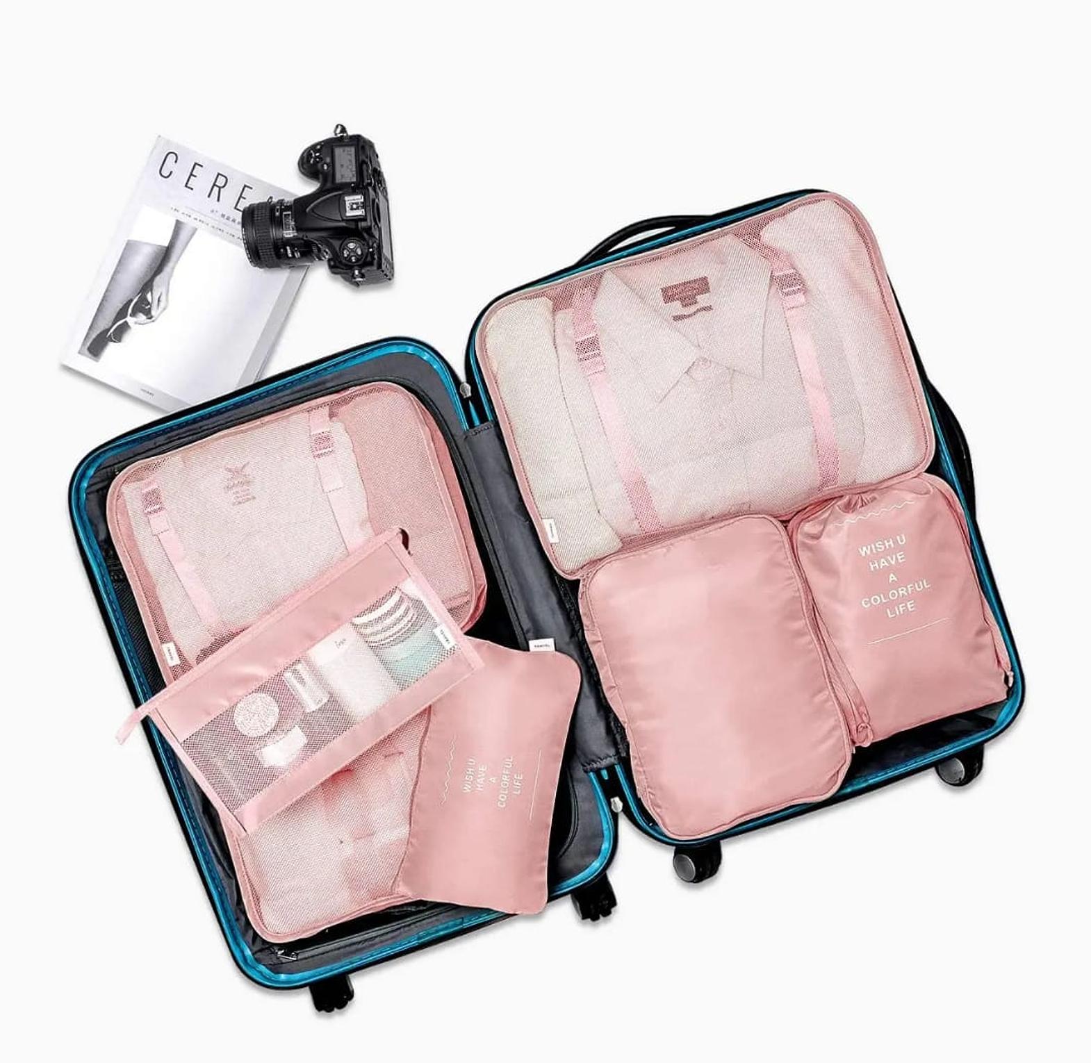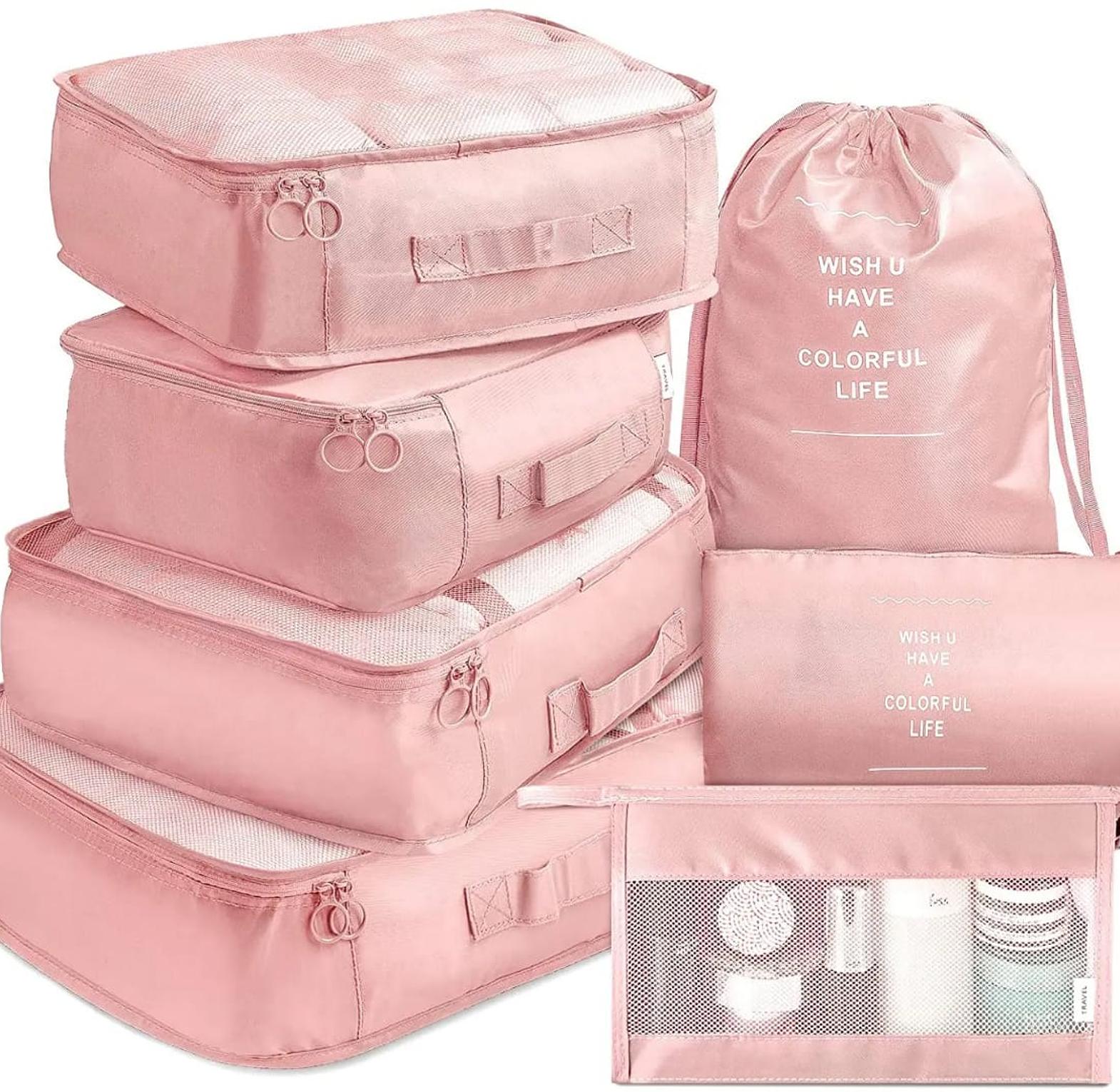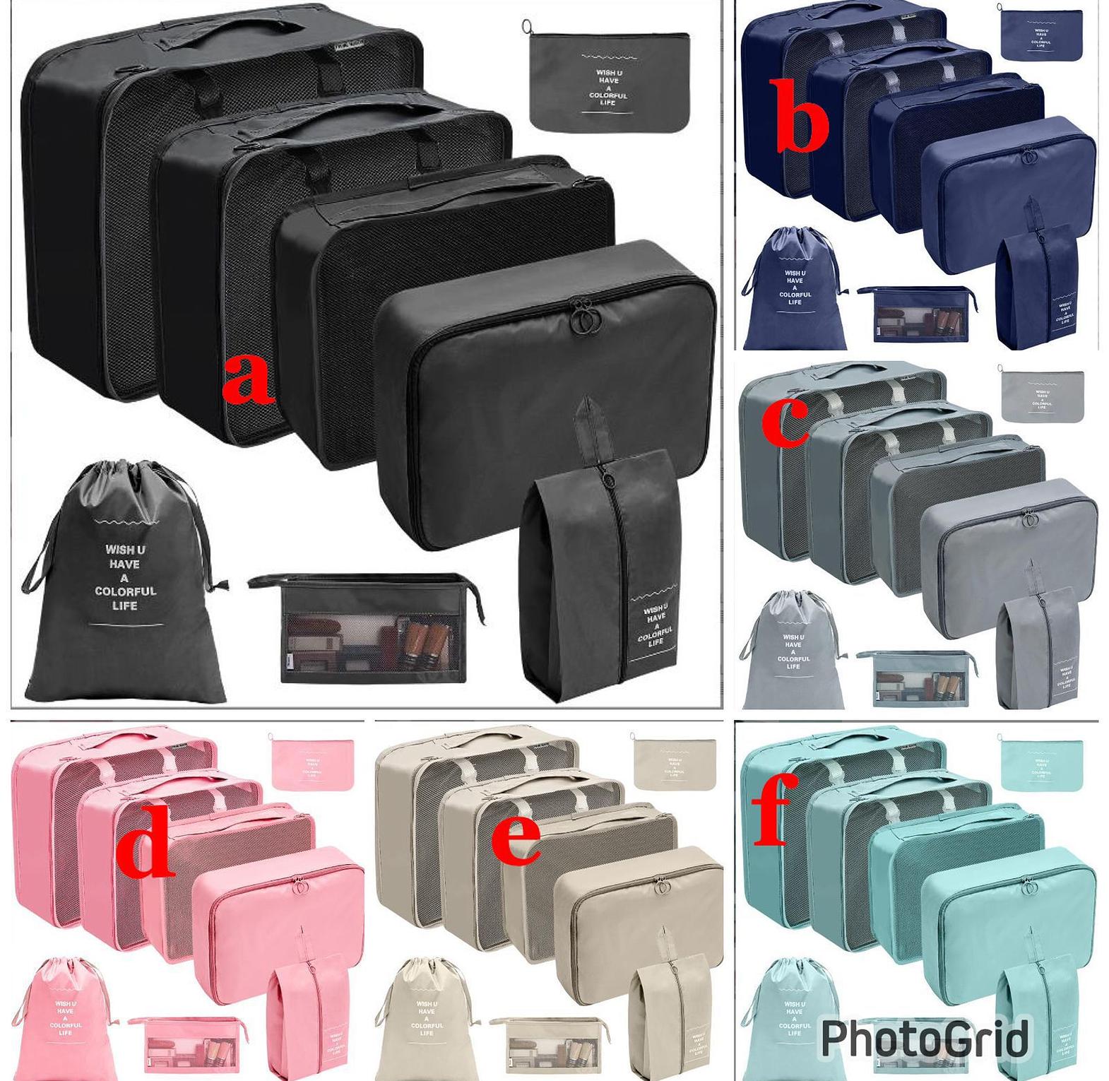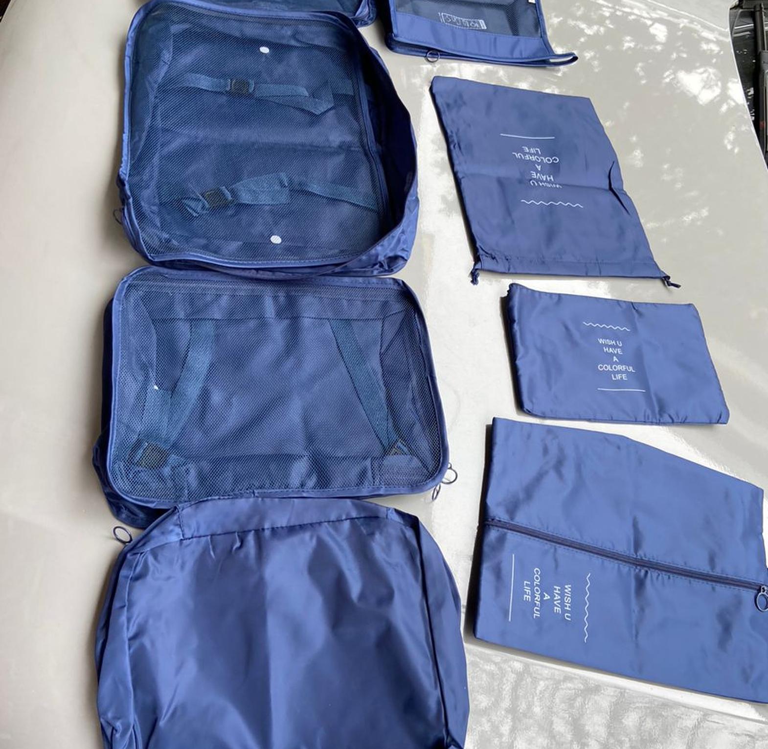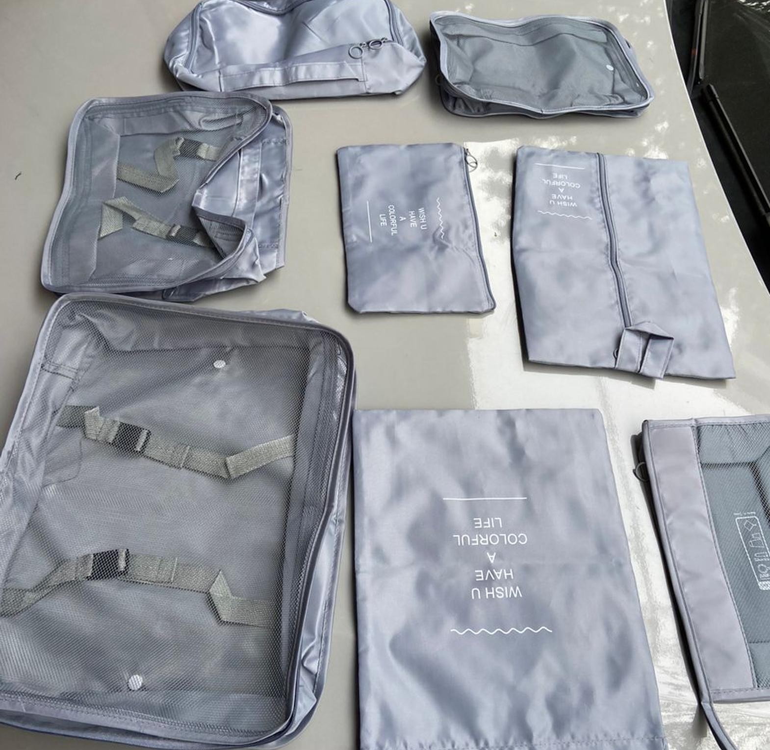 8pcs Luggage Travel Organizers For Suitcase With Toiletry Case -8-pc set includes: 1 Large & 2 Medium Cubes, 2 Small Cubes, 2 Accessory Bags, 1 Laundry/Shoe Bag -Practical and Beautiful -Speed up packing and classify your goods. -Made of Oxford material with breathable mesh -Heavy duty design with double zips makes it easy to open and close