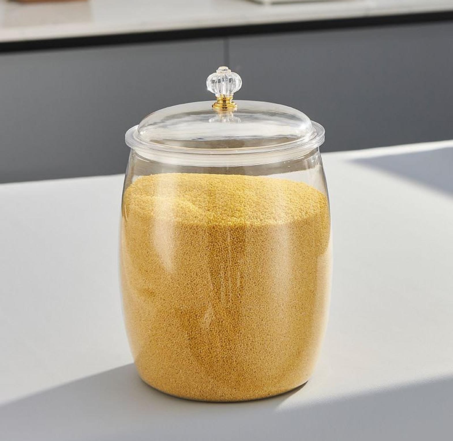 Perfect for storing and preserving a variety of ingredients including cereal, candy, biscuits, beans, candy, flours, tea leaves, nuts, grains, rice, sugar, coffee, herbs, etc. 【Stylish design glass jarThis candy jar has a contemporary design with a visible display. Get your kitchen organized and make storing conveniently and looks great on your counter, party, bathroom vanity, dresser, a beautiful complement to house decorating.