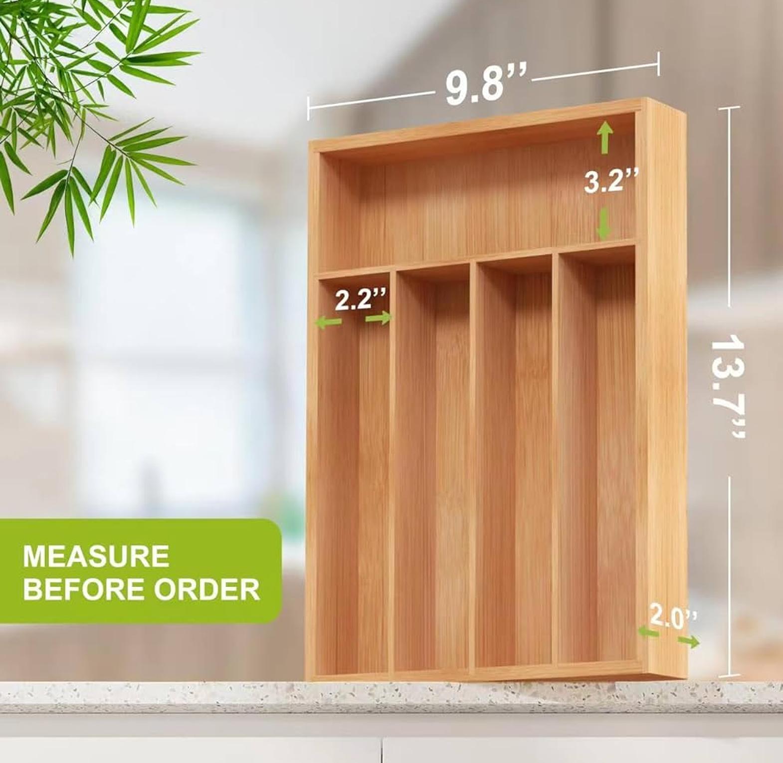 Fixed size 33x24x4cm dining 5 slot bamboo cutlery organizer