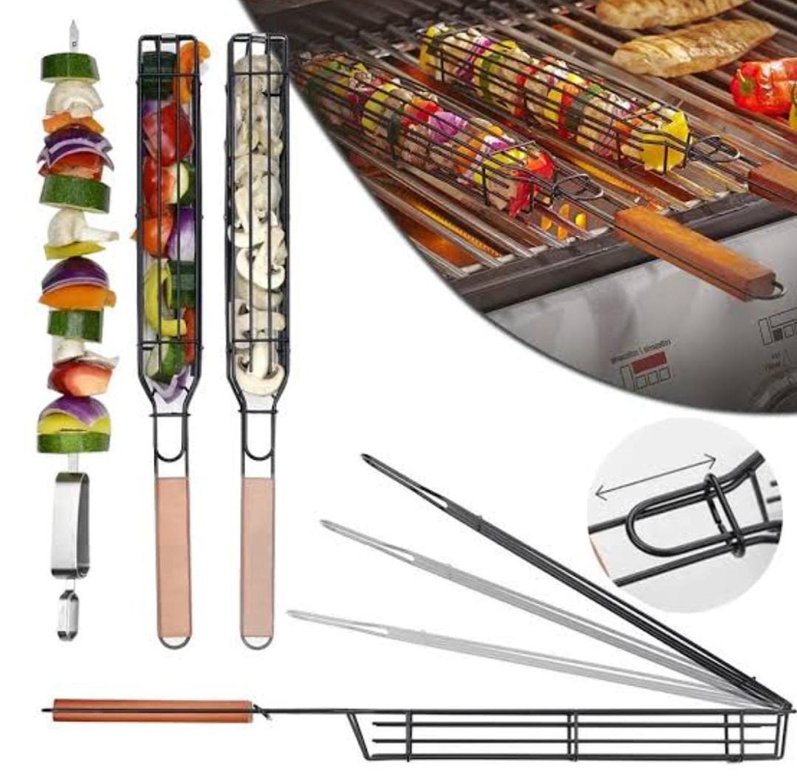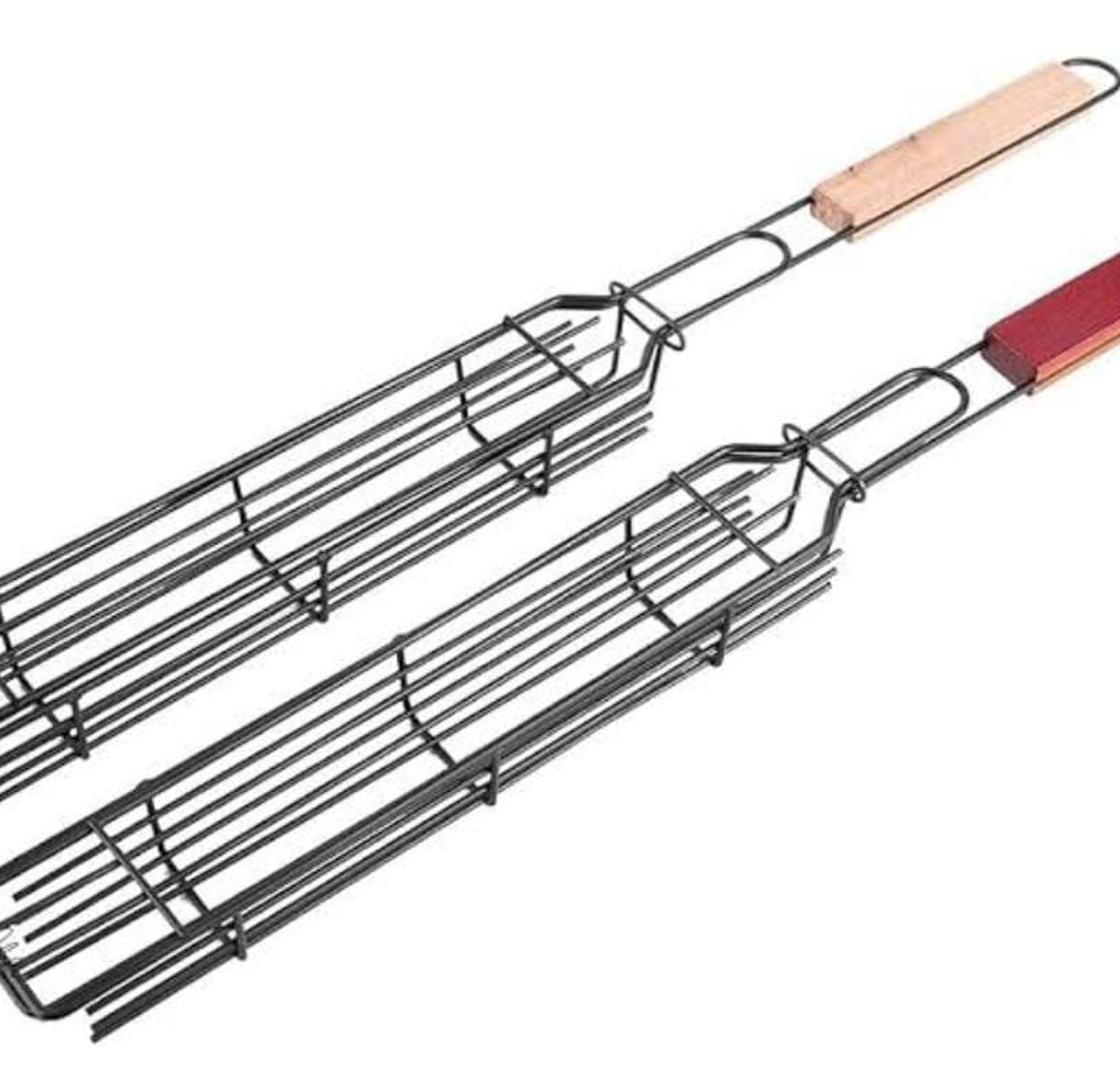 Barbecue wooden handle durable high quality reusable strong stainless rack ✅grill your meat anywhere