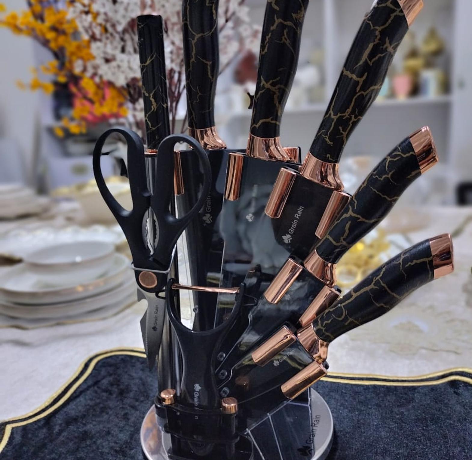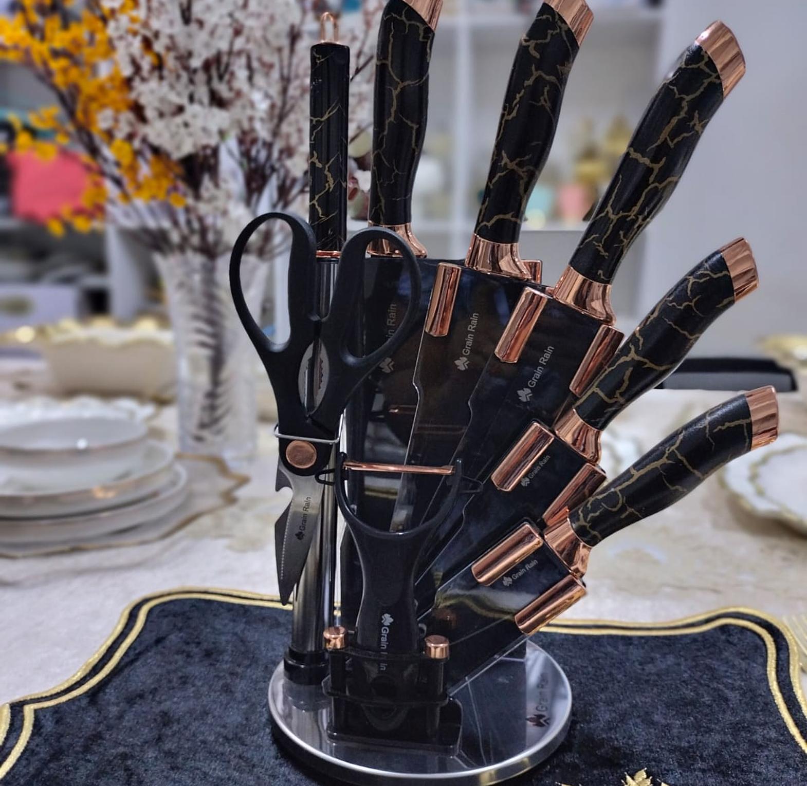9 Piece Knife Set with MAGNETIC Stand for Perfect and Classy use. Excellent For amateur and professional cooks due to its state of the art quality and design Its high quality stainless steel blades were made to slice through everyday fruits, vegetables, and meats with ease 9-Piece Knife Set's beautiful design and great functionality will make you wish you had them in your house all along