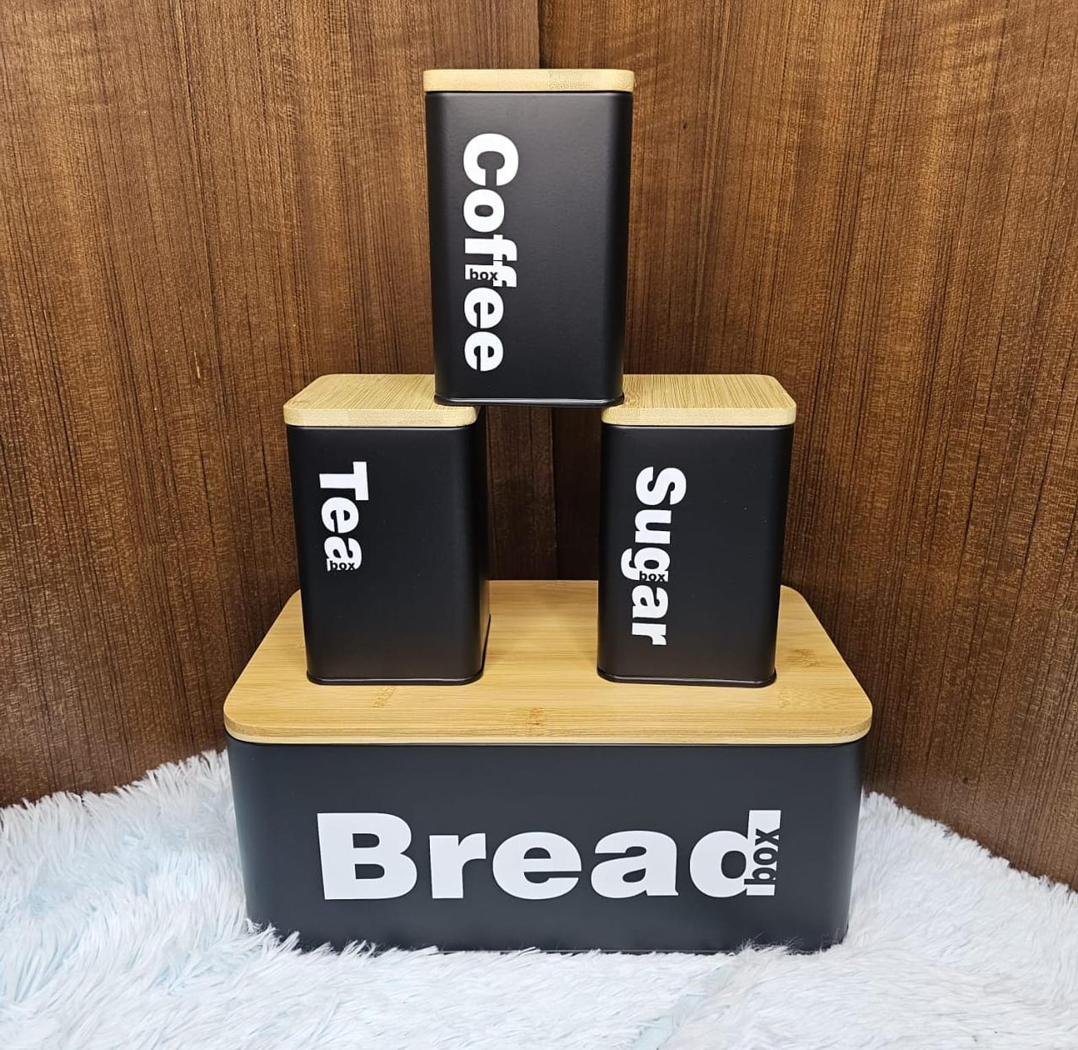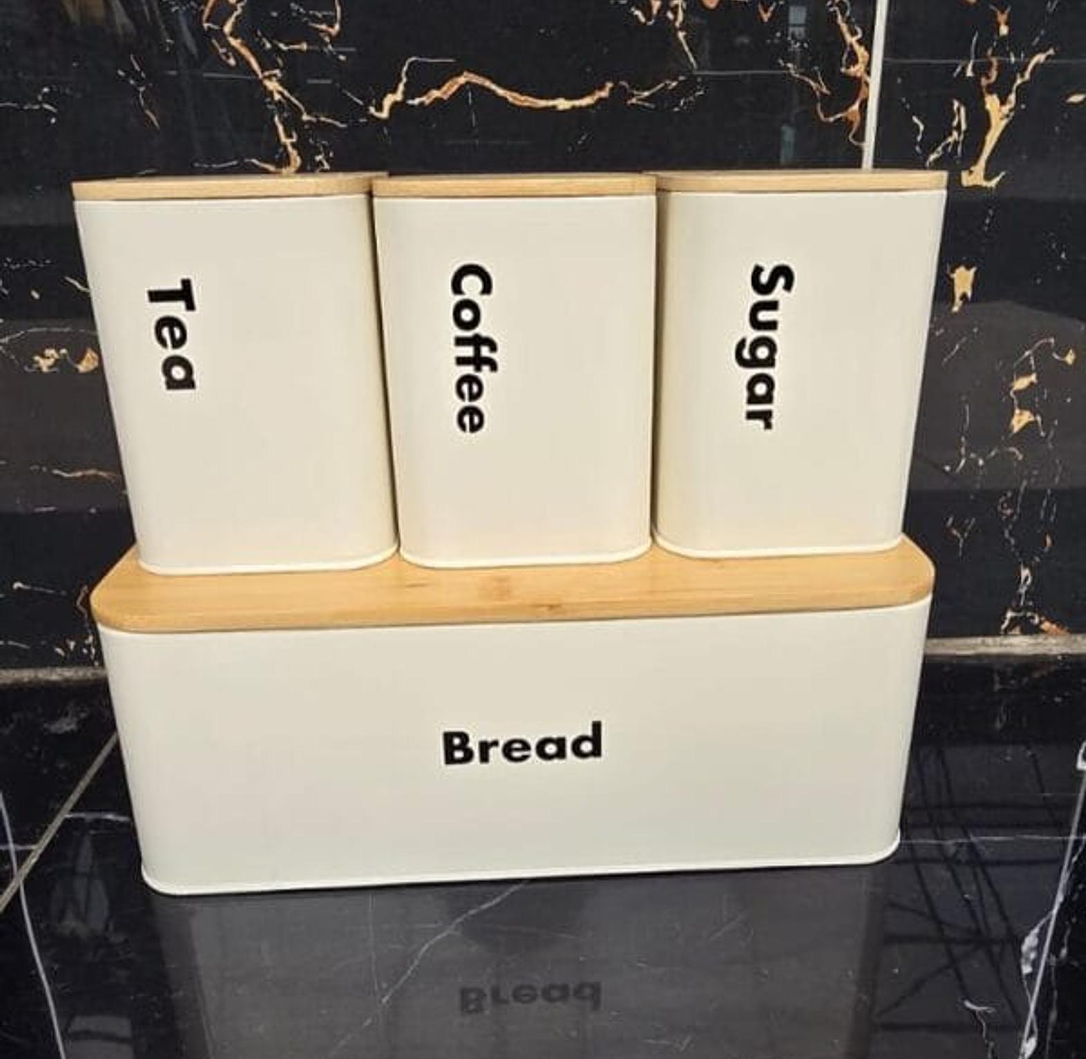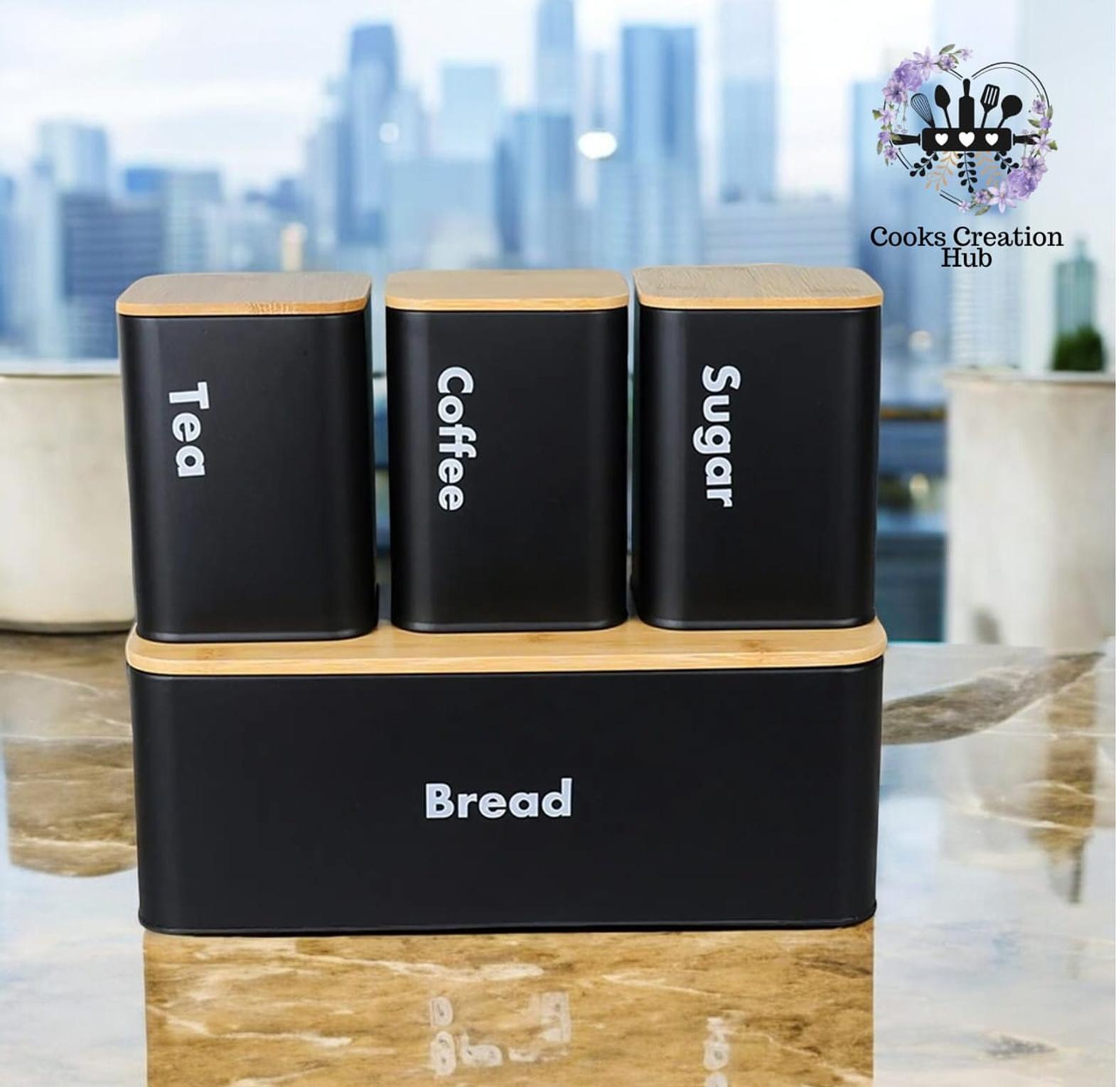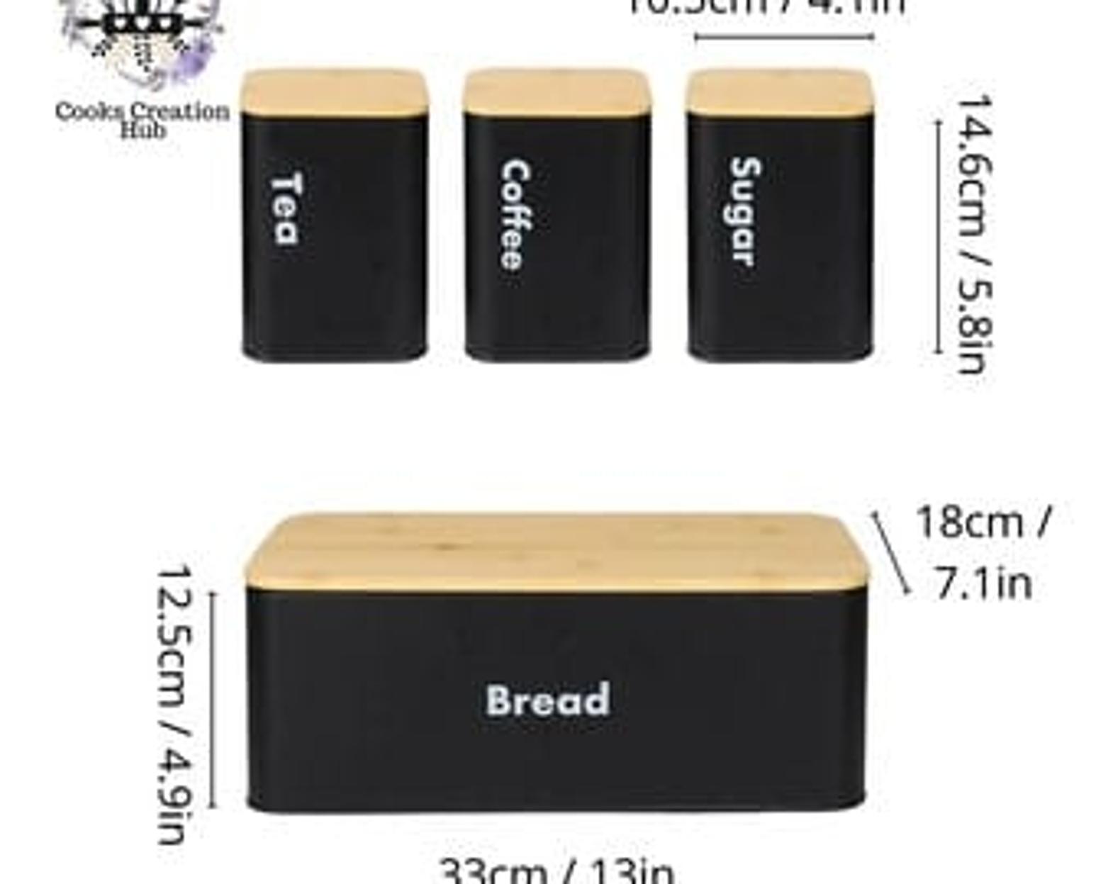 33x18x13cm bread bin plus 3x1300ml canisters with bamboo lids now available in Cream and black