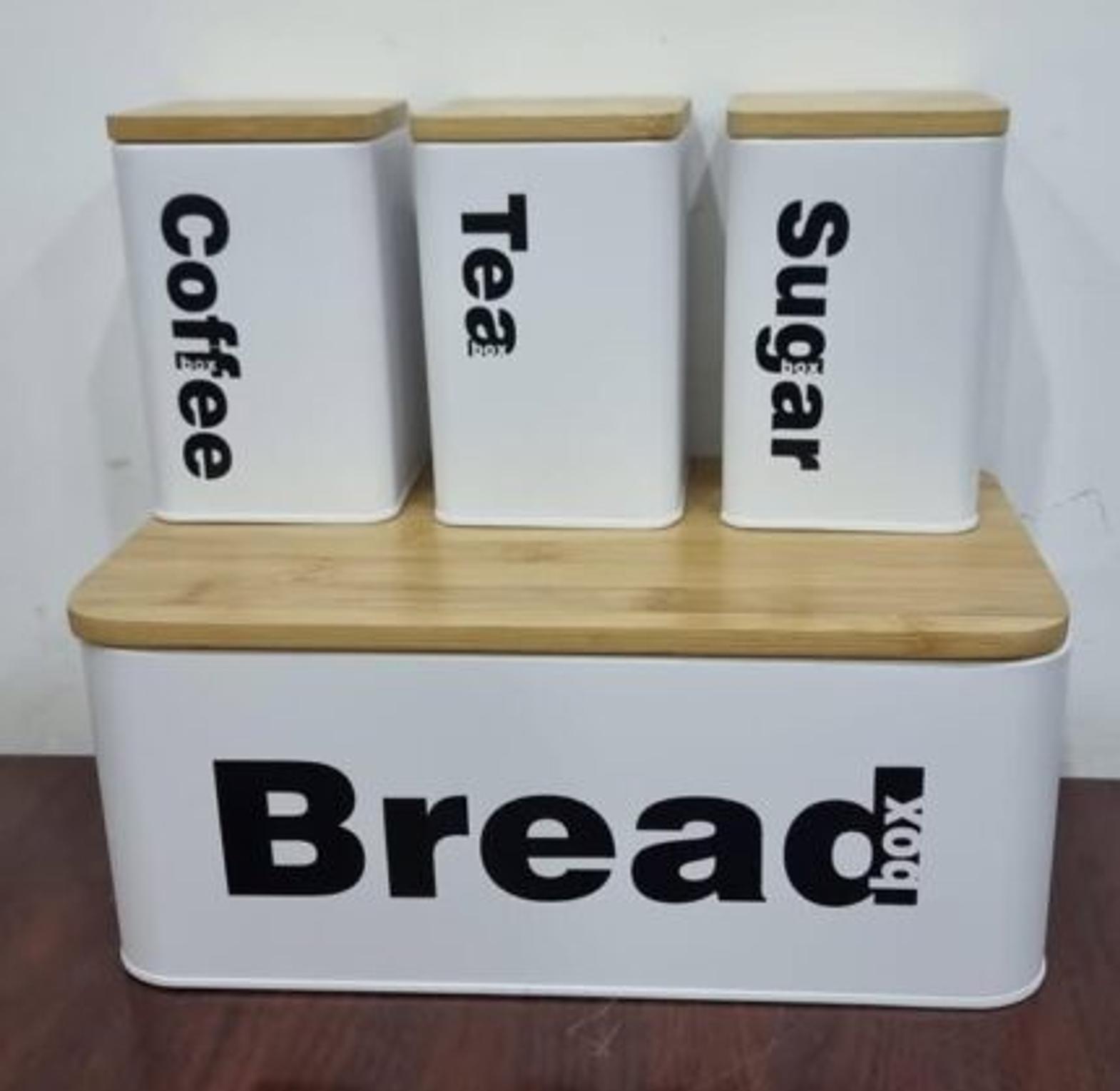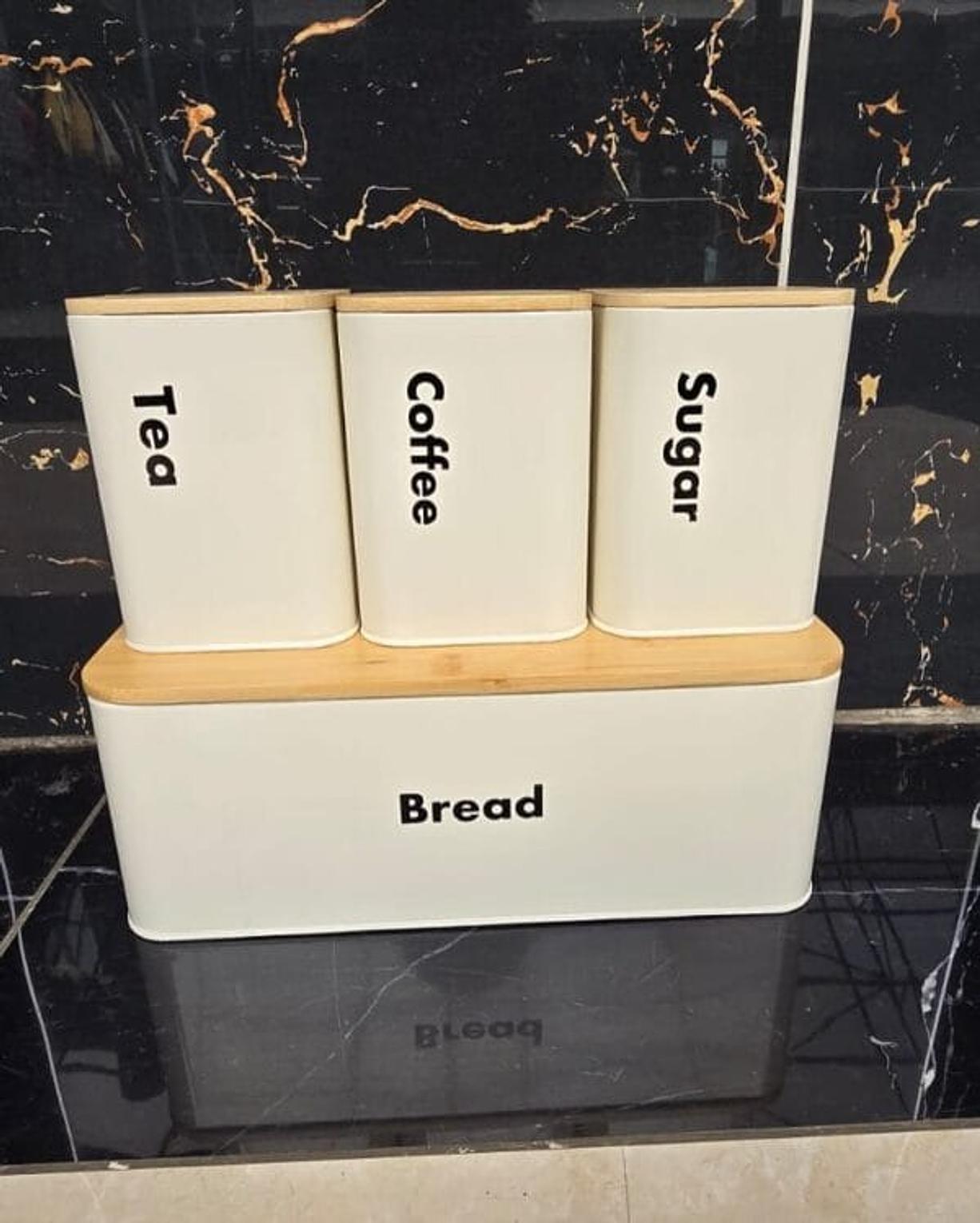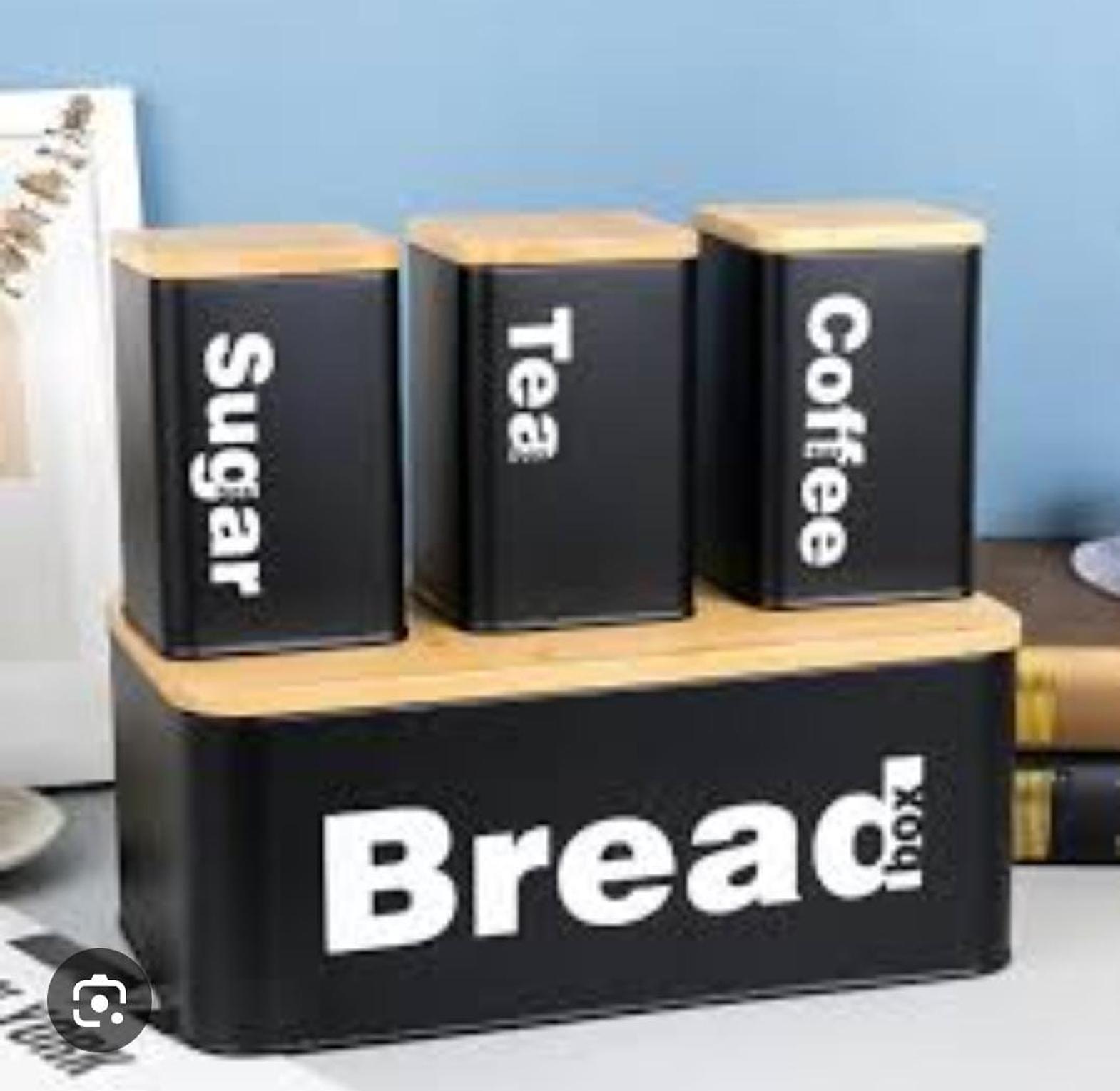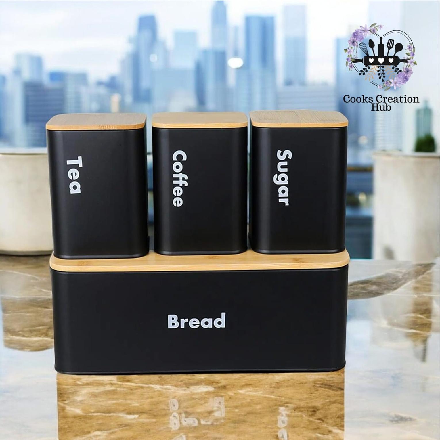 33x18x13cm bread bin plus 3x1300ml canisters with bamboo lids now available in Cream and black
