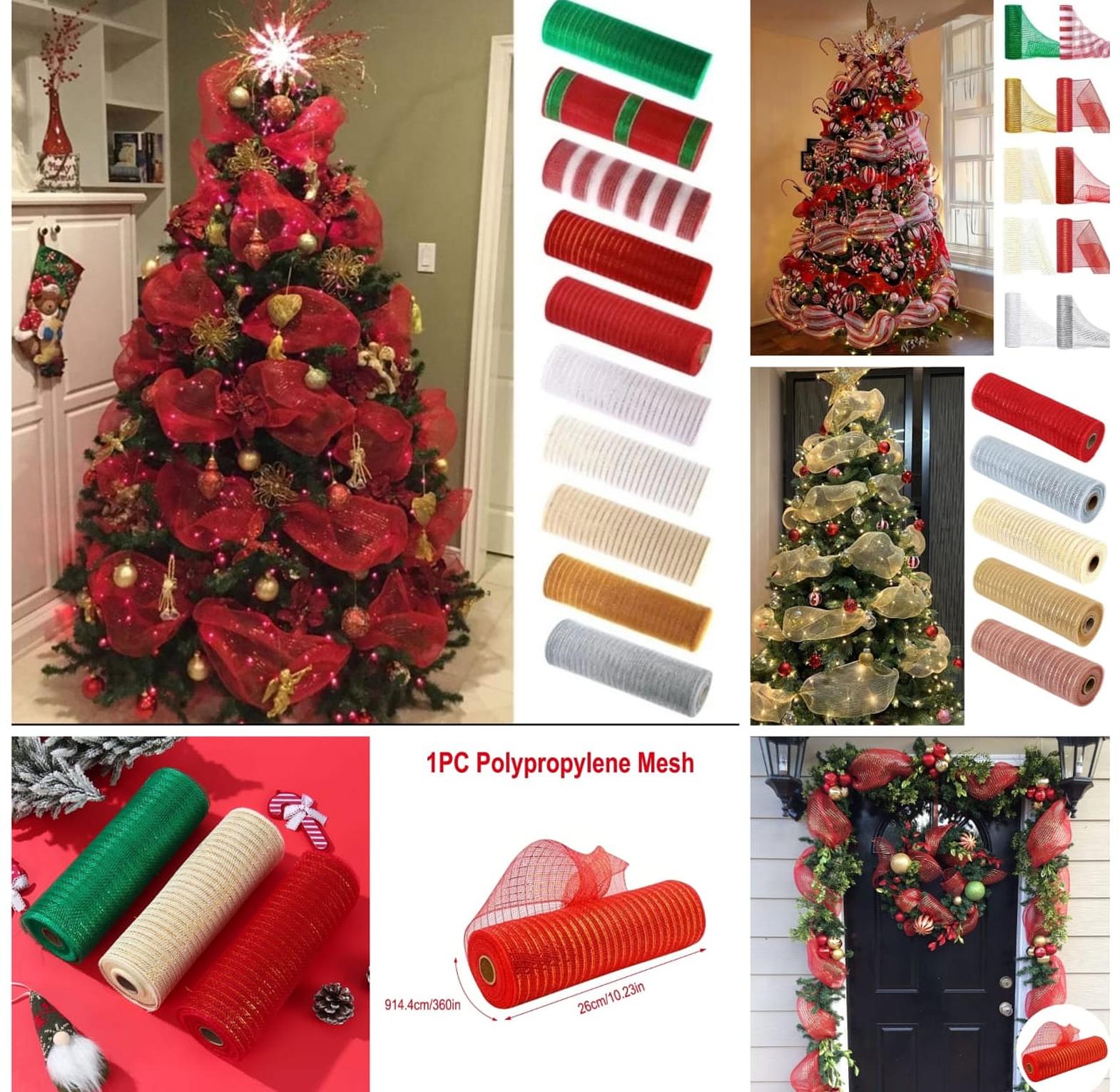 Christmas Ribbon Tree Decoration Mesh Tulle Roll Fabric Size 9.1m by 26cms ✅available in red and gold shades ✅Instruction on how to fold attached