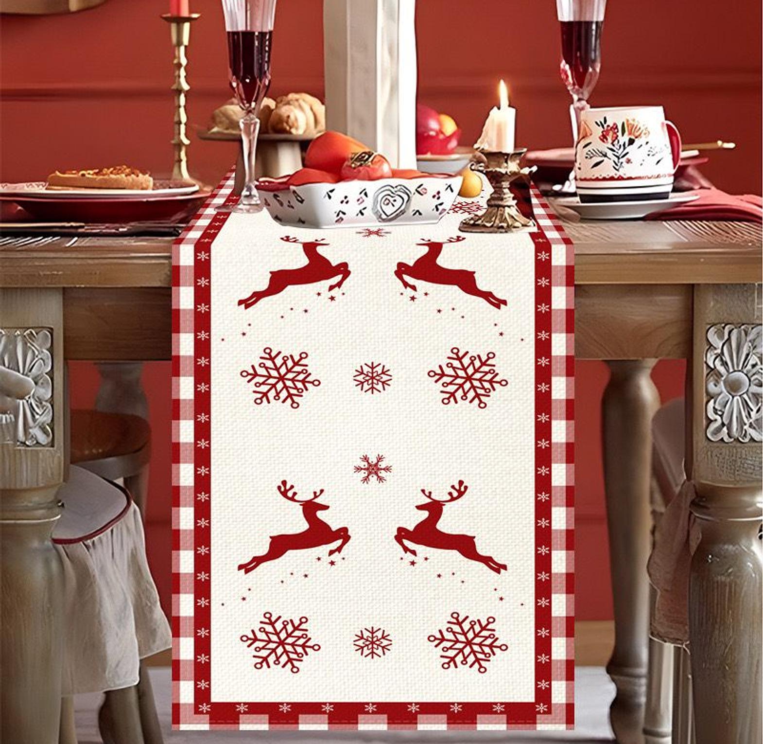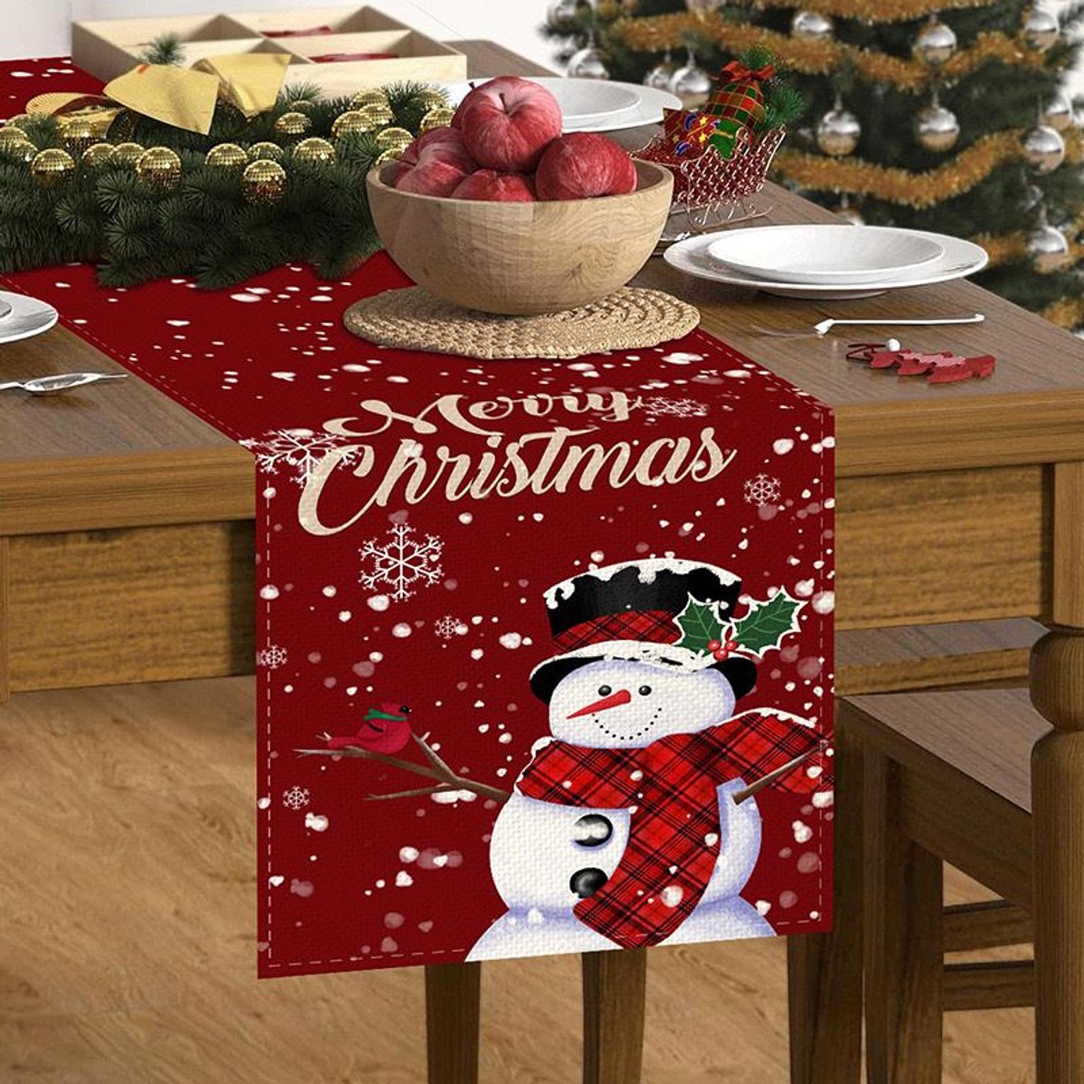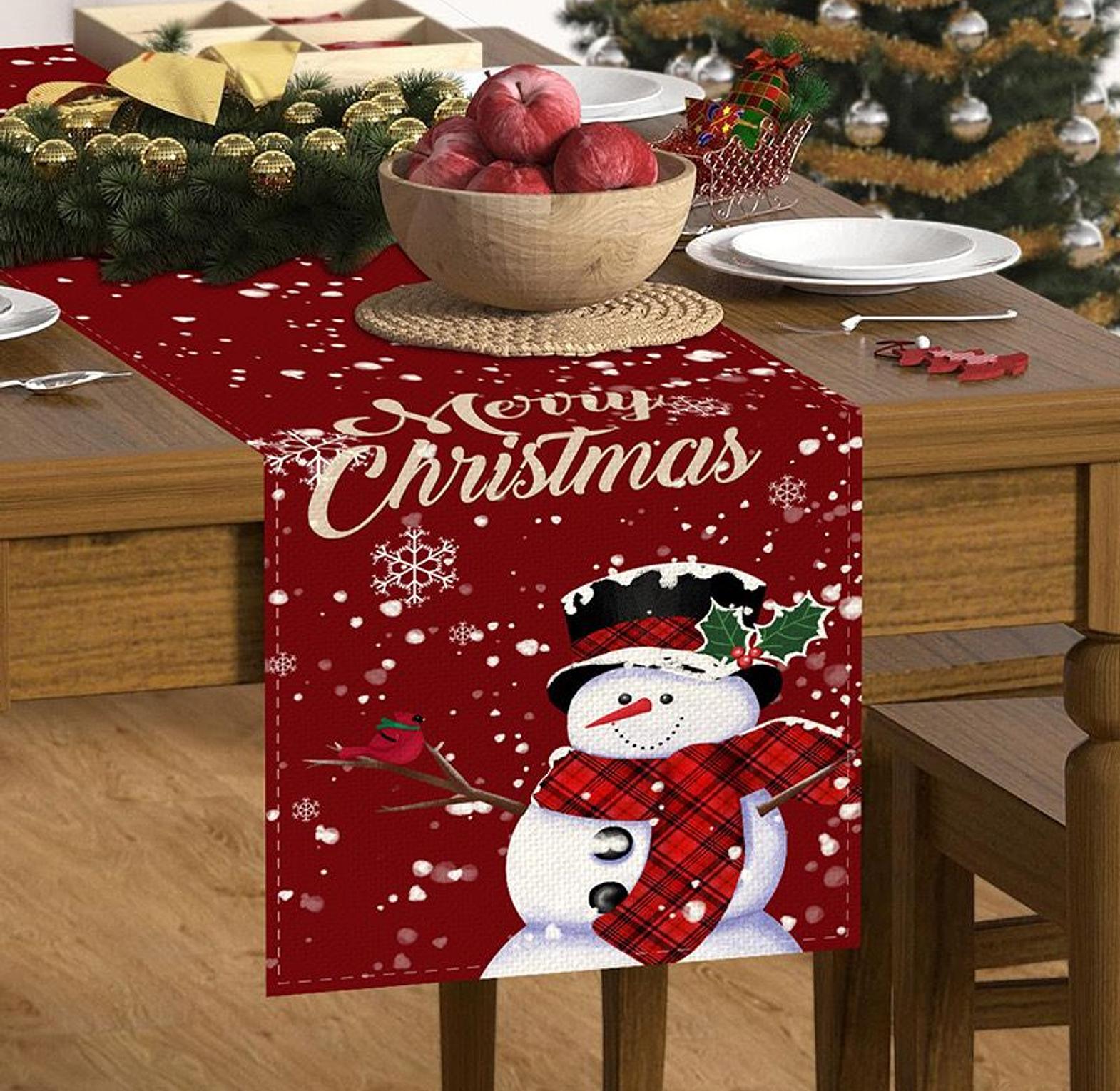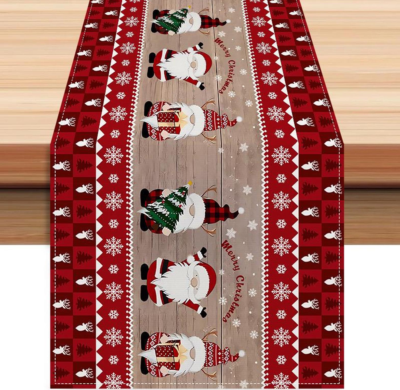 ✅Size 33*200cms ✅Christmas Table Runner Snowman Gnome Table Cloths Linen Table Runners Kitchen Dining Table Runners for Home Dining Party Decor