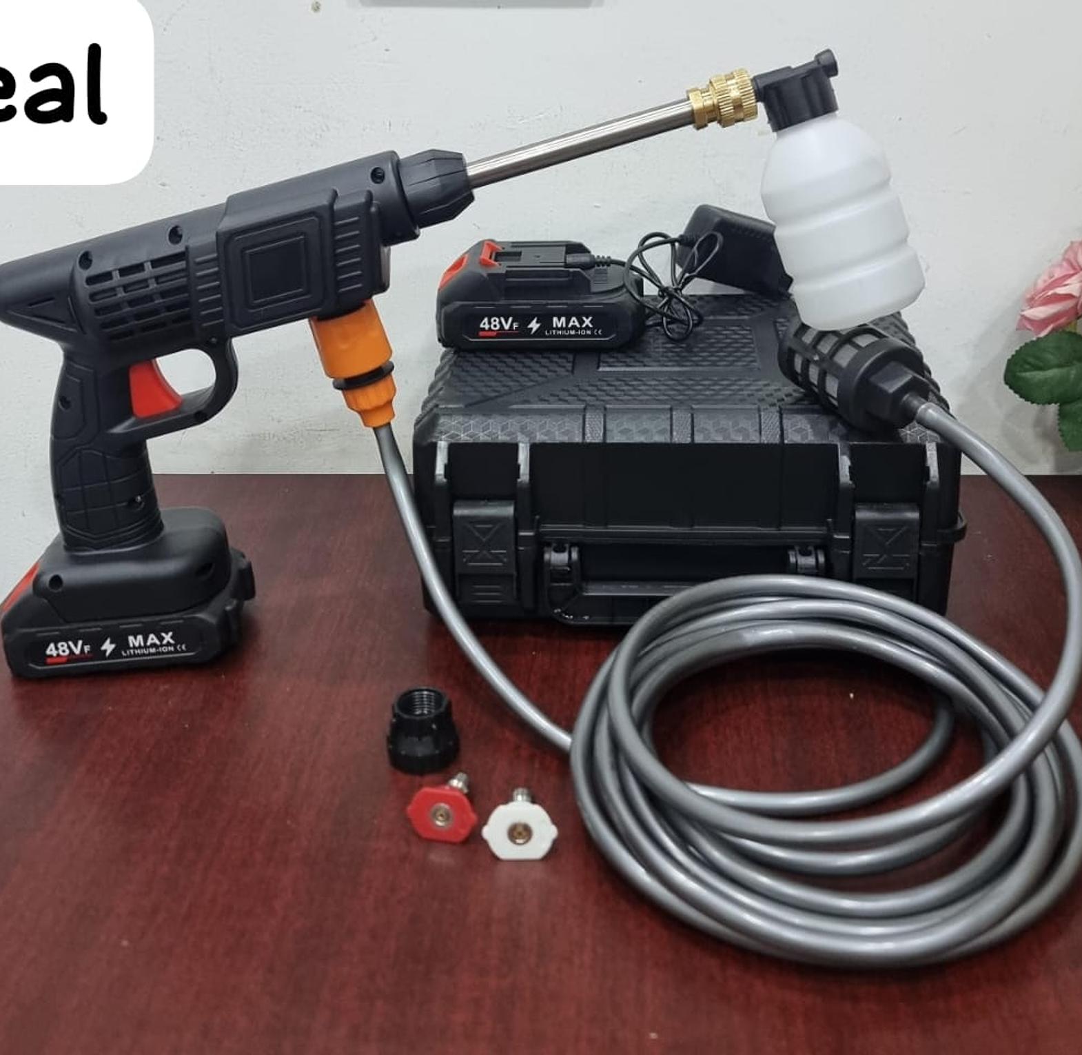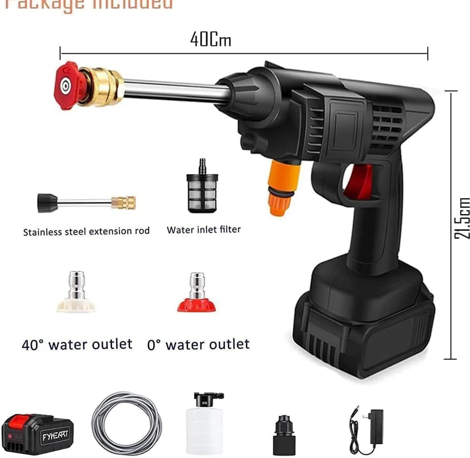 - Our cordless pressure washer is lightweight, wireless, easy to assemble, disassemble and carry. You can use it anytime, anywhere. No need to worry about water supply, because it can take water from taps, rivers, buckets and even water bottles. You can take it to the garden, vegetable garden or outdoors.