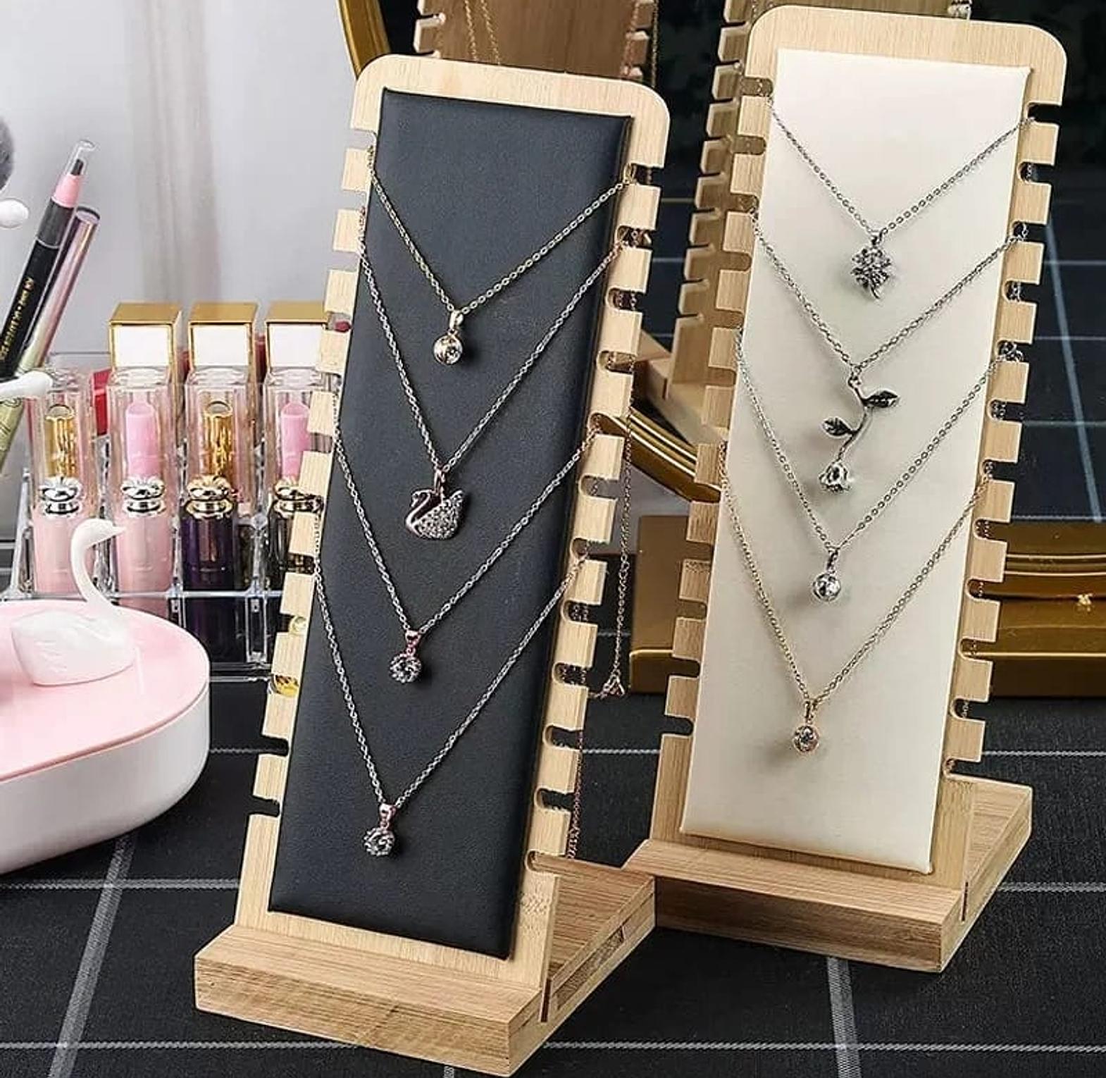 Creative Bamboo Wooden Necklace Frame* ▫️Keeps your neckless tidy & tangle free ▫️Perfect for your dressing table ▫️Size: 27cm height ▫️Colour: black ,cream white