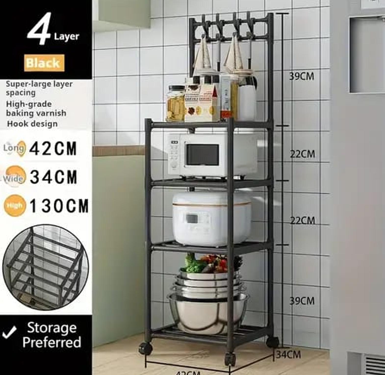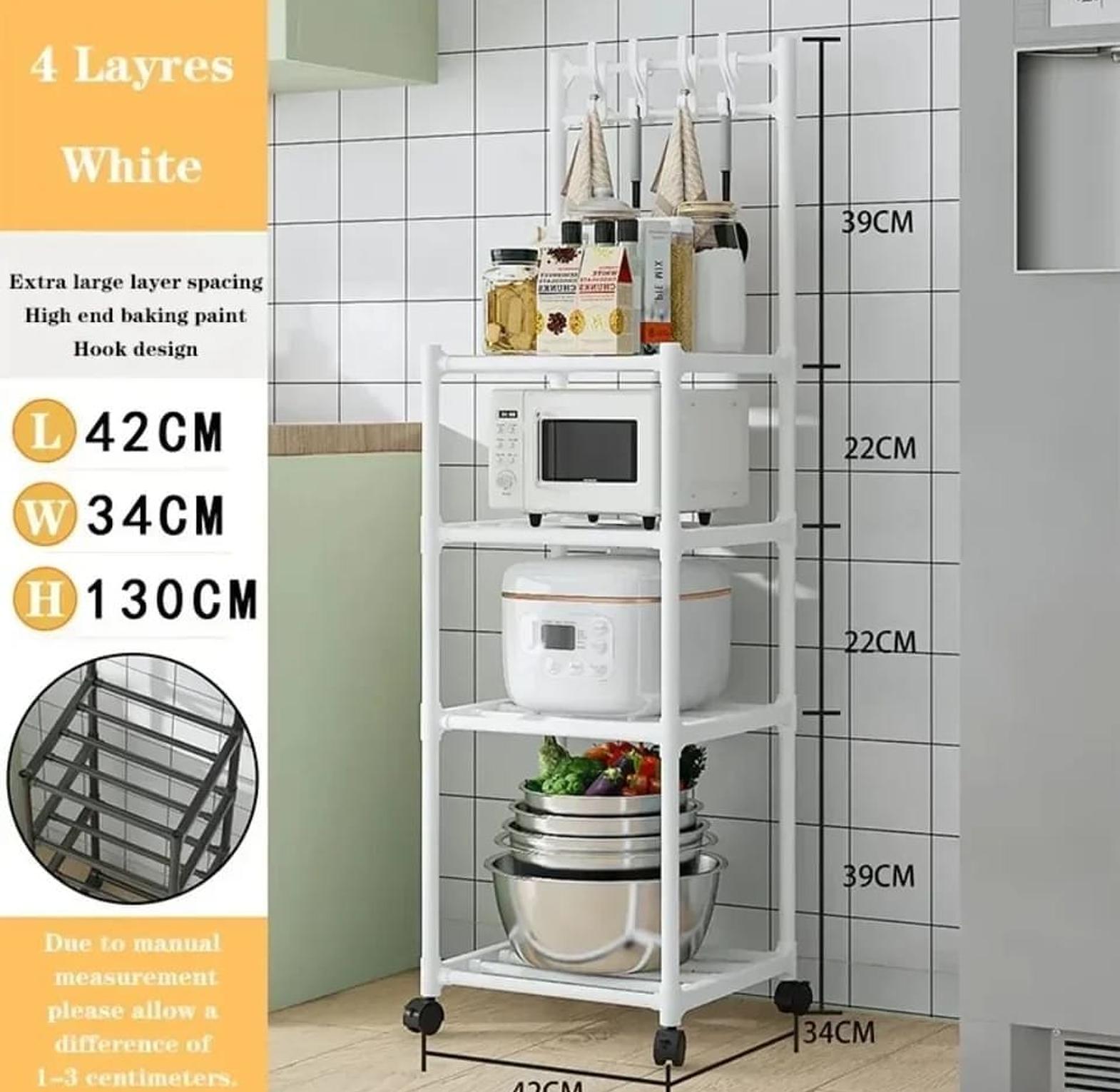 Detachable 4 layer trolley 4 hook storage rack now available in black or white