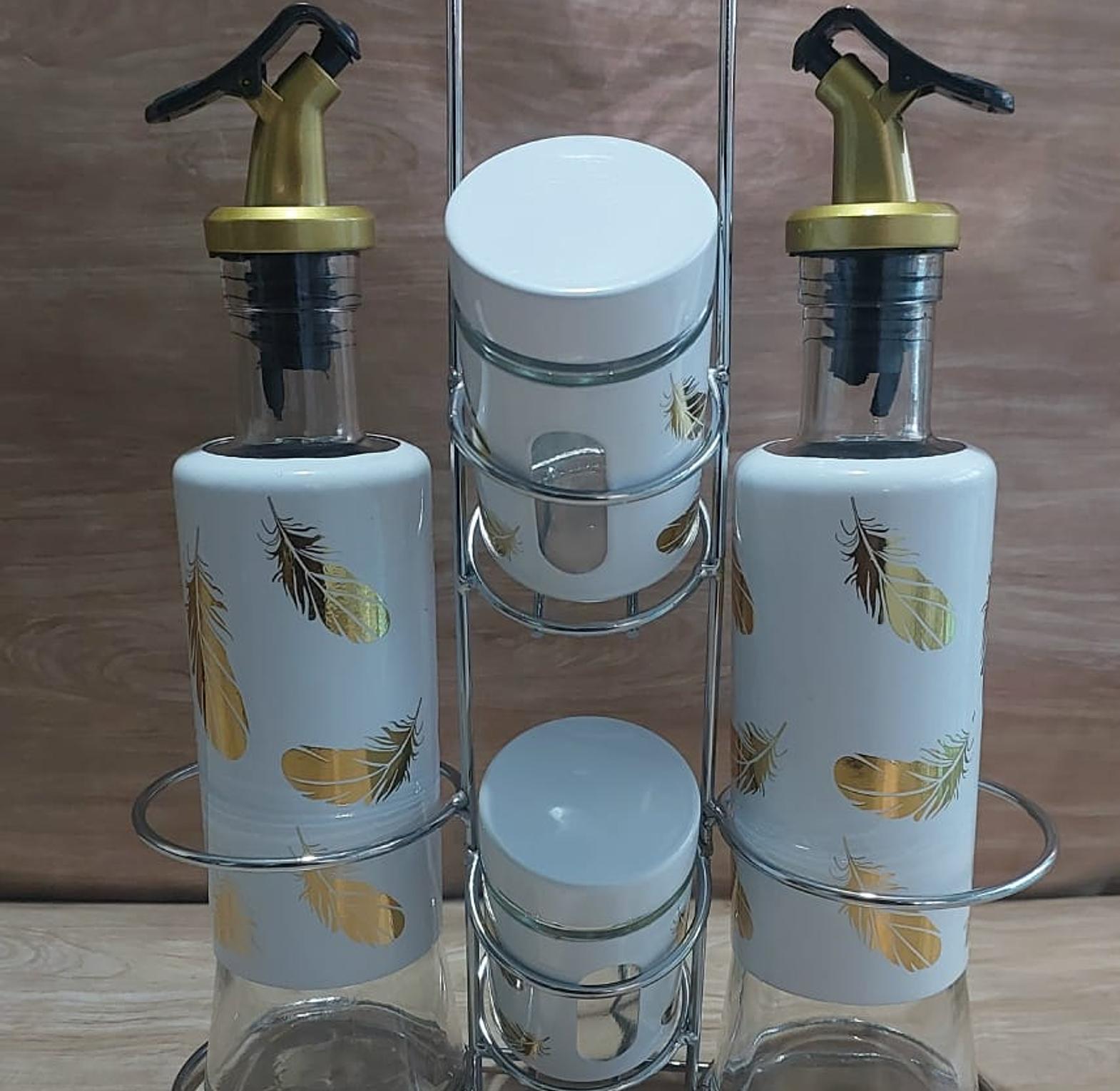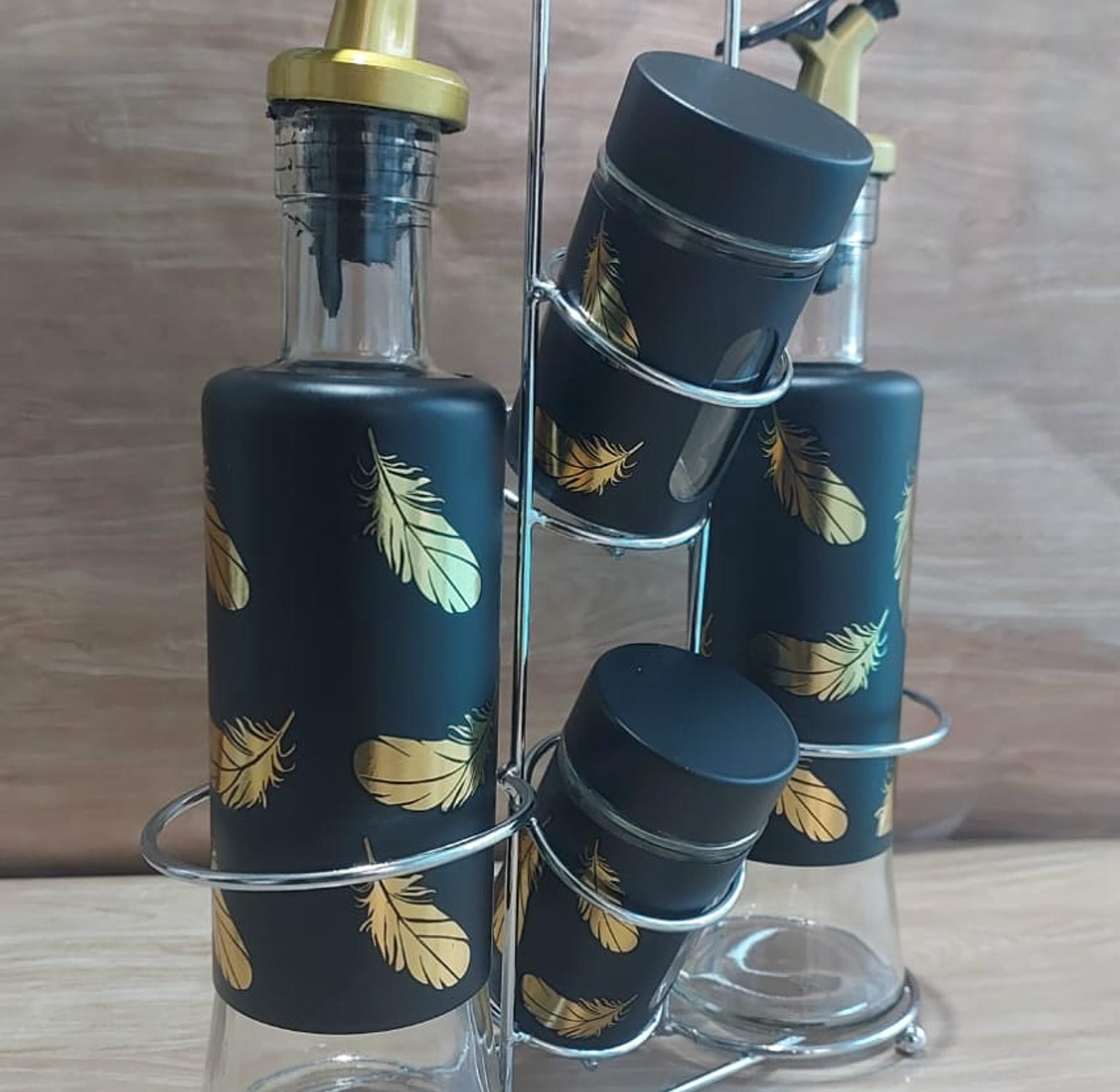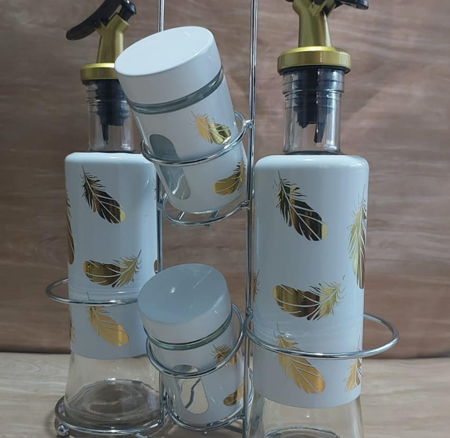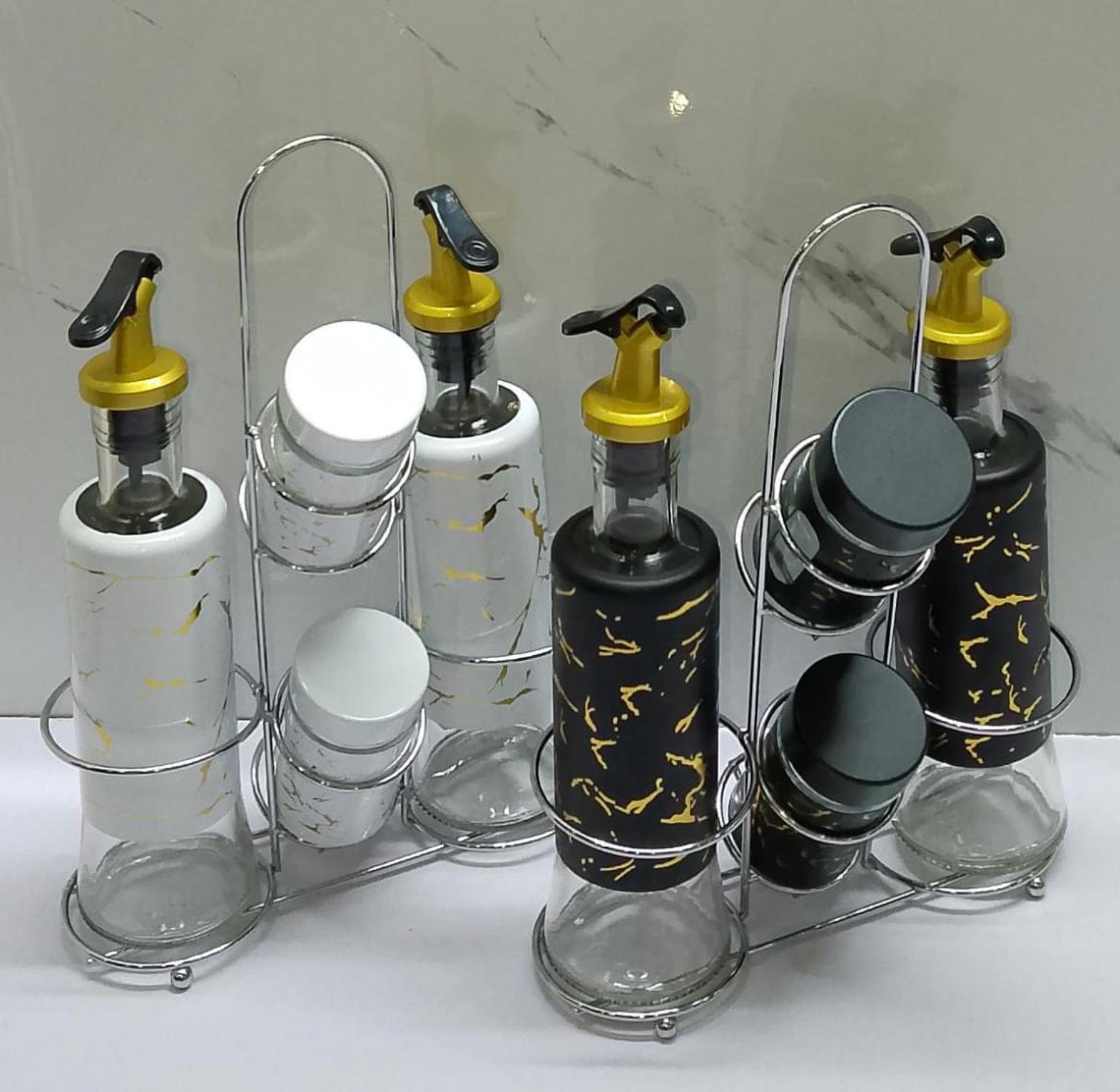 New arrivals🔥🔥🔥 Elegant 5in1 seasoning set now available each set 2oil dispenser,2 salt shakers +stand
