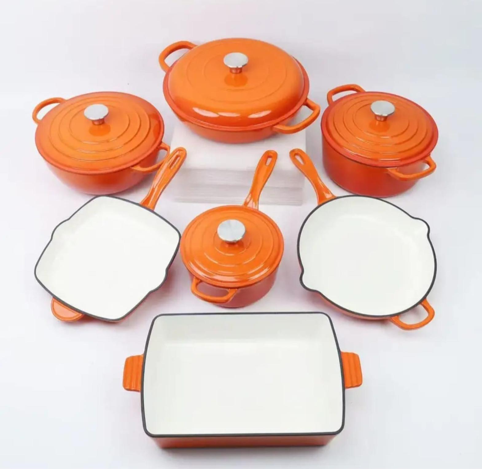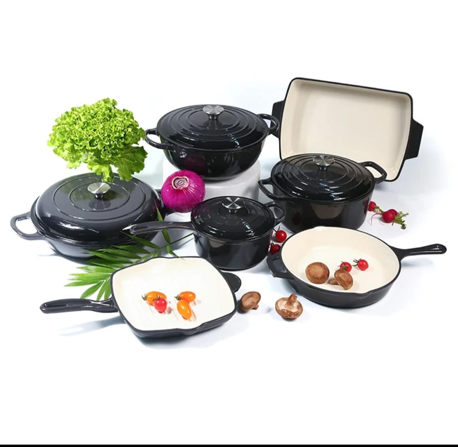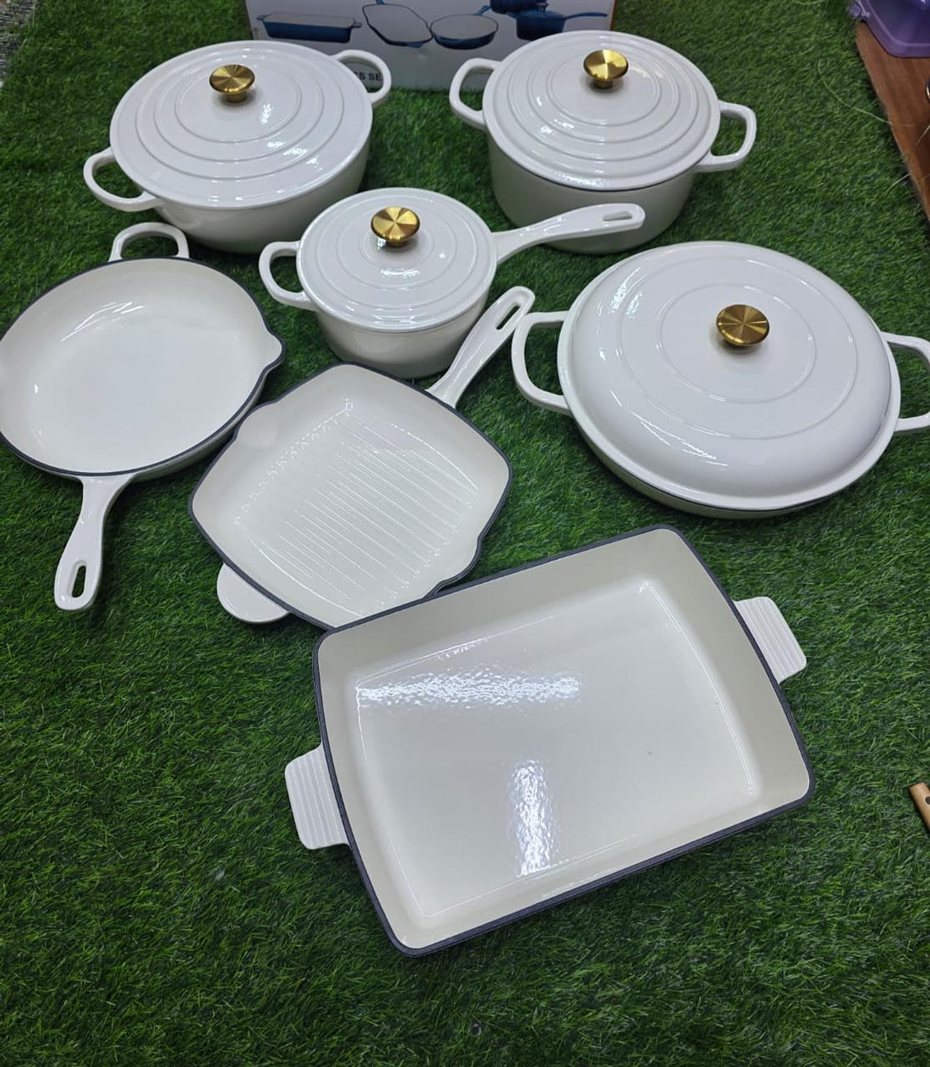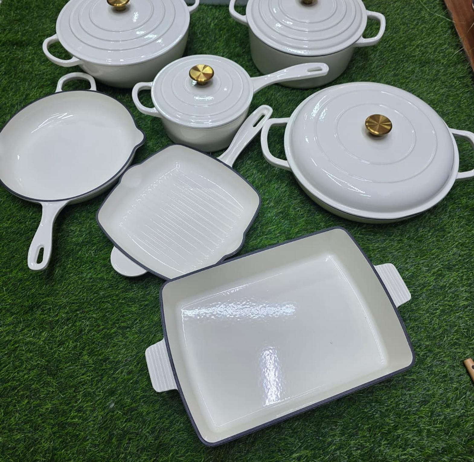 *Enamel Cast iron cooking pots* 🔼Heavy ,high quality and durable 🔼Can cook, bake and serve with Cast iron material 🔼 Colours available; White,orange,red,green and blue *Please Note : Grey and Teal is not available* CAPACITY; 🔼Casserole 19cm,24cm,26cm and 30cm 🔼Frying pan -- 25cm 🔼Grill pan -- 25cm 🔼Baking tray -- 32cm *🍒Best Quality in the market🍒*