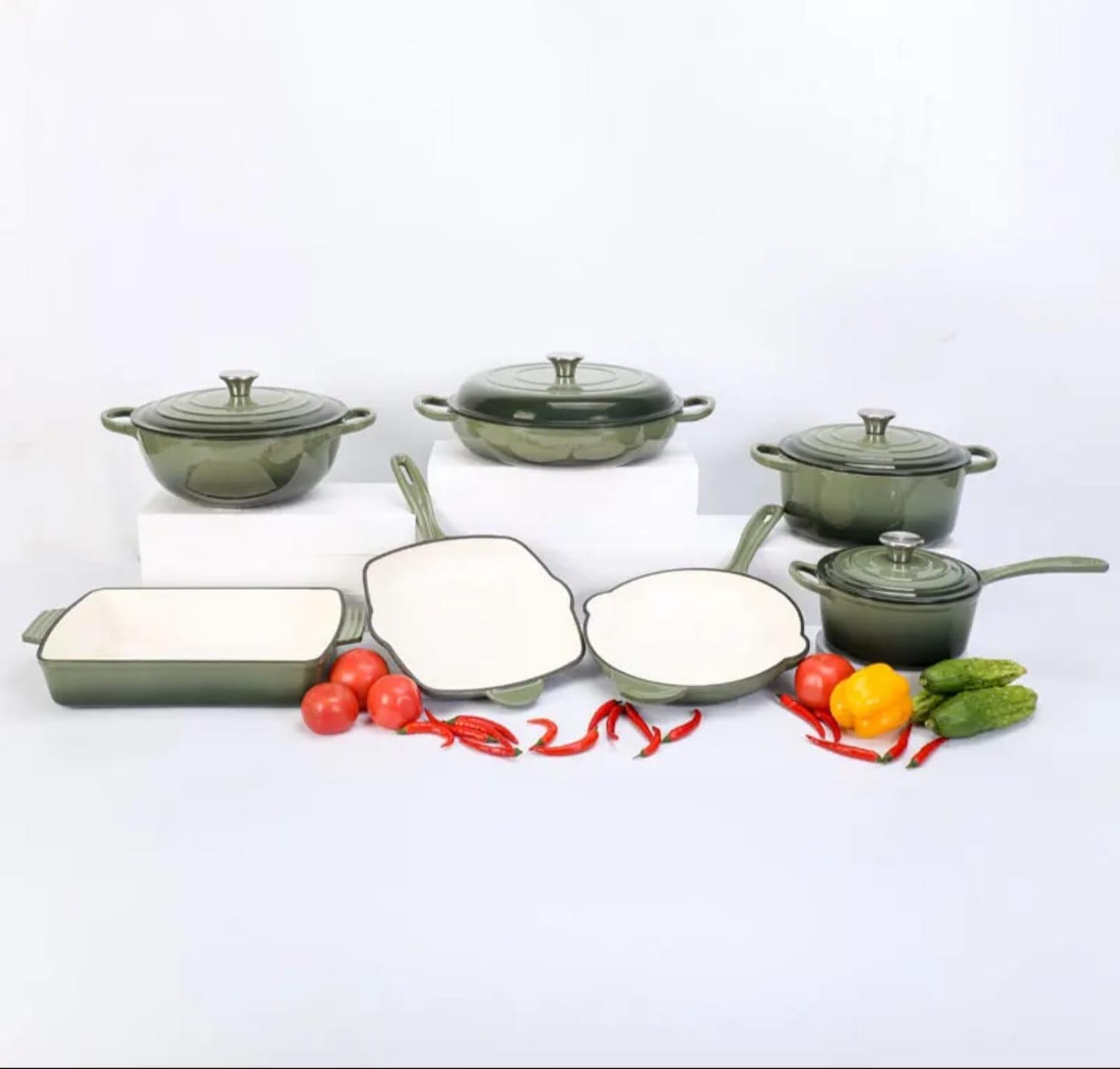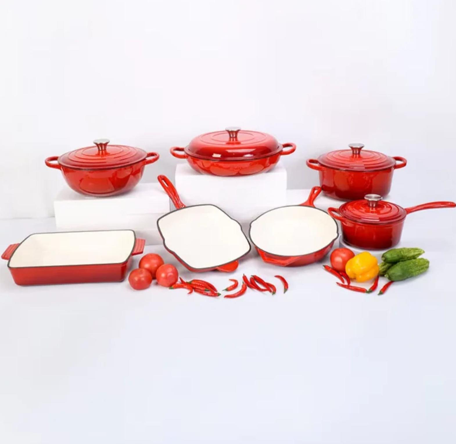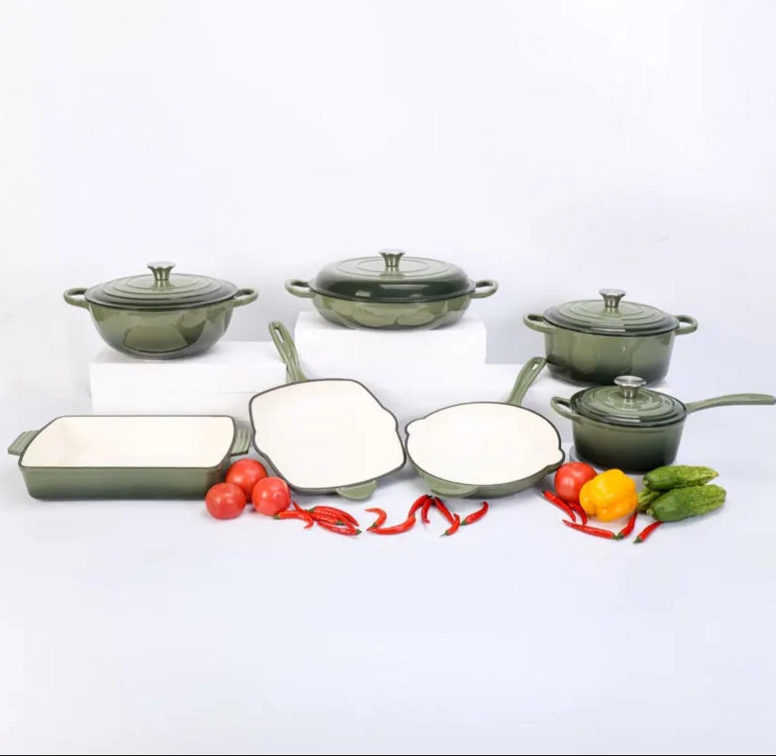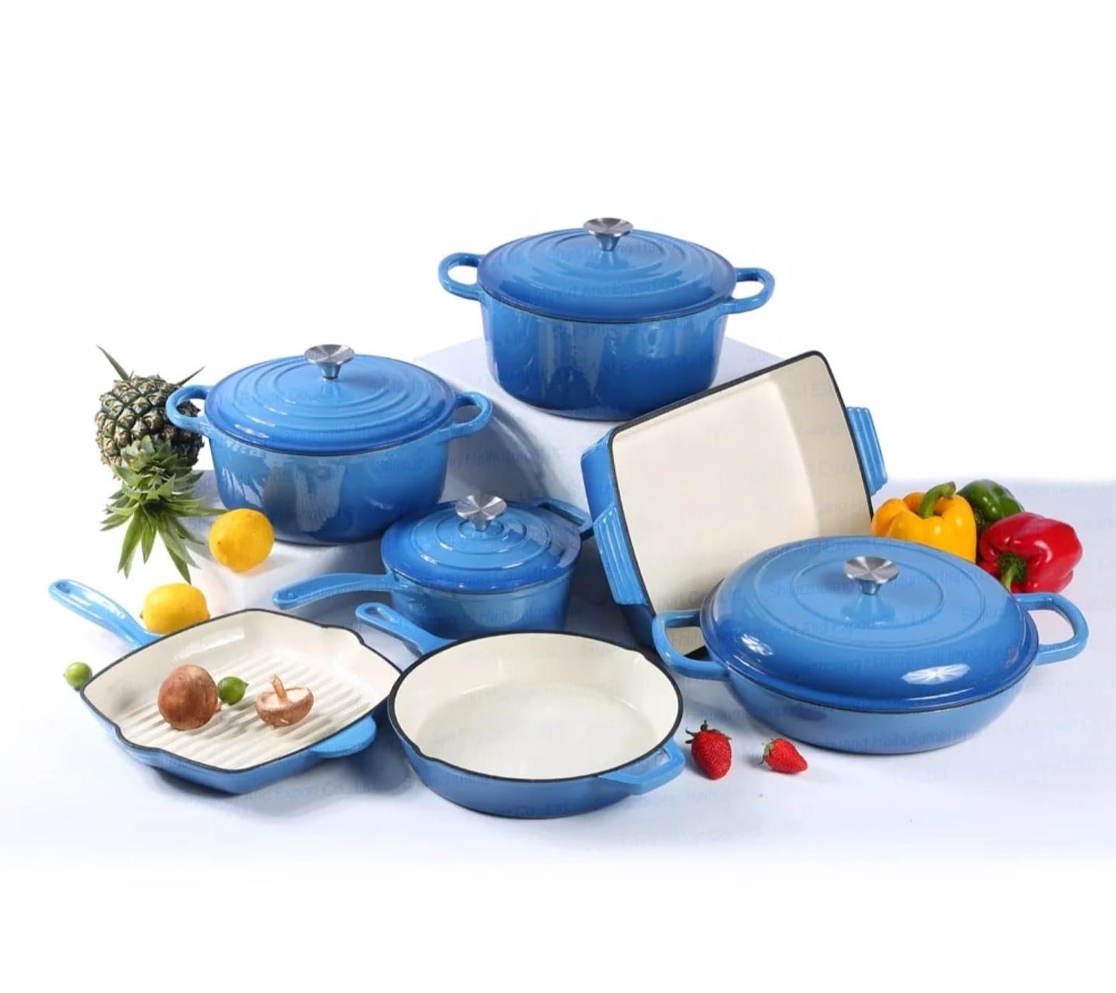 *Enamel Cast iron cooking pots* 🔼Heavy ,high quality and durable 🔼Can cook, bake and serve with Cast iron material 🔼 Colours available; White,orange,red,green and blue *Please Note : Grey and Teal is not available* CAPACITY; 🔼Casserole 19cm,24cm,26cm and 30cm 🔼Frying pan -- 25cm 🔼Grill pan -- 25cm 🔼Baking tray -- 32cm *🍒Best Quality in the market🍒*