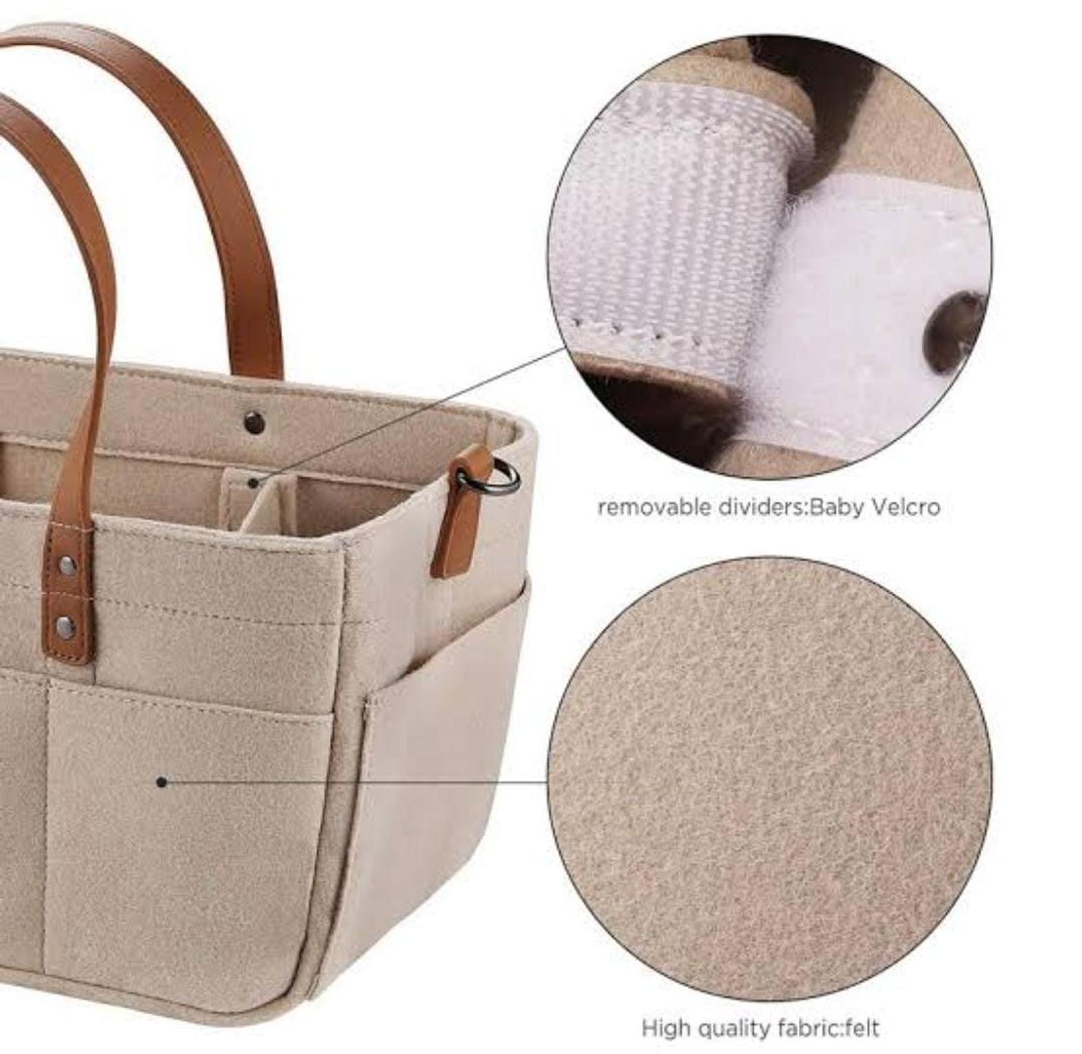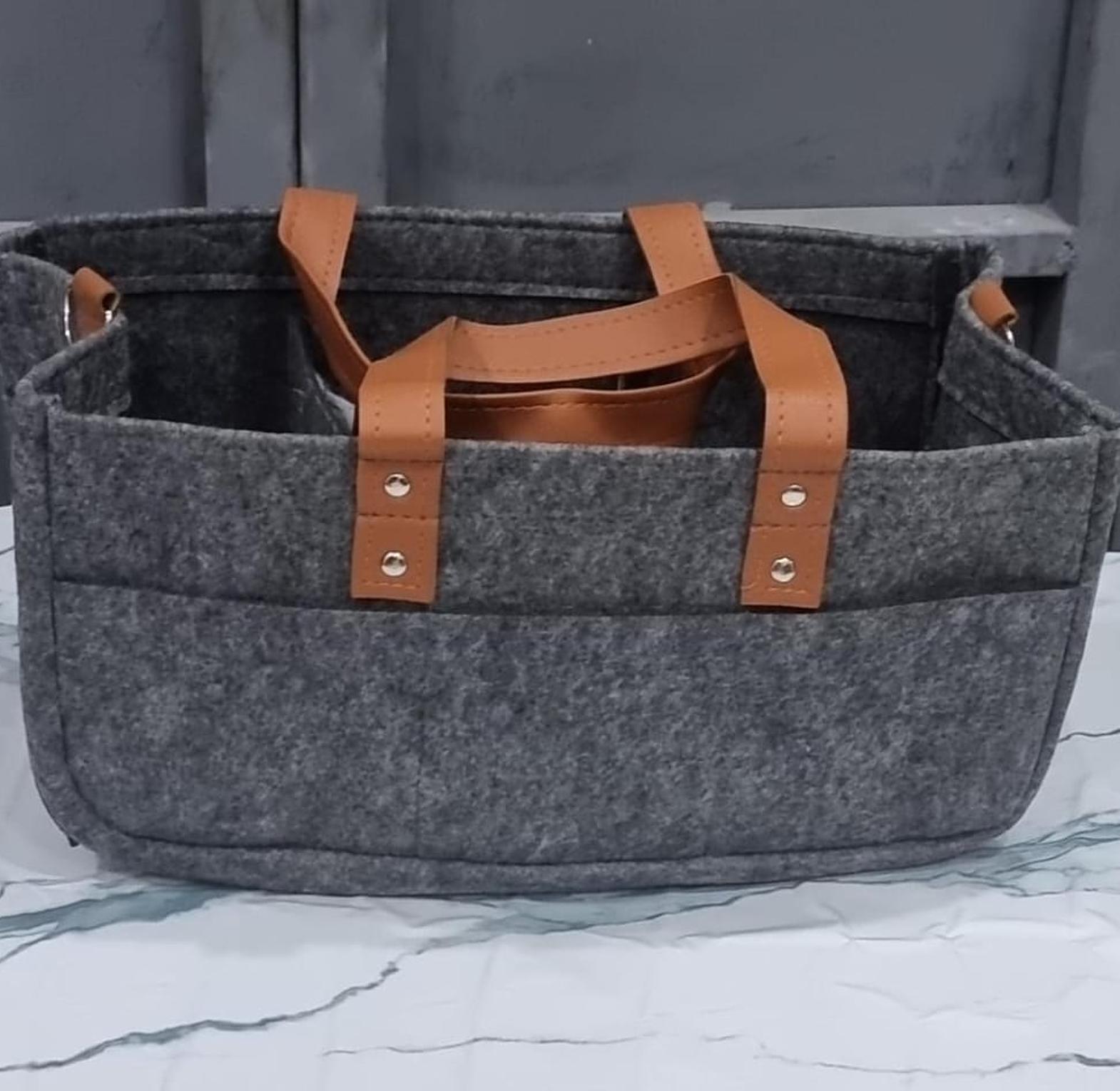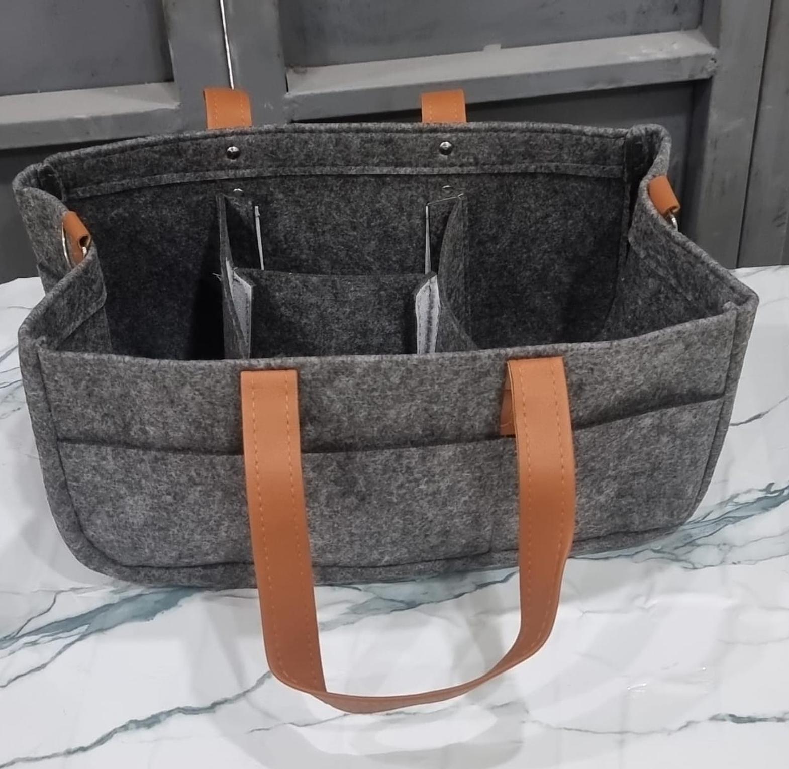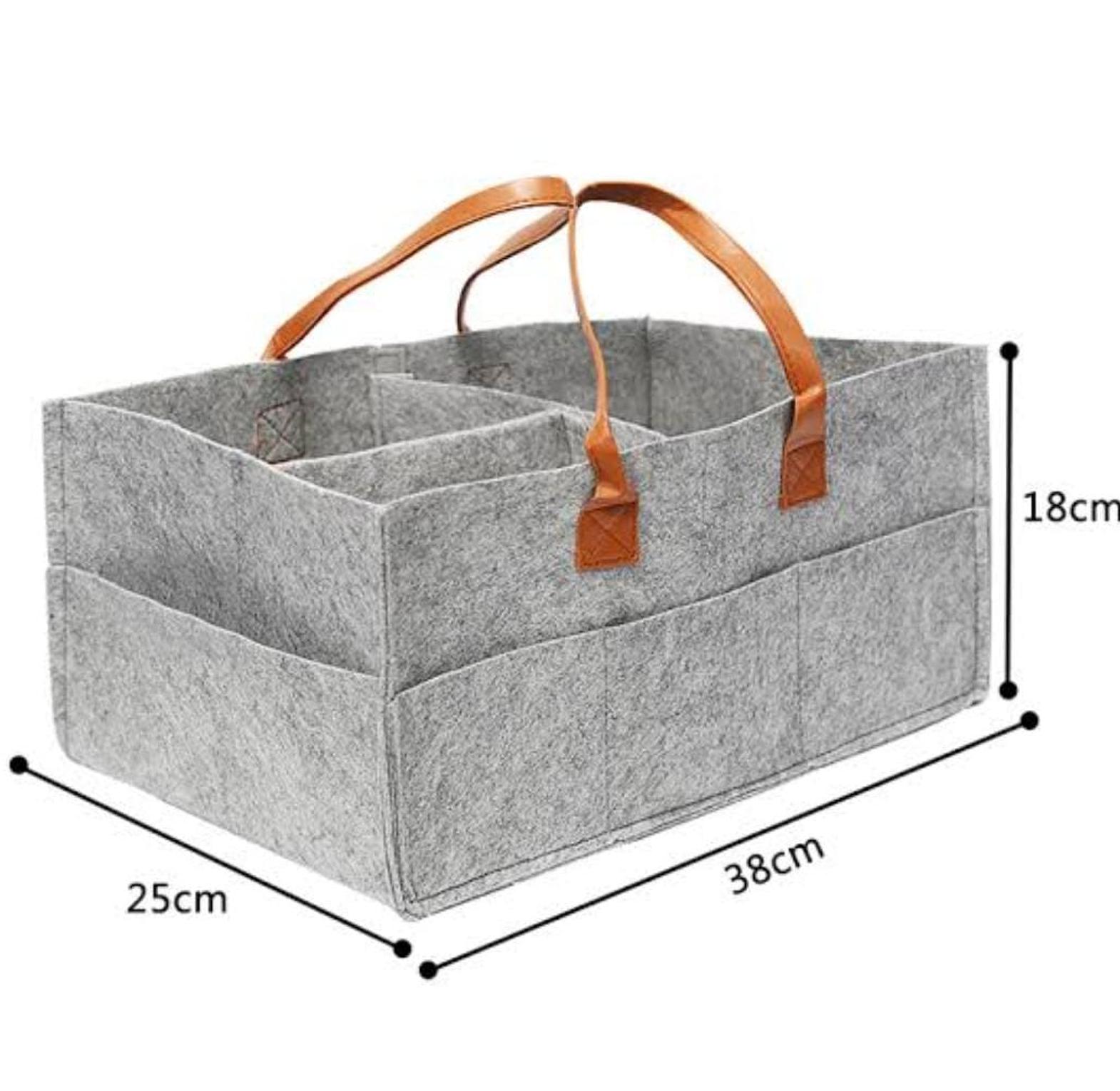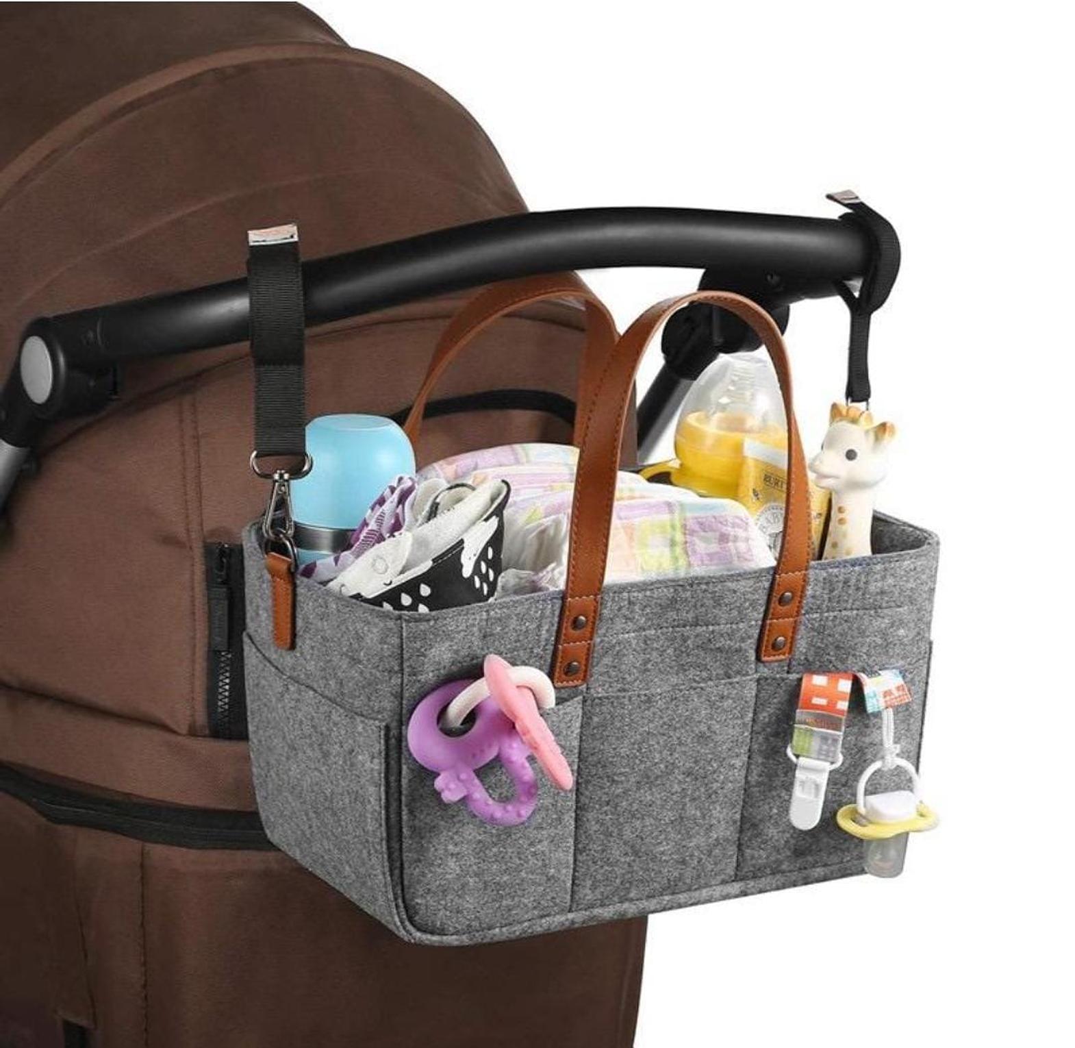 Perfect for a day out or keeping a stash changing supplies where you need them our diaper caddy is extremely versatile with just enough room for all the must-haves. The body features two large loop tote bag handles for easy transport. The simple charcoal grey design makes this perfect for any room in the house. The soft sturdy construction of the storage caddy flexes to accommodate everything you and your baby could need.