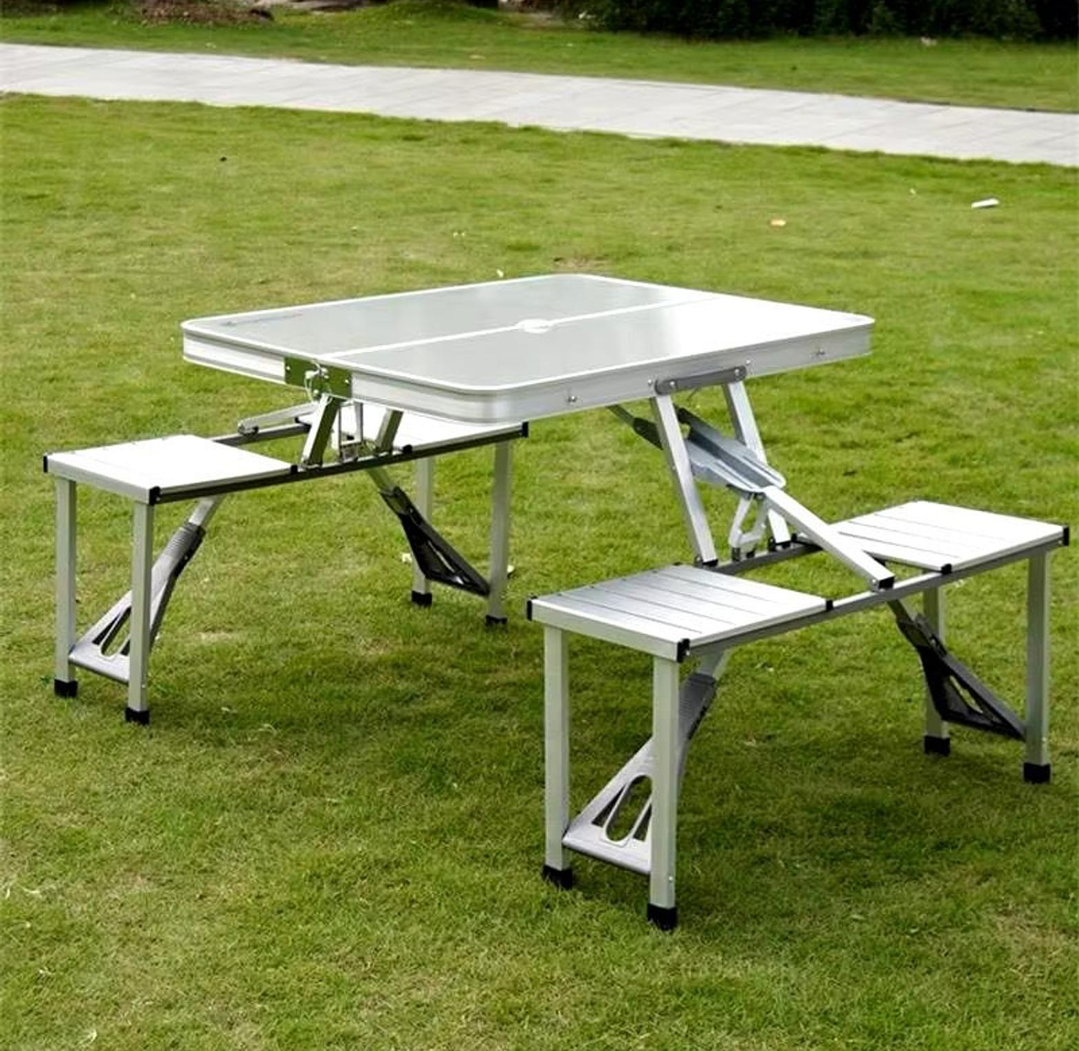 The foldable design makes our small table great for traveling and use while camping, fishing, tailgating, hiking and other indoor and outdoor activities. It is ideal for holding snacks, drinks, or even your laptop. Easy Set Up & Take Down: Our Folding Table is a compact, one-piece design with a folding table and folding chair. It's the perfect size to take camping or put on your porch or balcony. Folds and stores easily with the self-packing design.