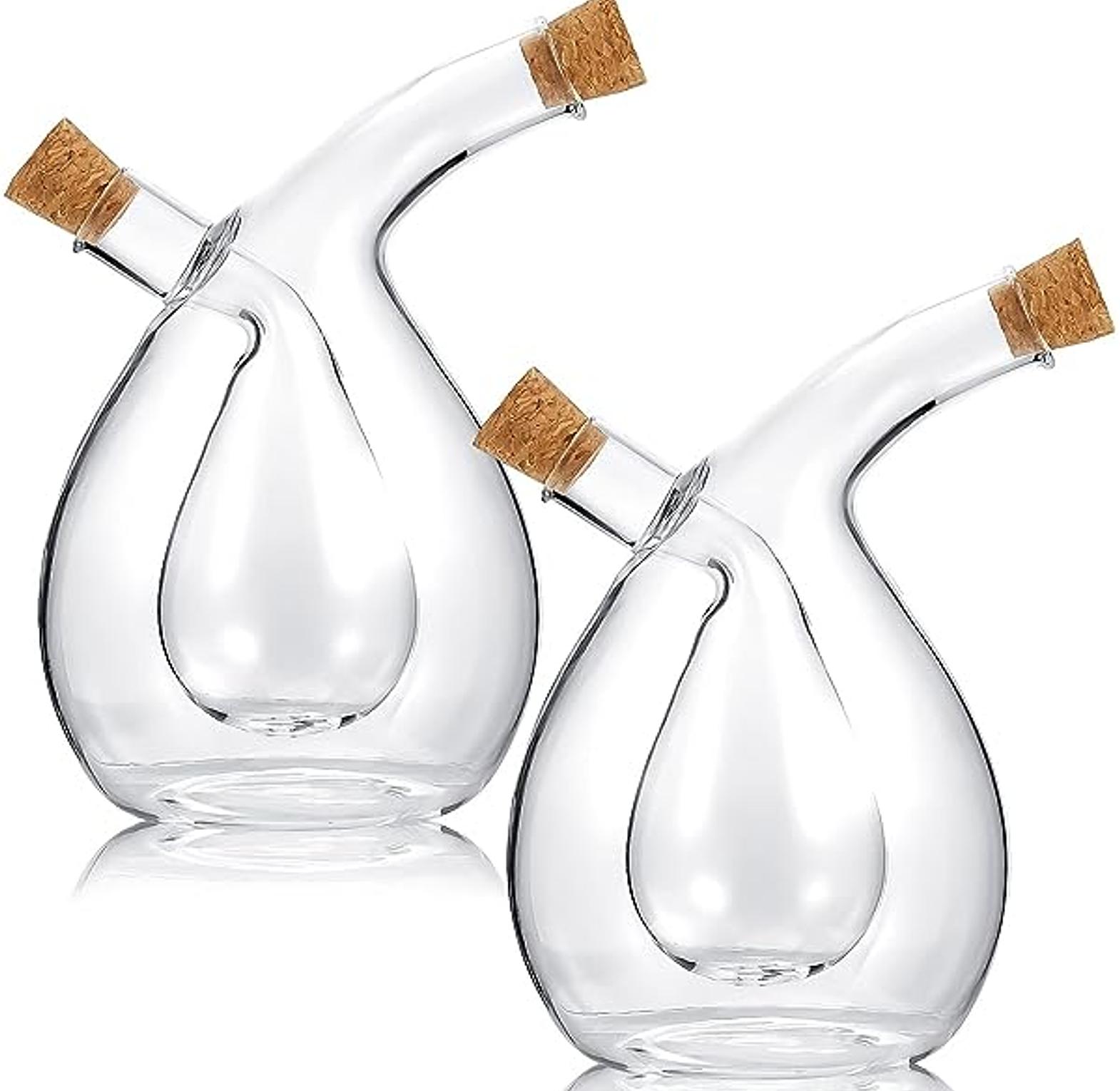 High quality 2in1 cruet twisted oil and vinegar with bamboo lids dispenser now available Capacity oil 400mls and vinegar 100mls