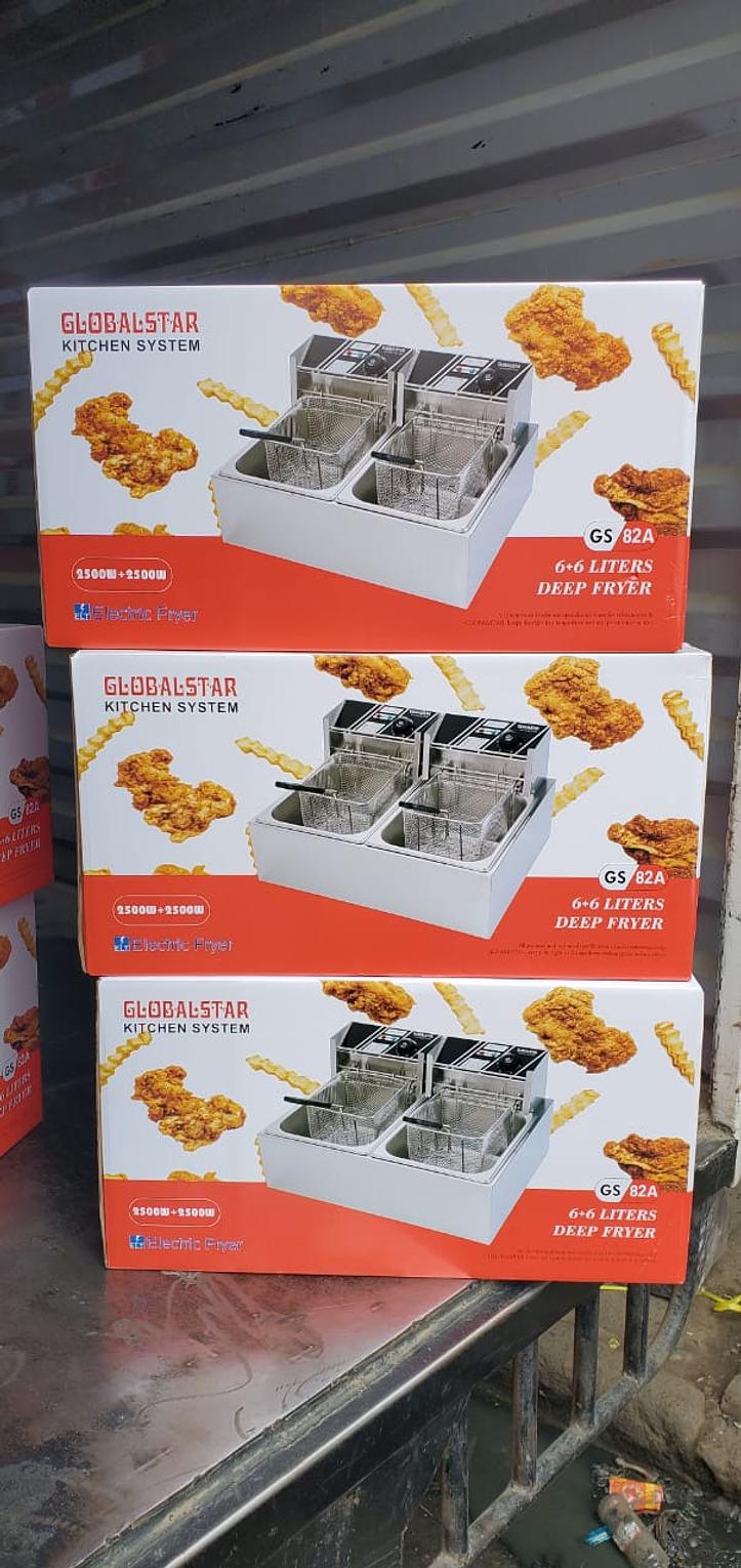 Stainless steel deep fryer for quick & simple frying Tank capacity: 6L+6L Adjustable temperature control Simple and easy to use Input: 220v/50Hz Usage: Home/Commercial Power: 2500W