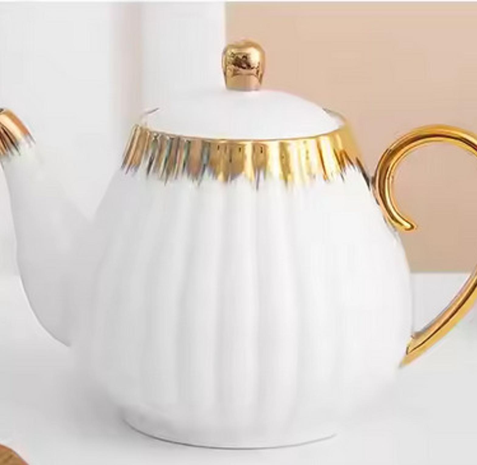 Gold detail kettle porcelain. ✅ material: ceramic ✅weight: 520g ✅ Capacity:1200ml ✅colour:white