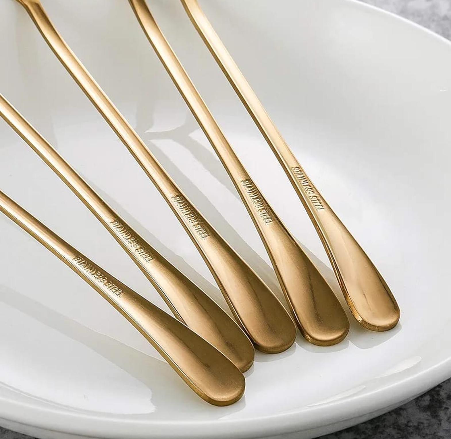 Gold long teaspoon sold as 6 pcs ✅material: stainless steel. ✅colour: Gold ✅size: 19cm ✅weight: 154g 🍒 unique and classy 🍒