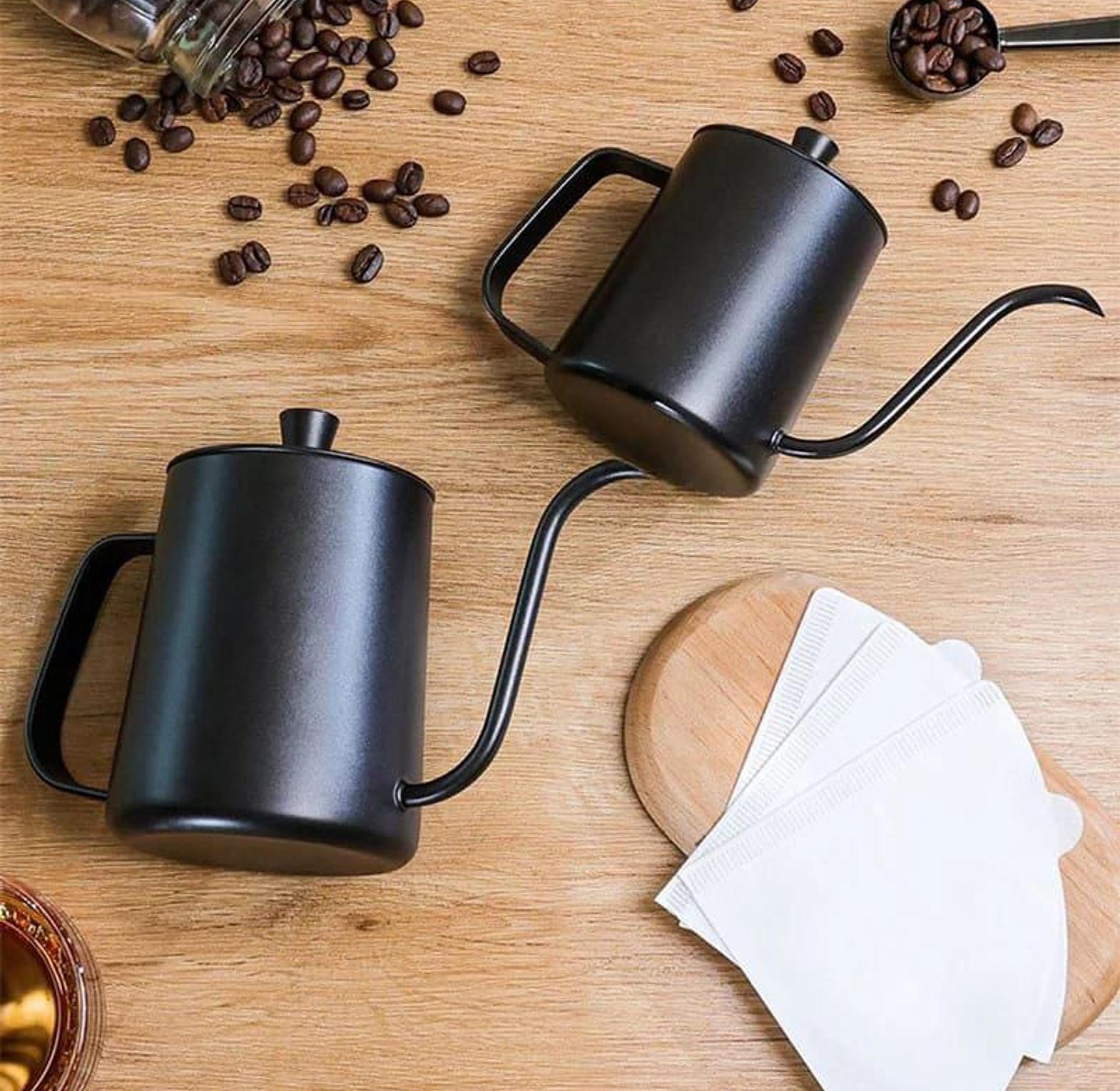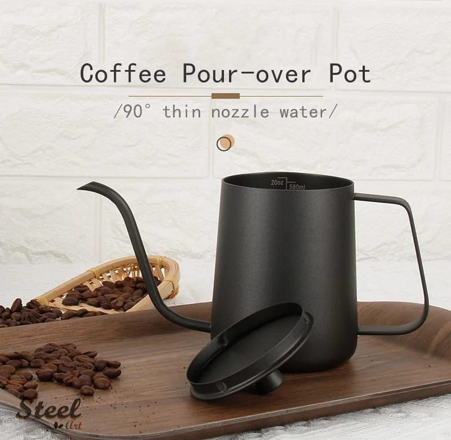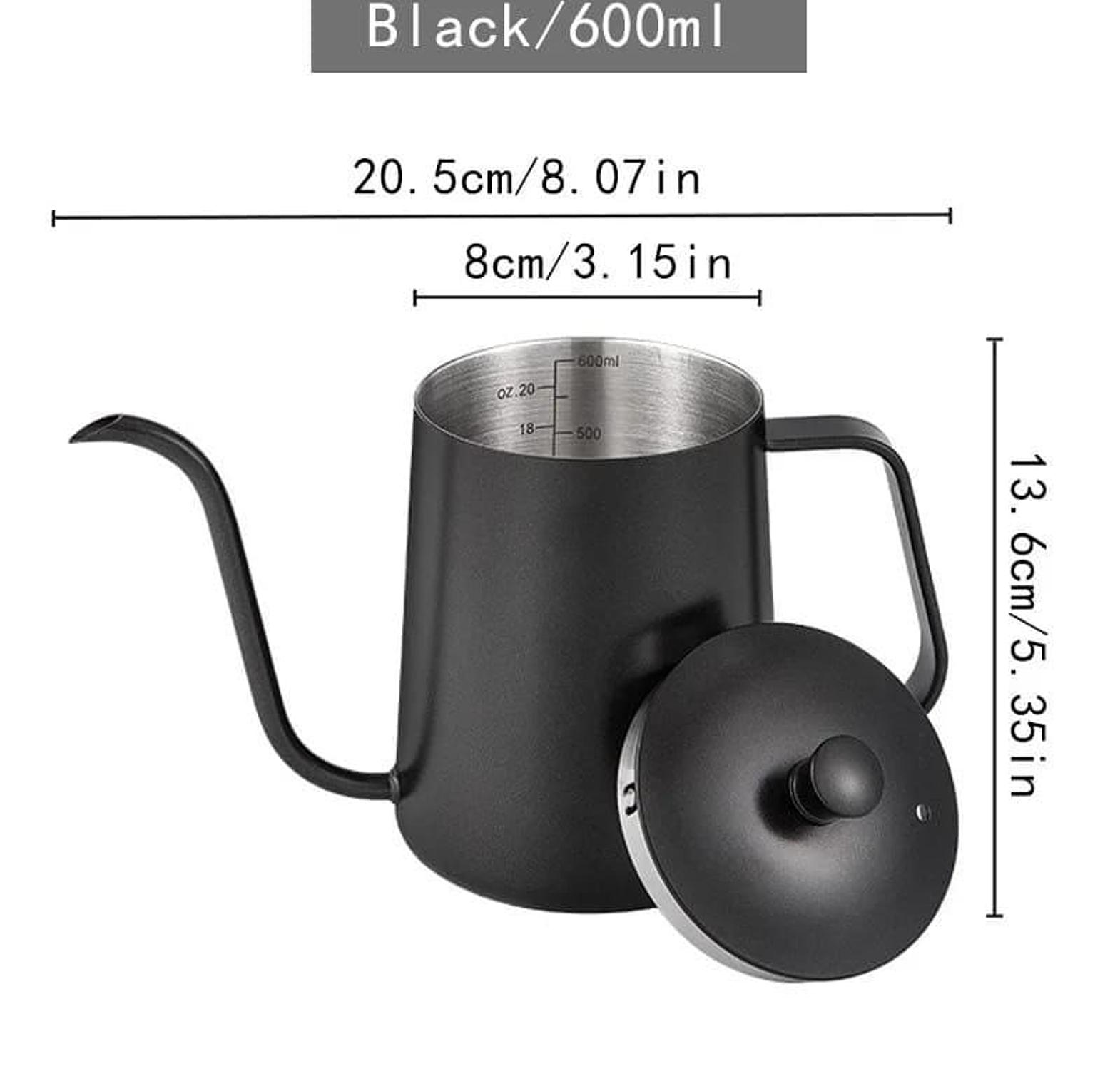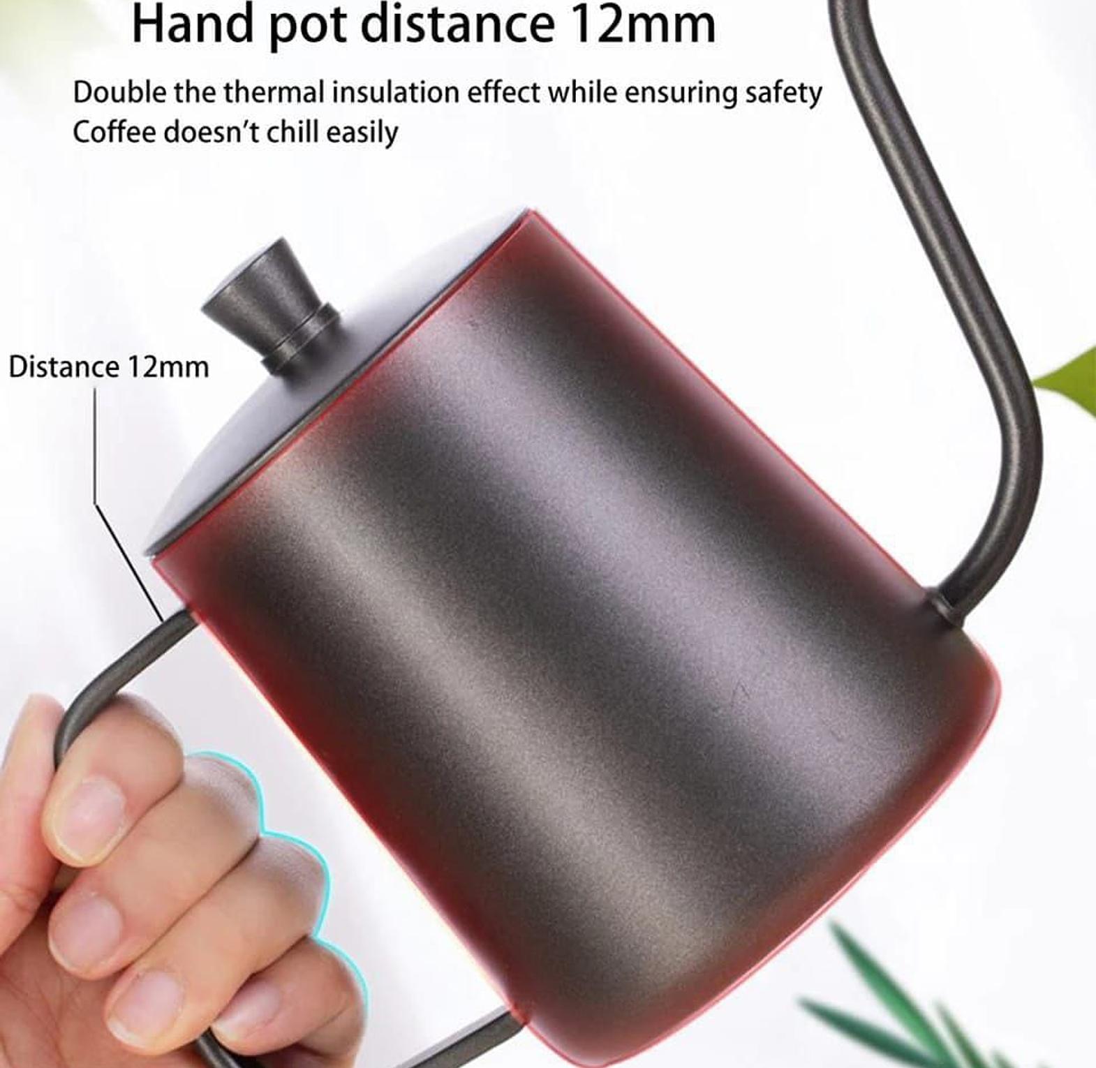 The coffee kettle is designed with thicken ergonomics handle to keep your hands away from scald. The lid with a hole which allows to put the food thermometer inside to achieve a precise temperature control.