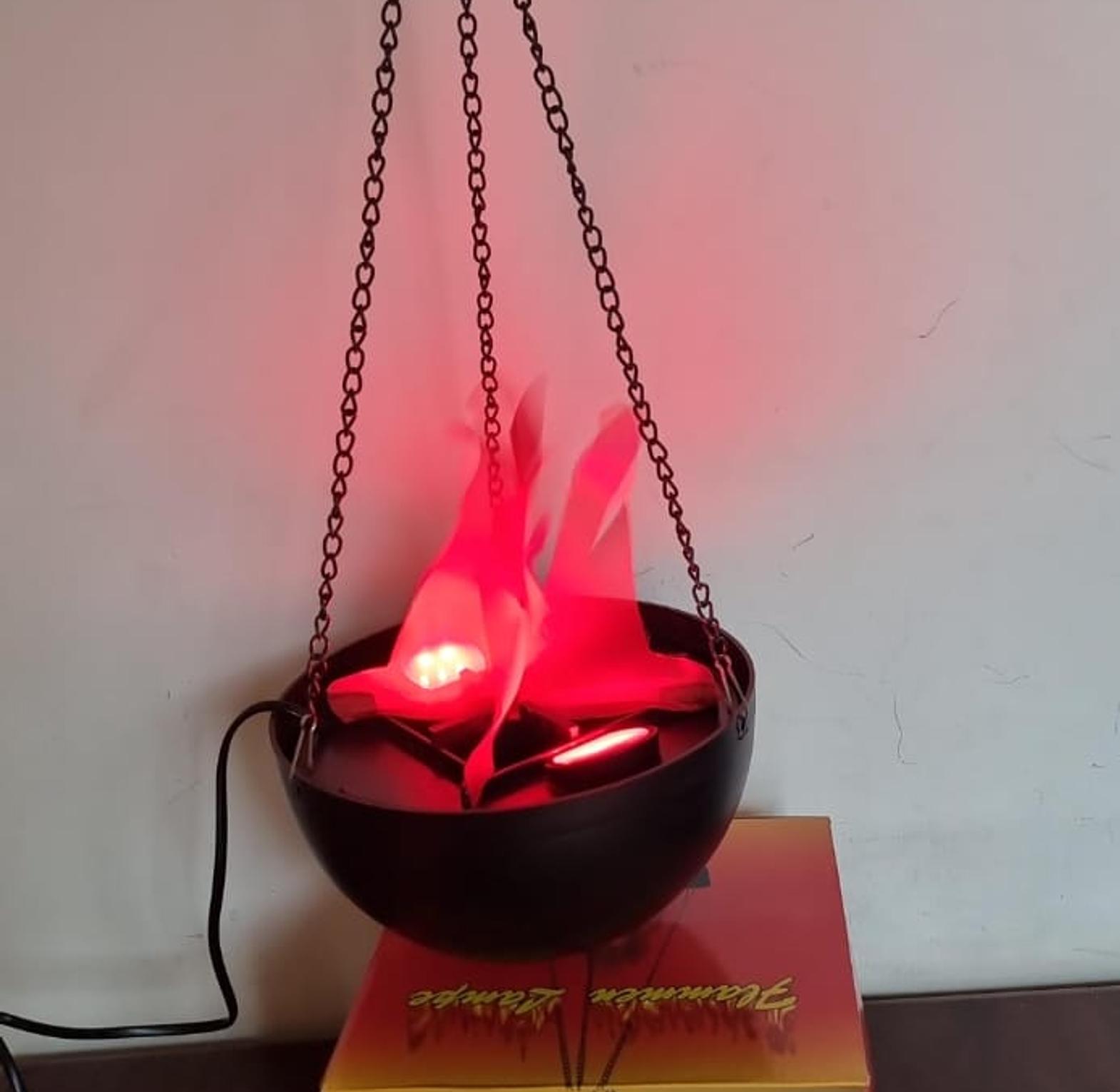 Flammen lamp hanging chain fireplace decor piece - Diameter 20cm hemisphere pot shape